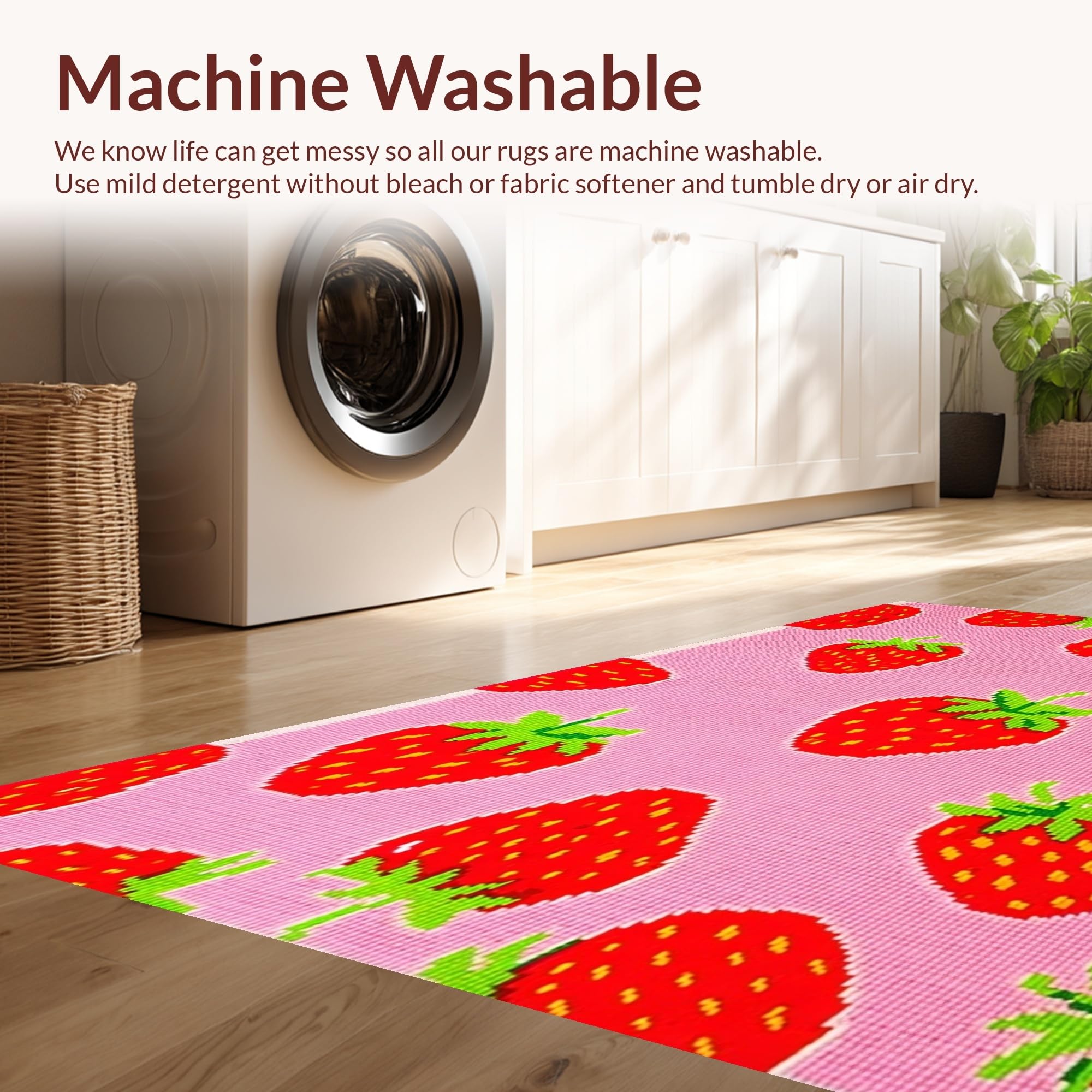 - Machine Washable: Our rugs can be easily thrown in the wash machine.
