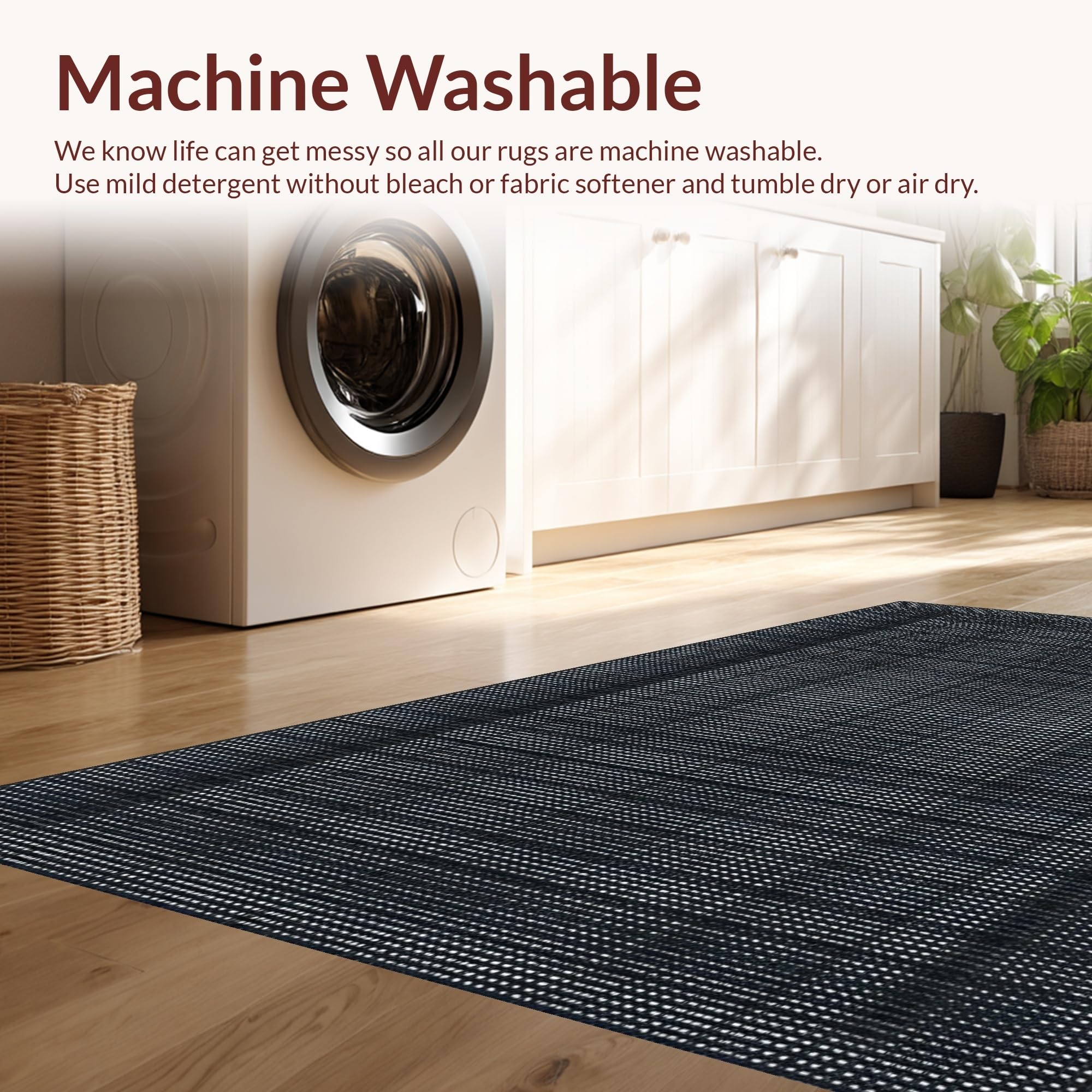- Machine Washable: Our rugs can be easily thrown in the wash machine.