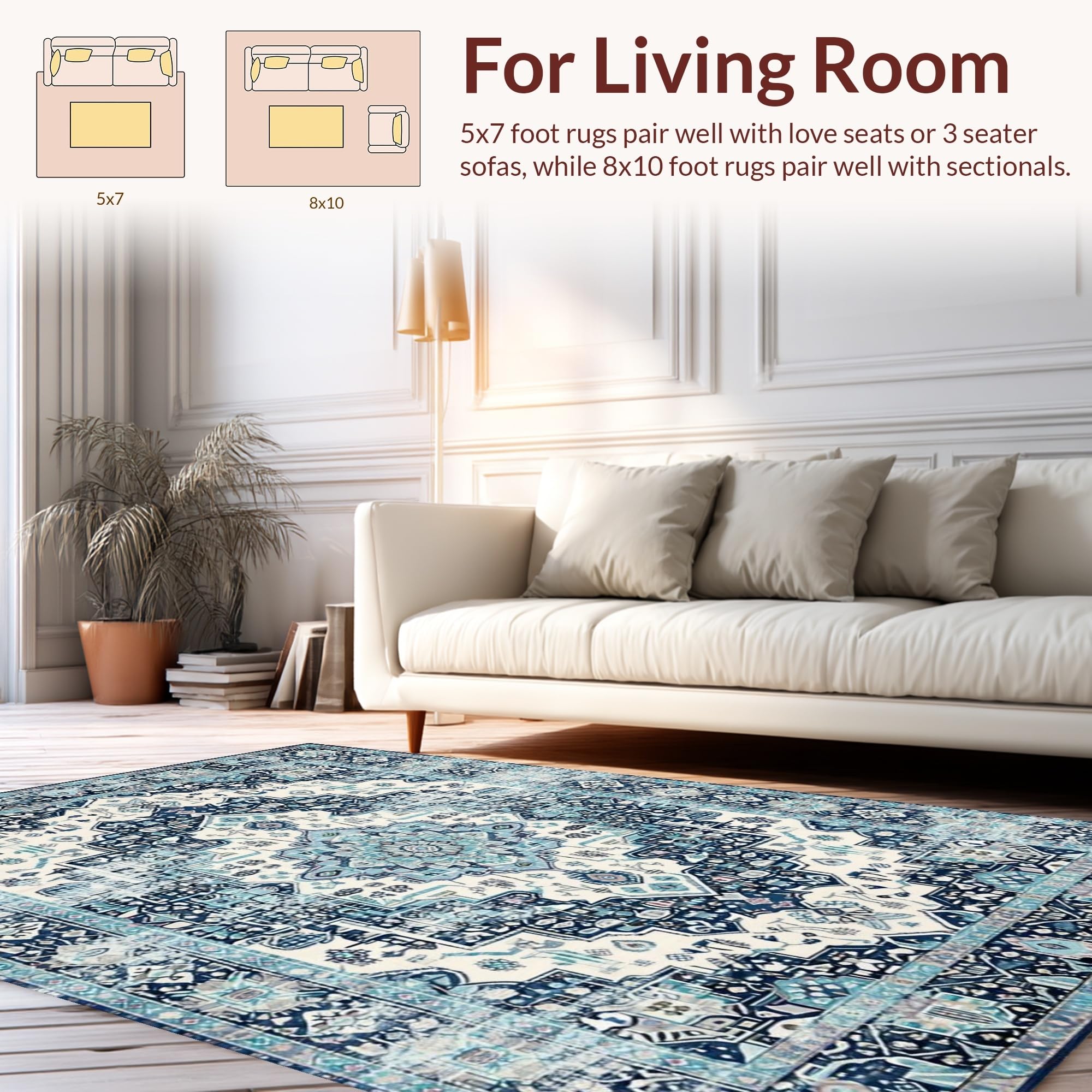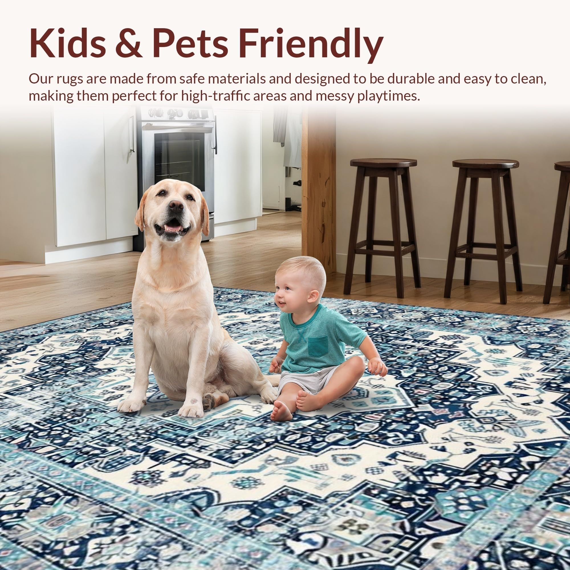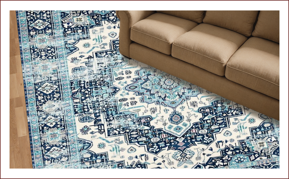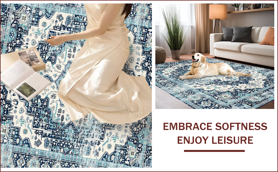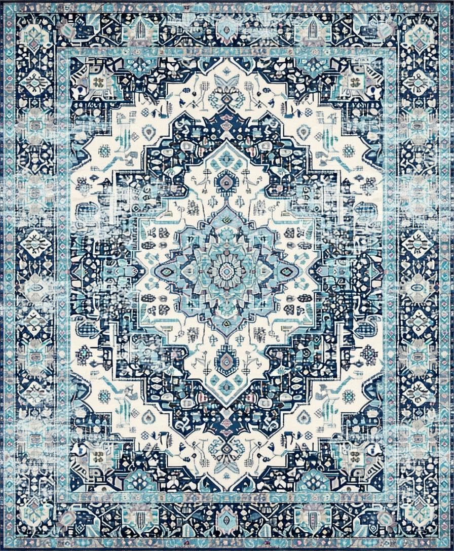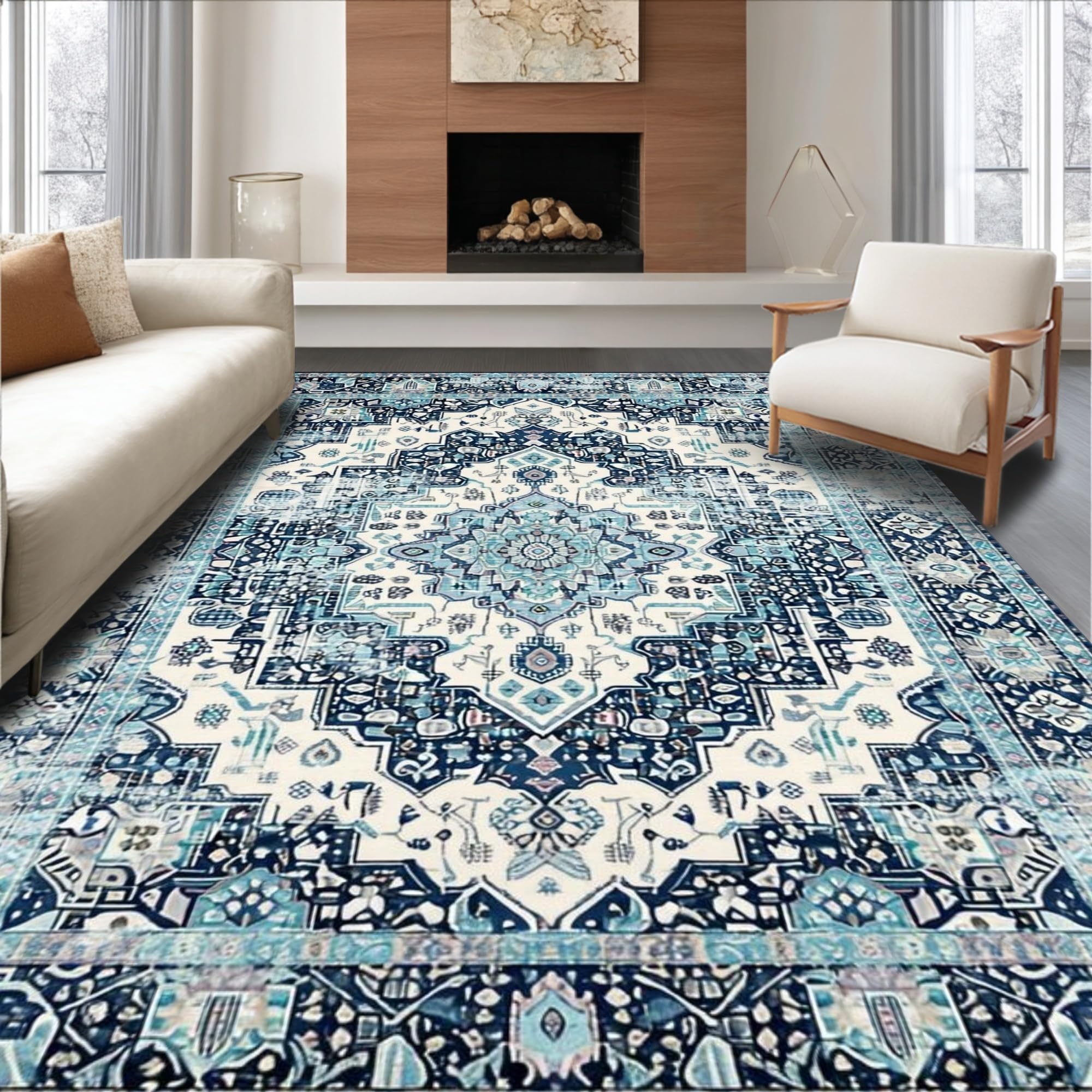 Ultra Soft Area Rug, Non Slip, Stain Resistant, Washable Area Rugs for Living Room, Bedroom, Artistic Geometric Light Design(Blue) Overview: