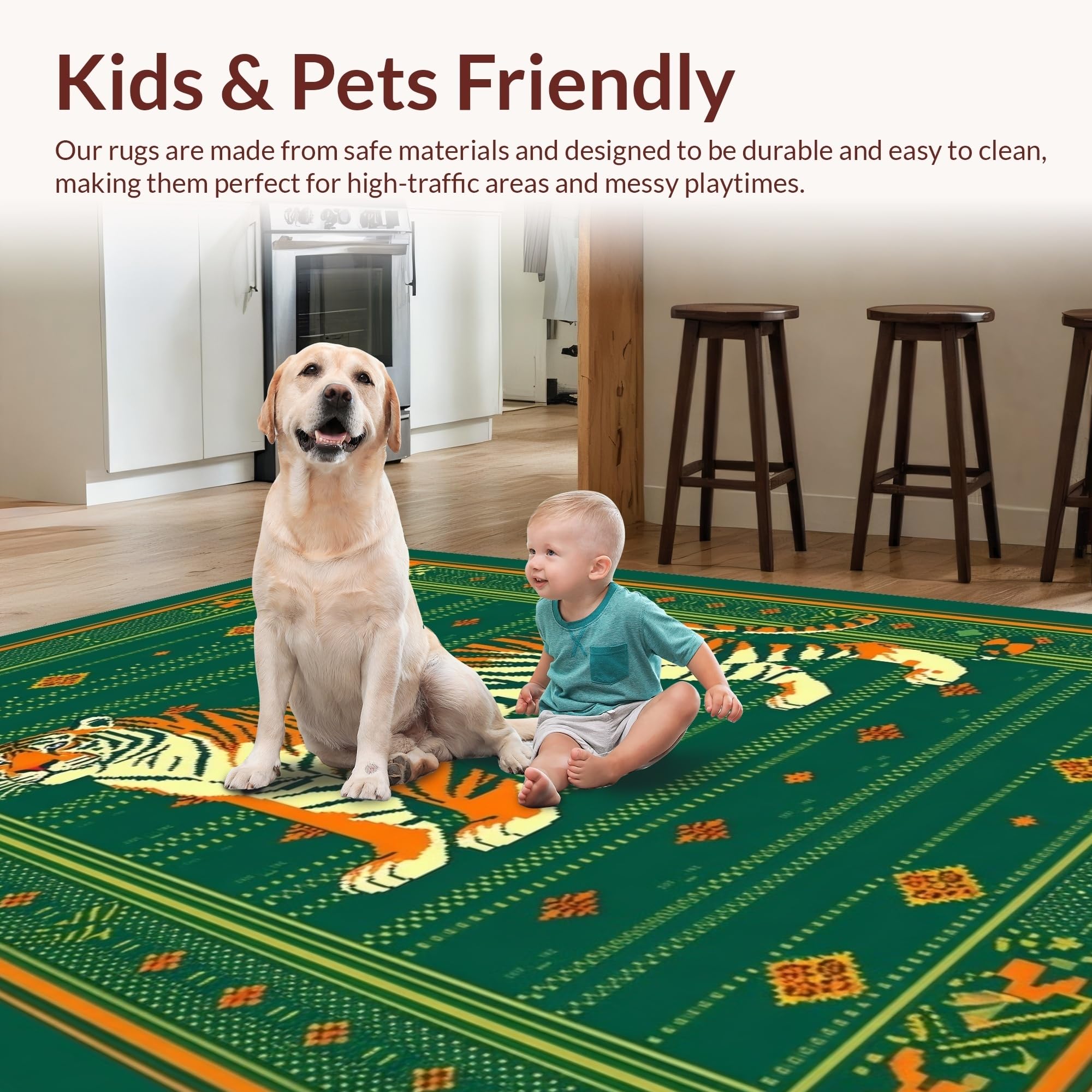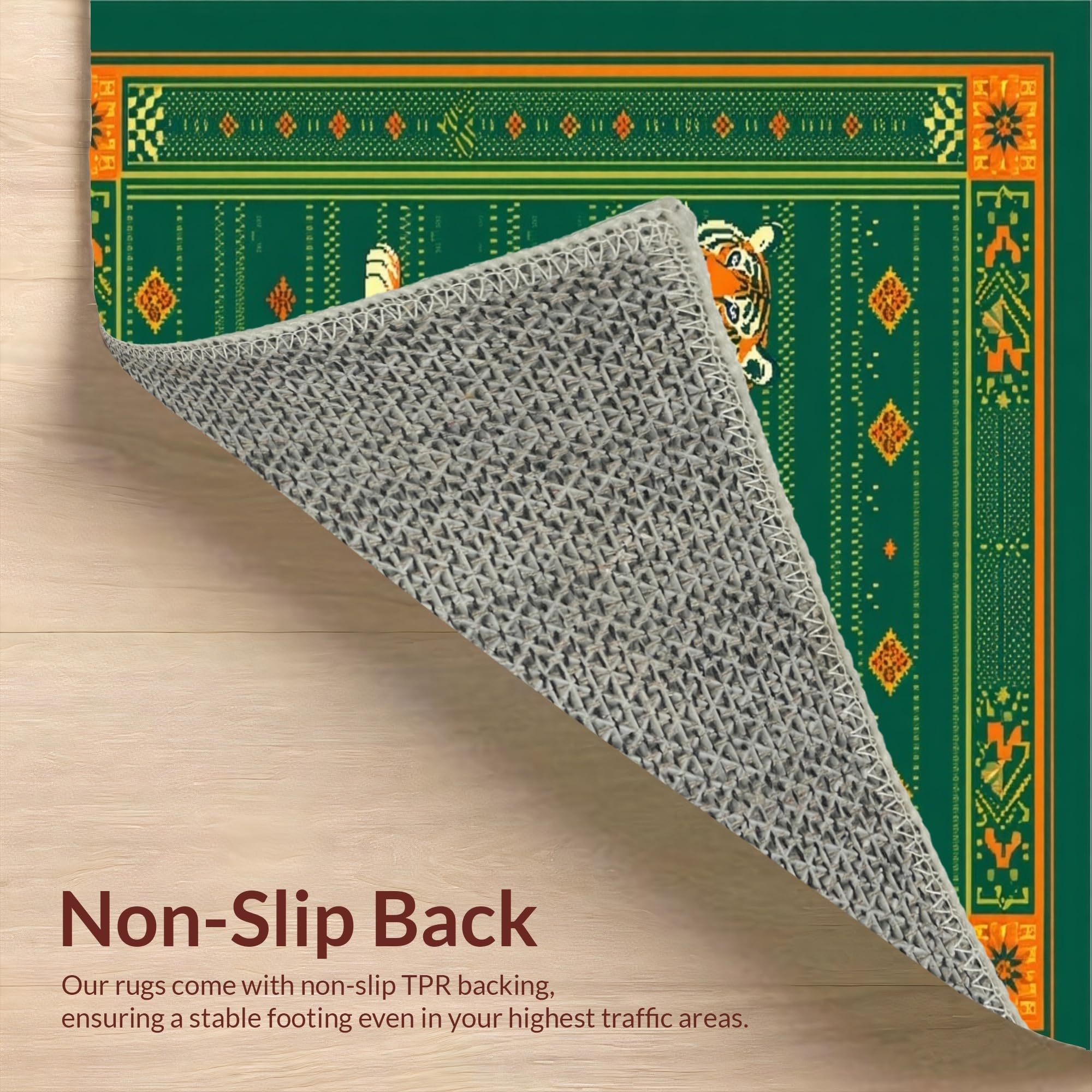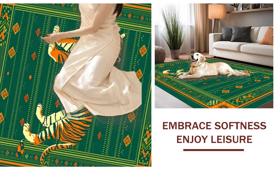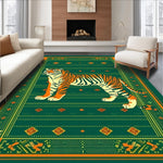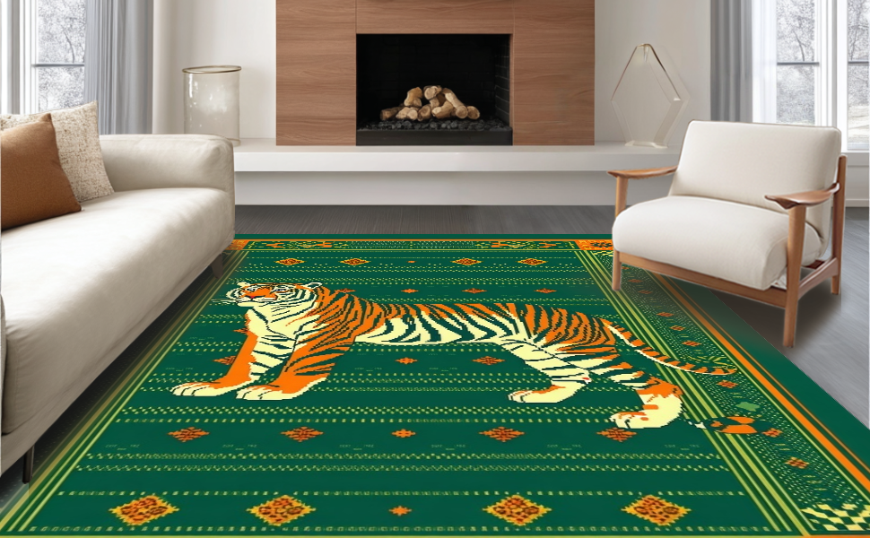 Ultra Soft Area Rug, Non Slip, Stain Resistant, Washable Area Rugs for Living Room, Bedroom, Artistic Geometric Tiger Motif(Green) Overview: