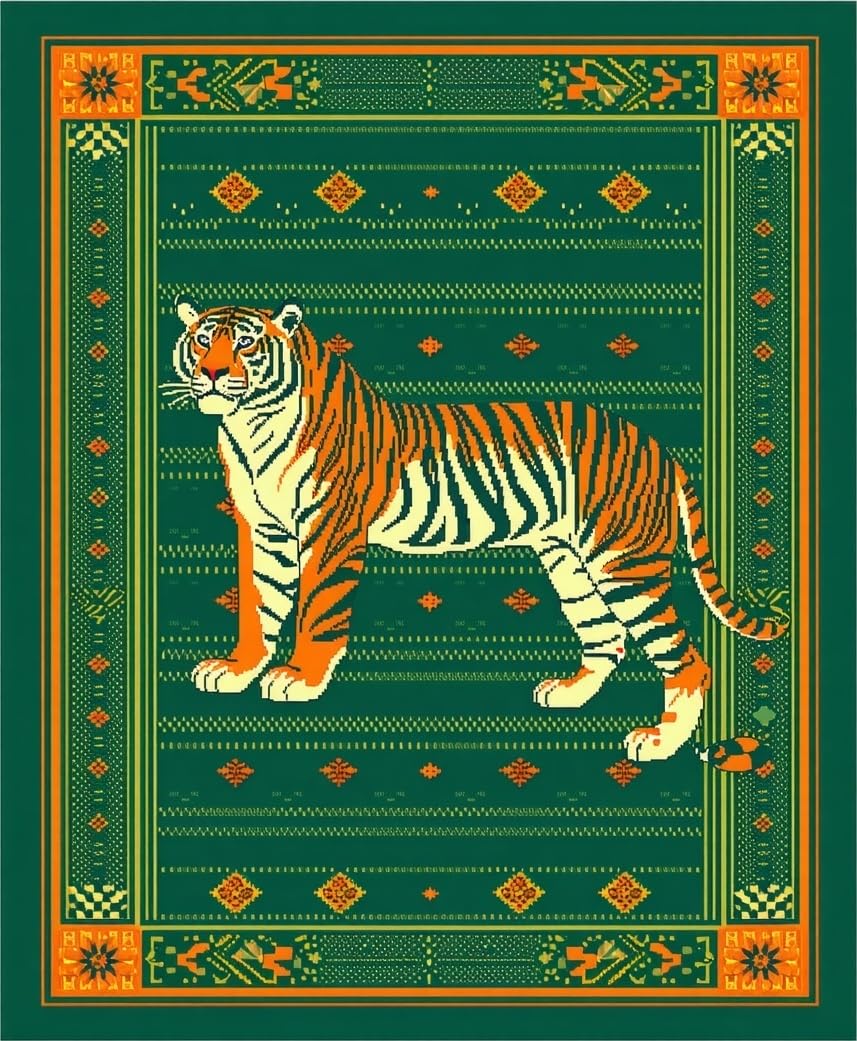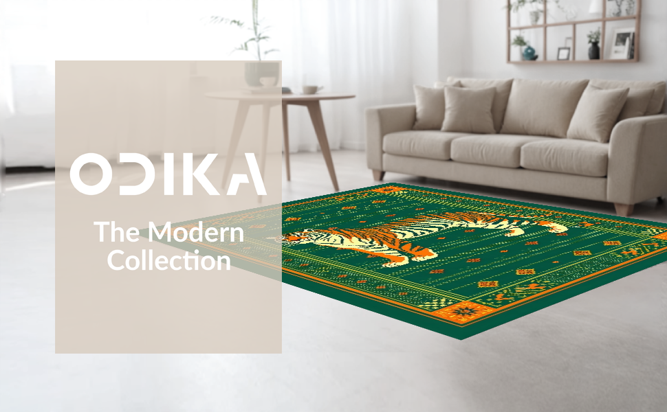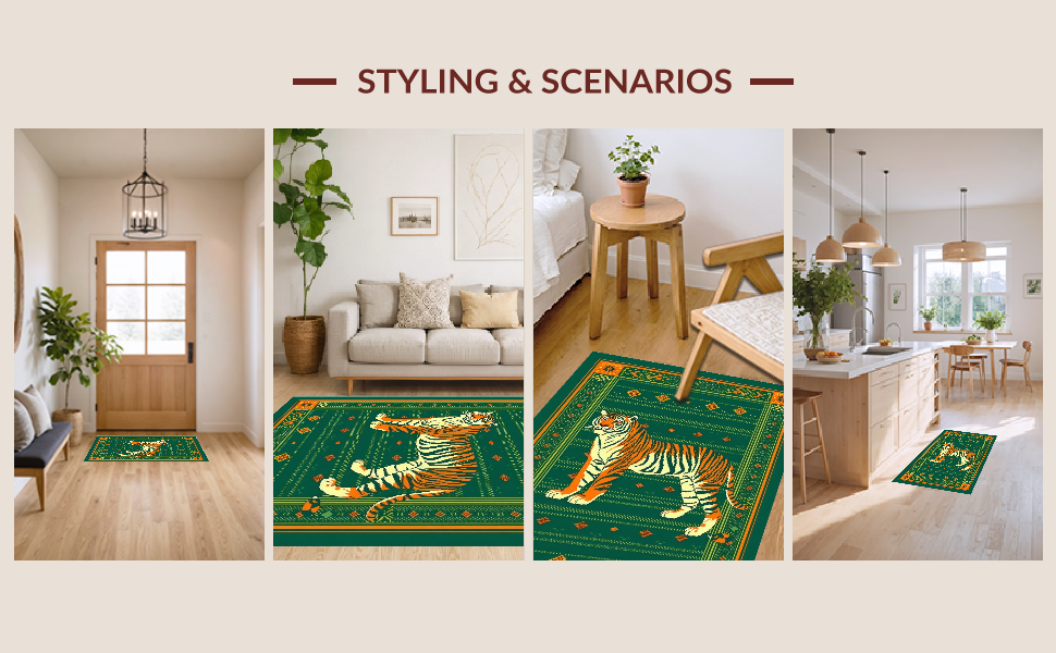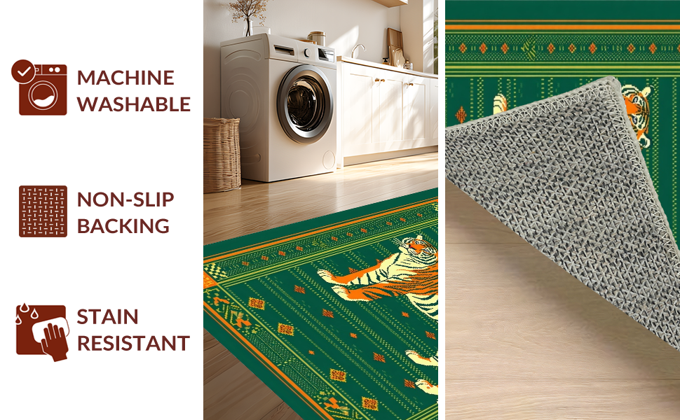 Ultra Soft Area Rug, Non Slip, Stain Resistant, Washable Area Rugs for Living Room, Bedroom, Artistic Geometric Tiger Motif(Green) Overview: