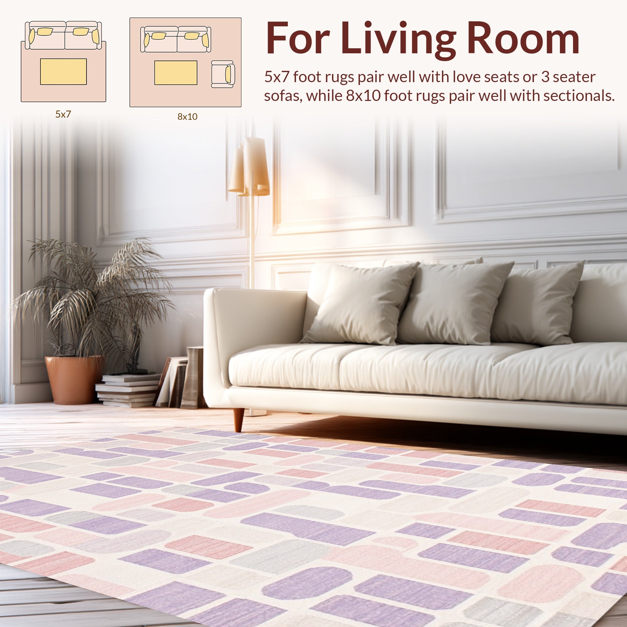 Flatwoven High Traffic Area Rug, Artistic Geometric with Elegant Color Palette, Non Slip, Stain Resistant, Washable Area Rugs for Living Room, Bedroom (Pink) Overview: