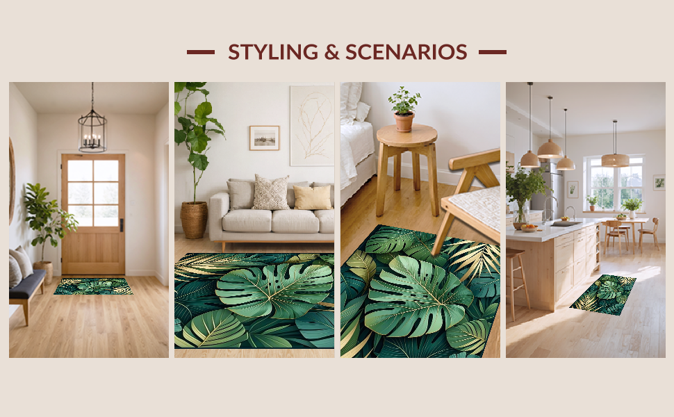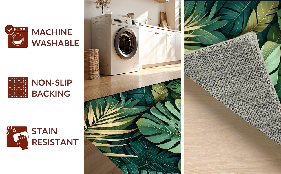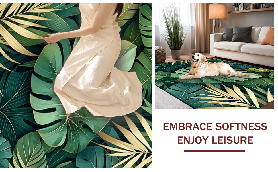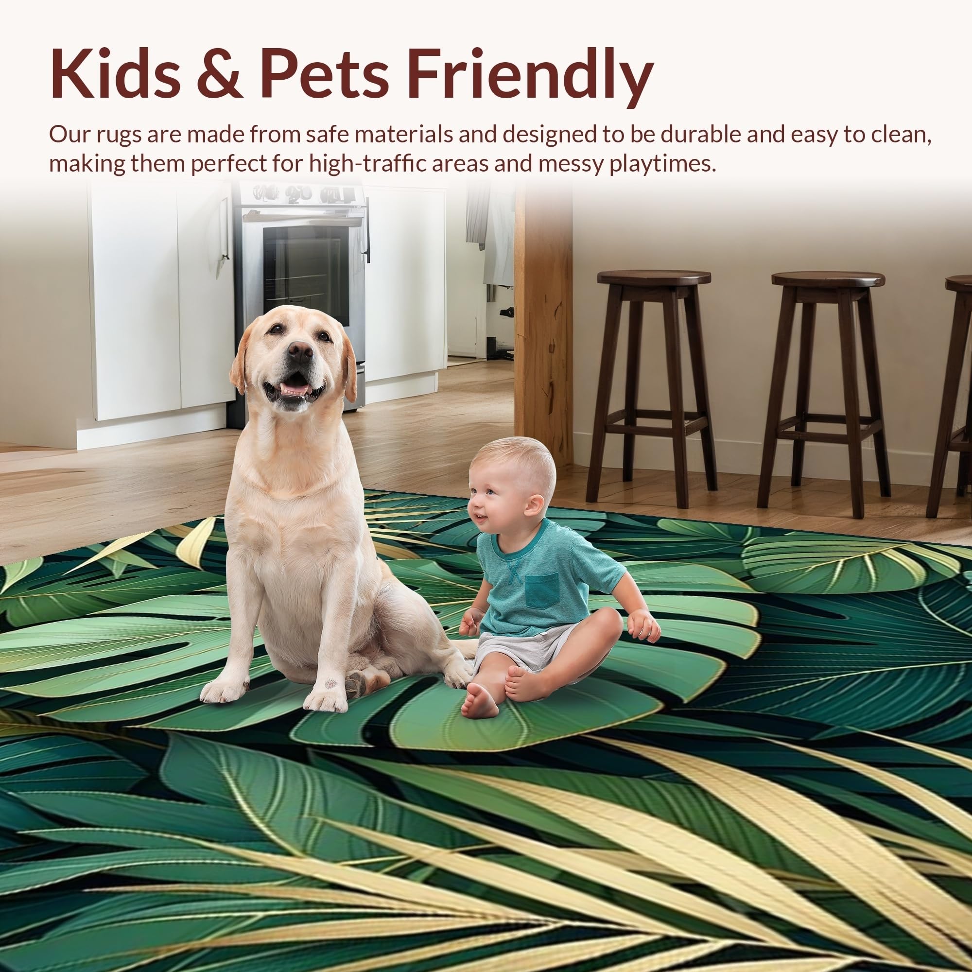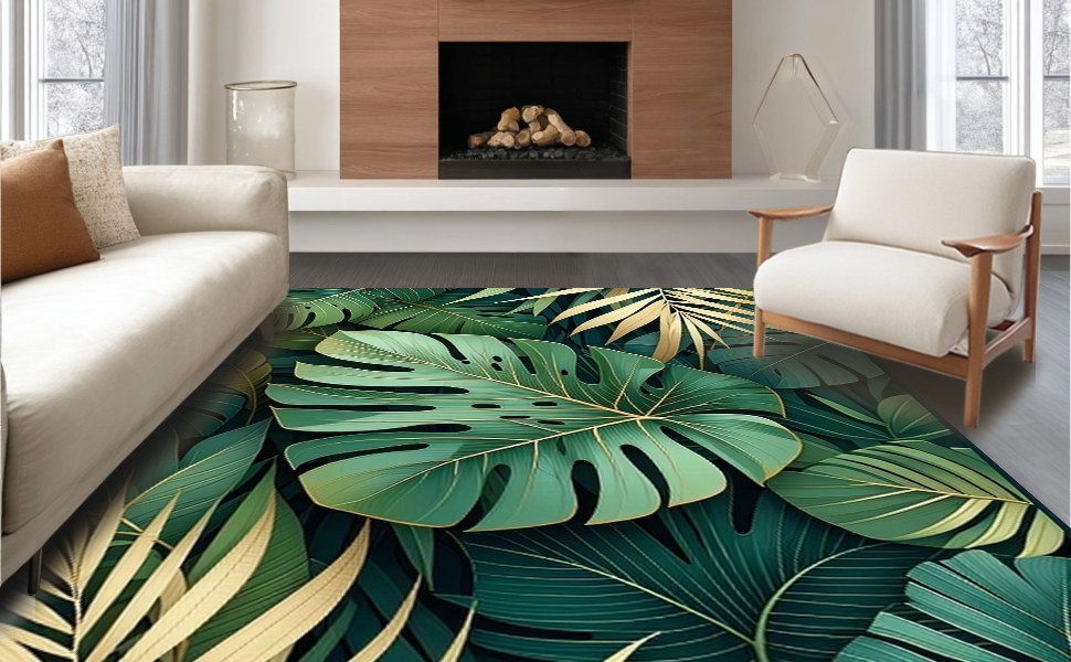 Ultra Soft Area Rug, Non Slip, Stain Resistant, Washable Area Rugs for Living Room, Bedroom, Artistic Golden Green Foliage(Green) Overview: