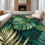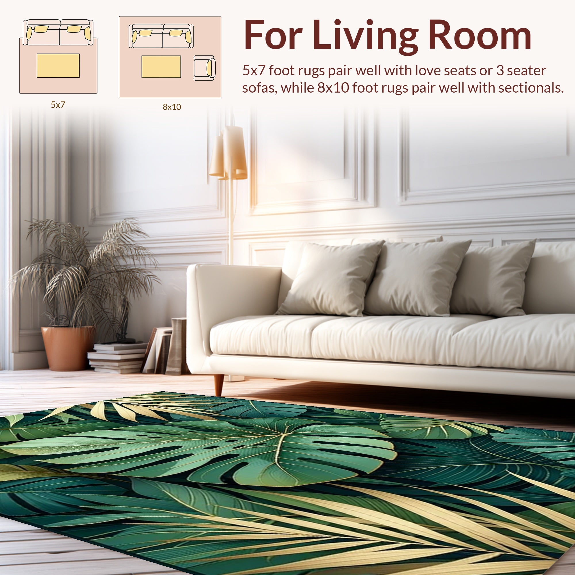 Flatwoven High Traffic Area Rug, Artistic Golden Green Foliage, Non Slip, Stain Resistant, Washable Area Rugs for Living Room, Bedroom (Green) Overview: