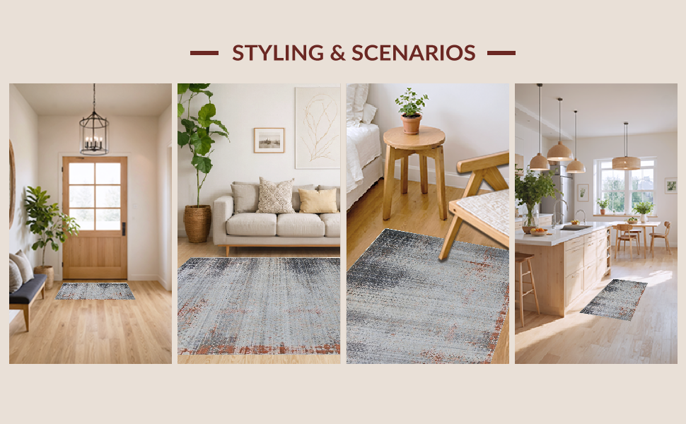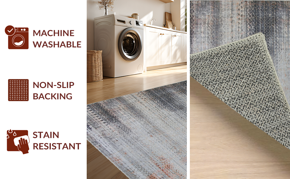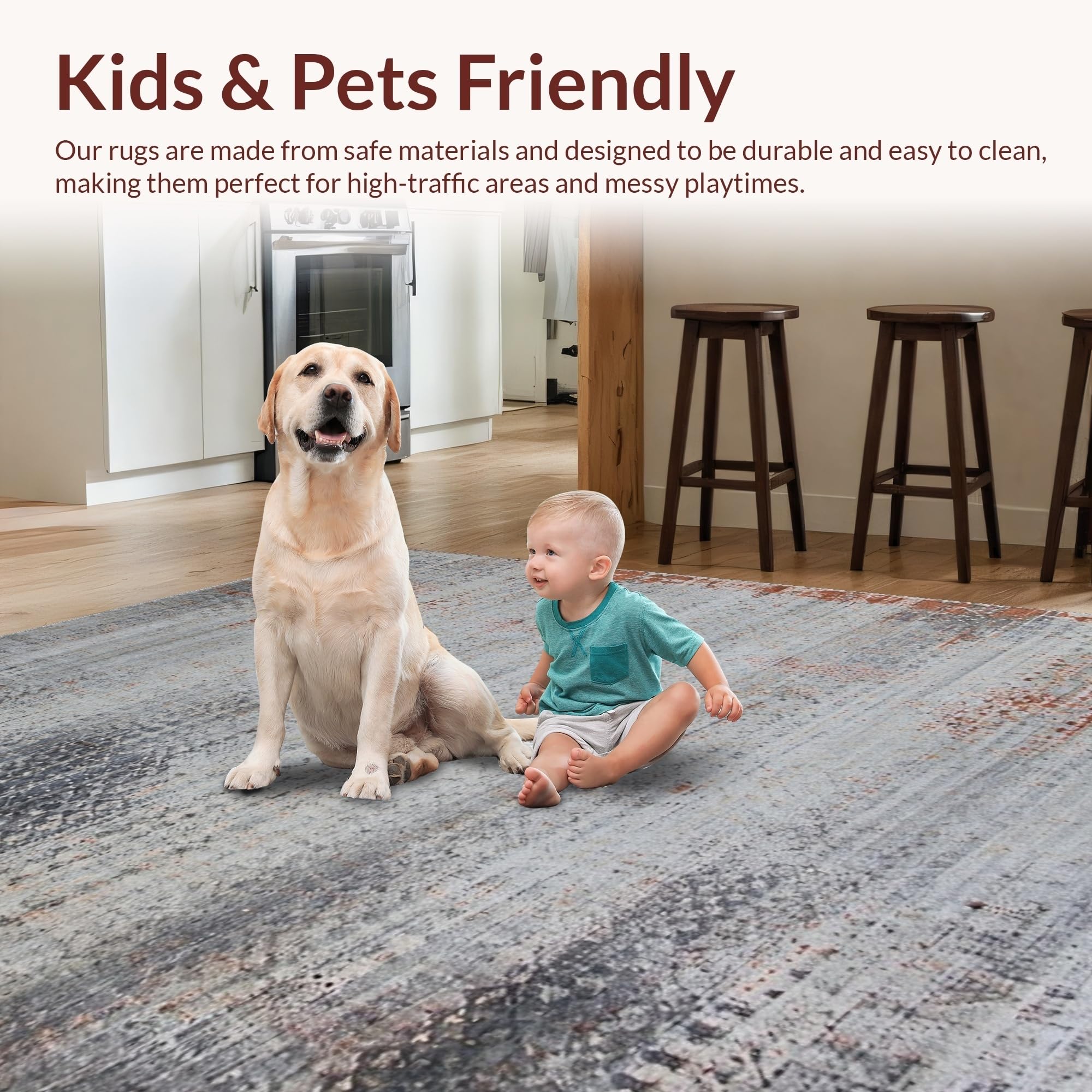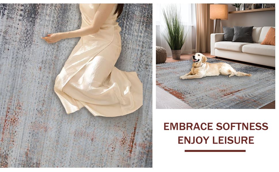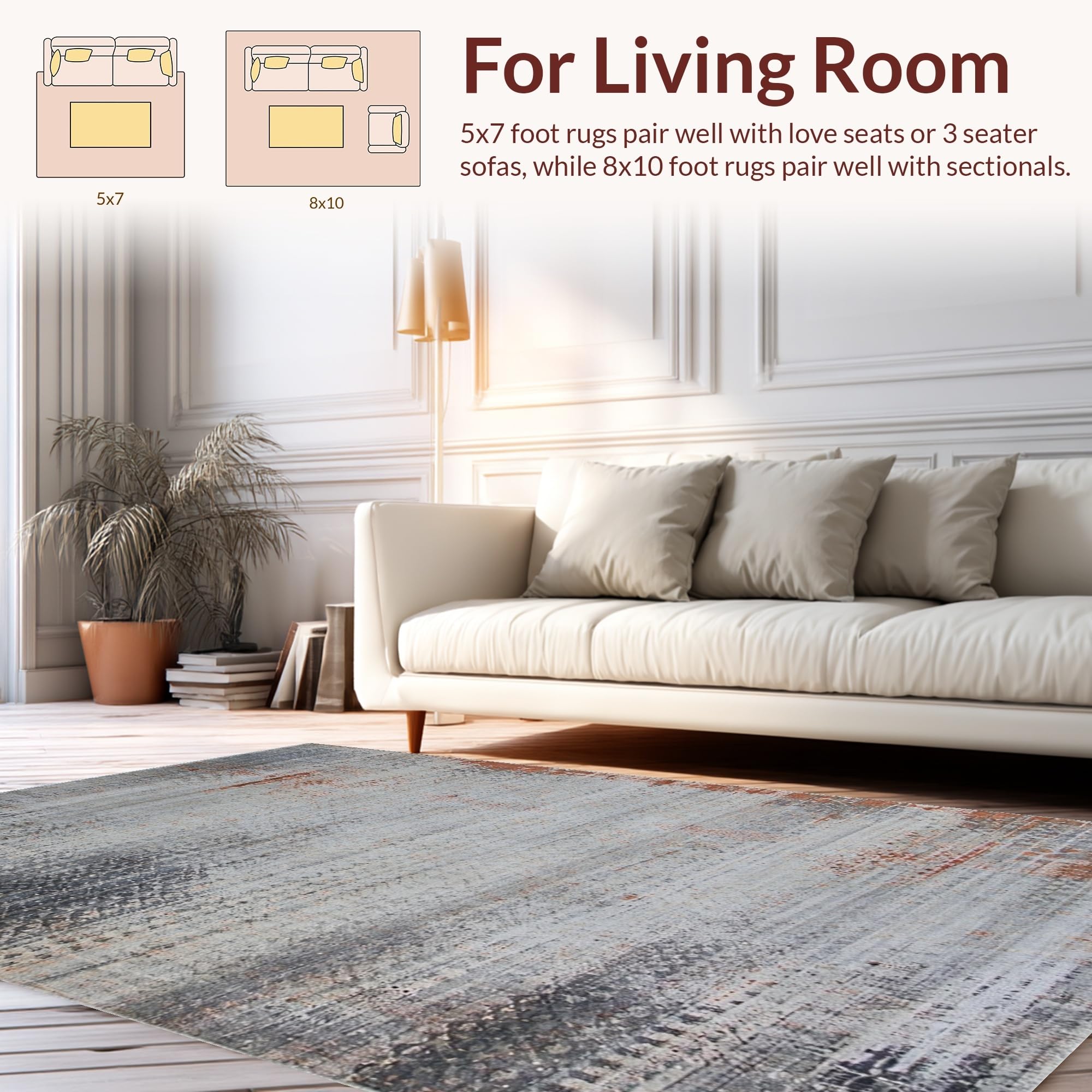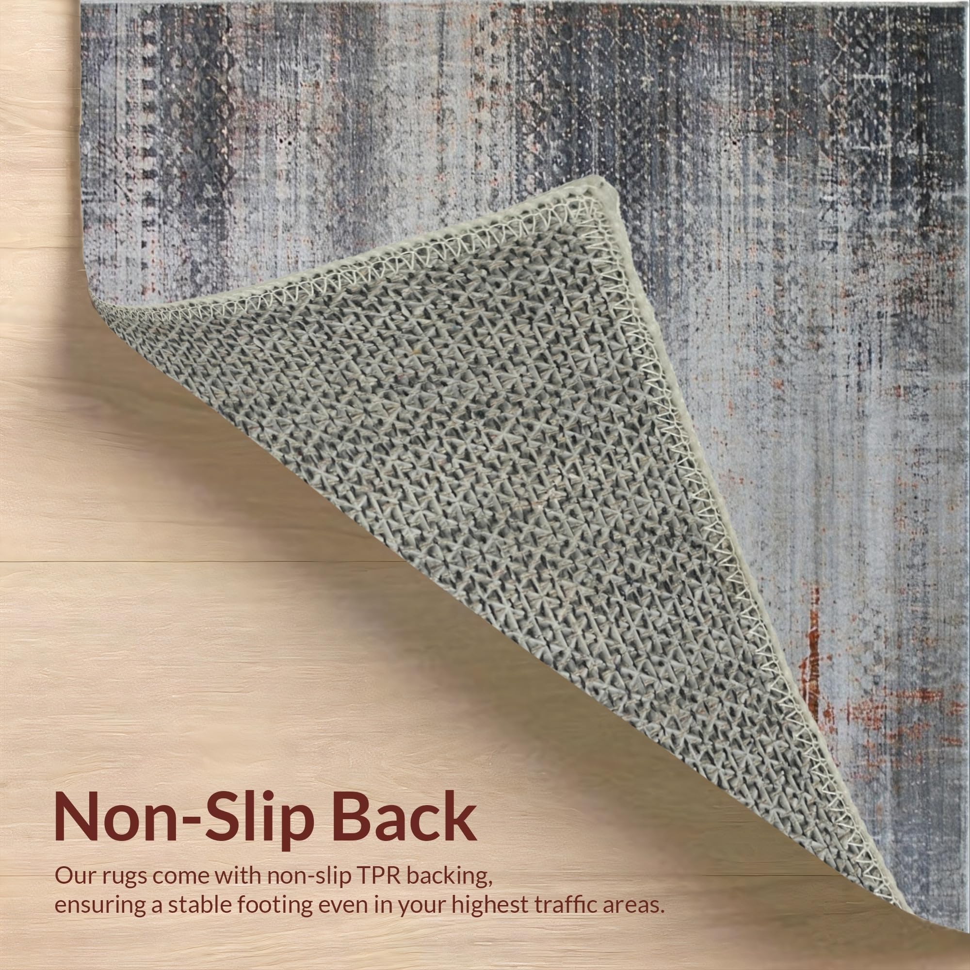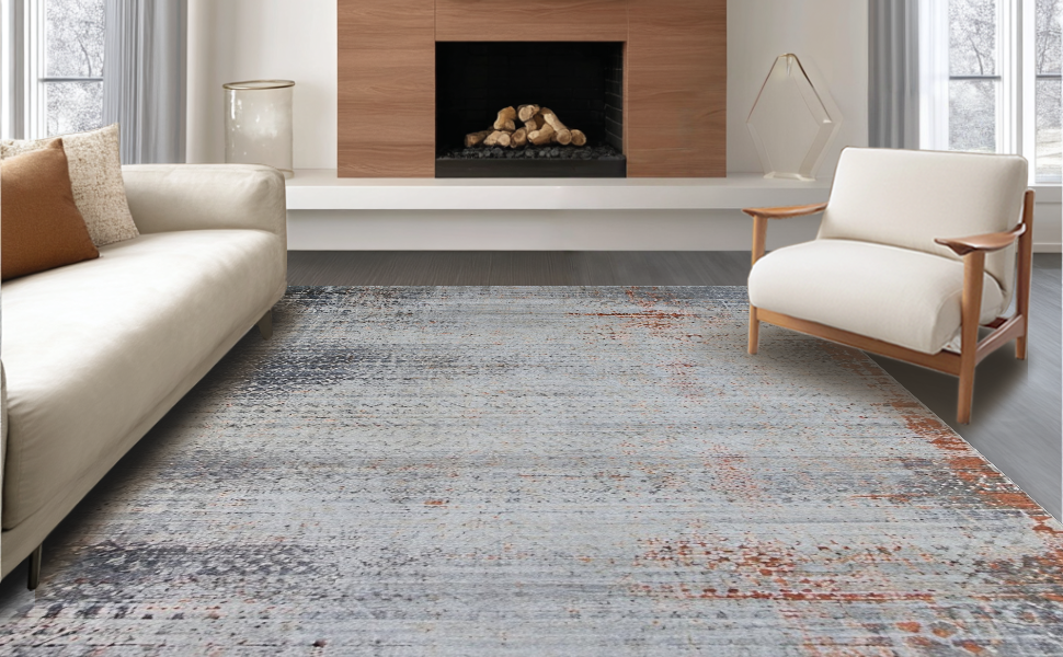 Ultra Soft Area Rug, Non Slip, Stain Resistant, Washable Area Rugs for Living Room, Bedroom, Artistic Gray Rust Abstract Motif(Gray) Overview: