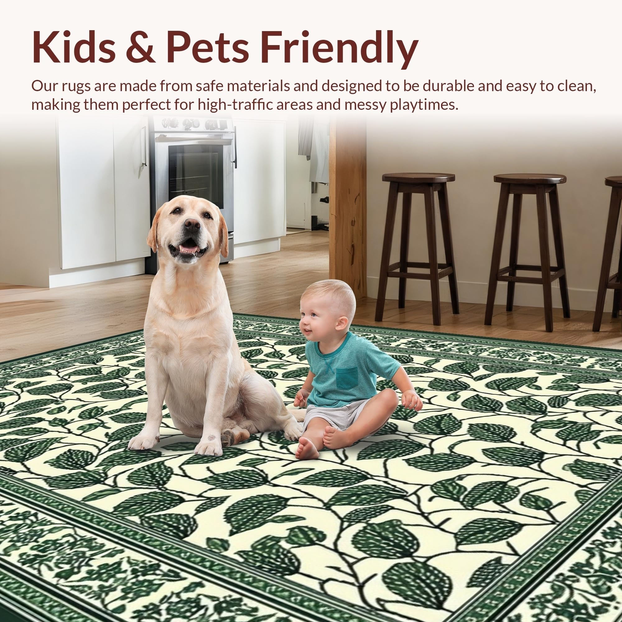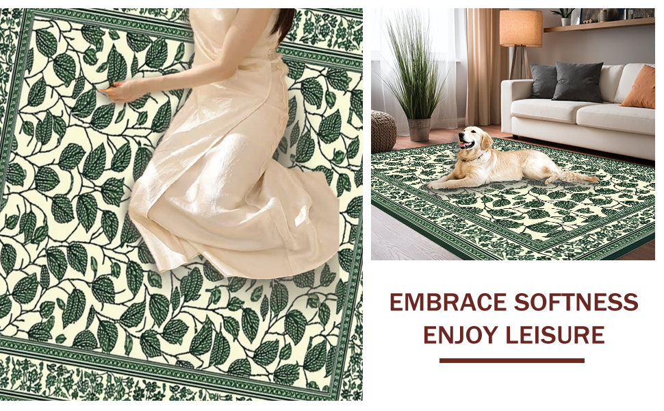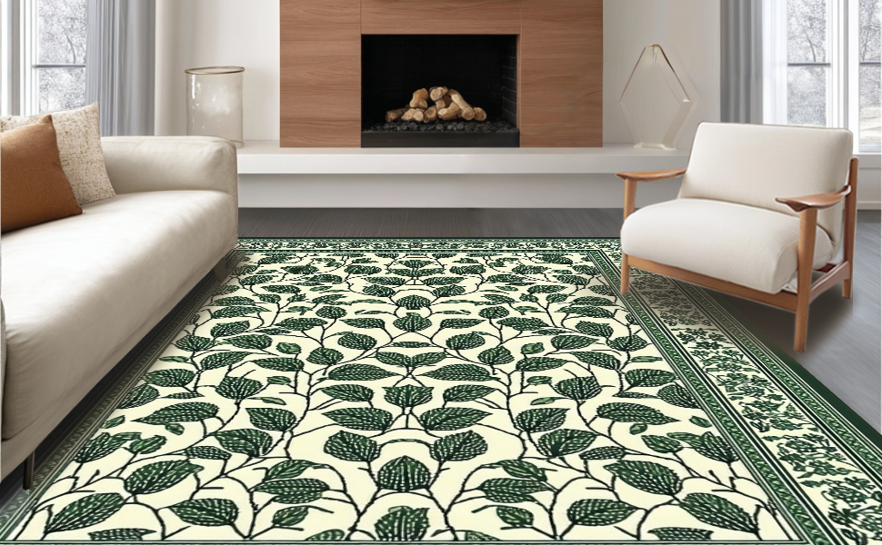 Ultra Soft Area Rug, Non Slip, Stain Resistant, Washable Area Rugs for Living Room, Bedroom, Artistic Green and Black Fusion(Green) Overview: