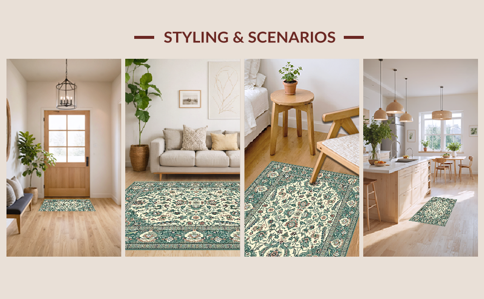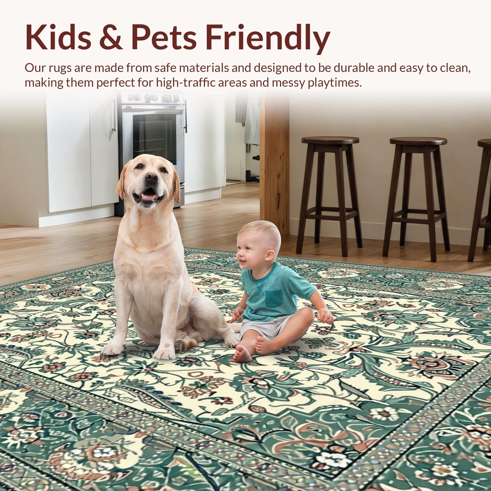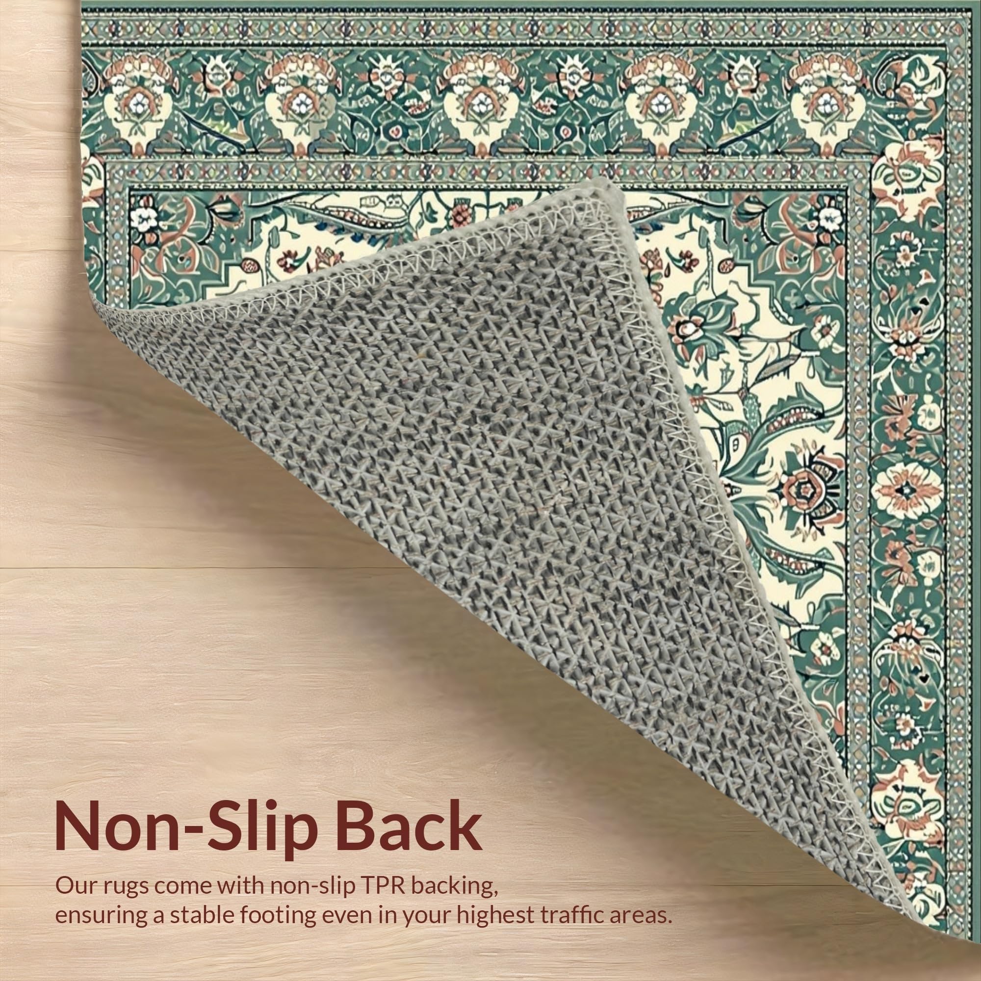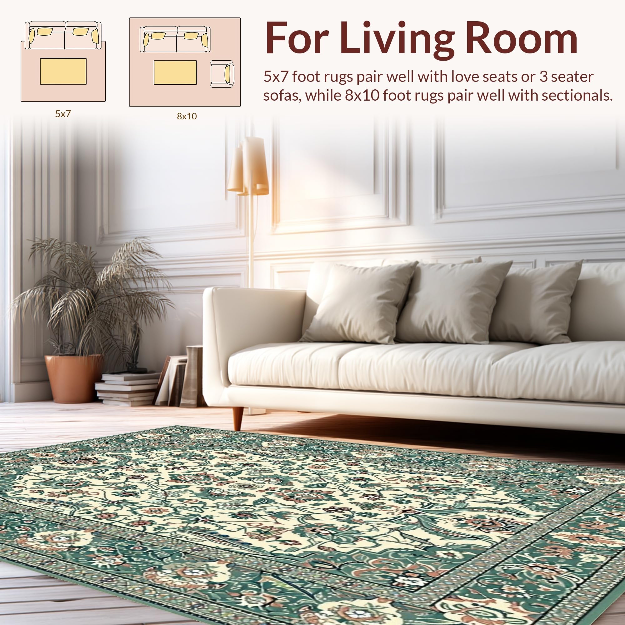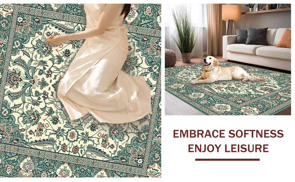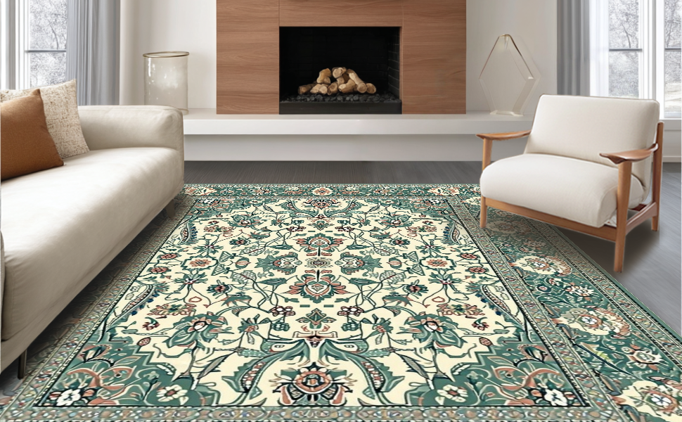 Ultra Soft Area Rug, Non Slip, Stain Resistant, Washable Area Rugs for Living Room, Bedroom, Artistic Green and Ivory Harmony(Ivory) Overview: