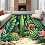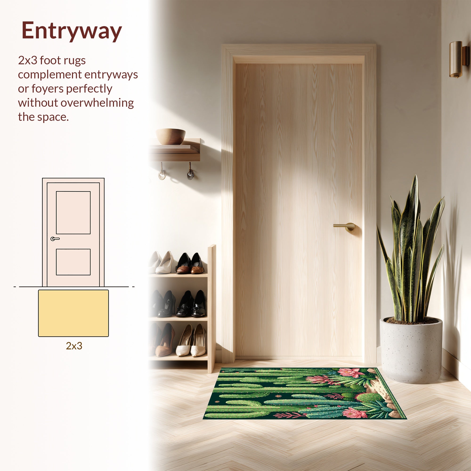 Flatwoven High Traffic Area Rug, Artistic Green and Pink Botanical, Non Slip, Stain Resistant, Washable Area Rugs for Living Room, Bedroom (Green) Overview: