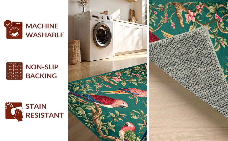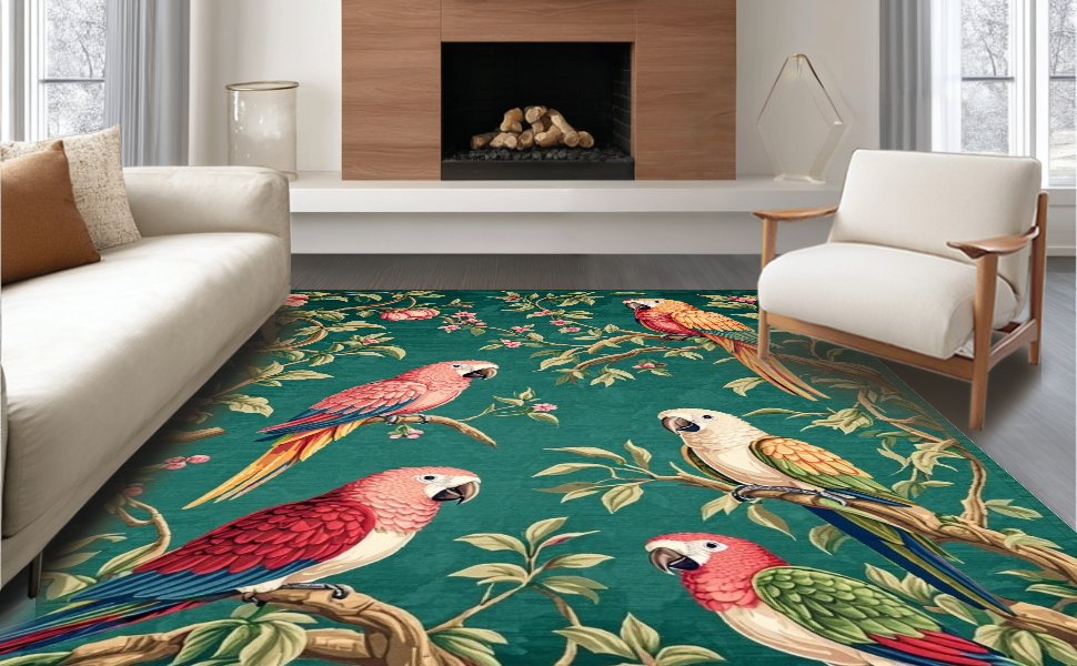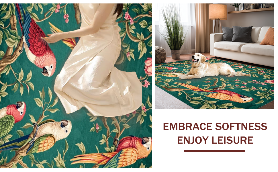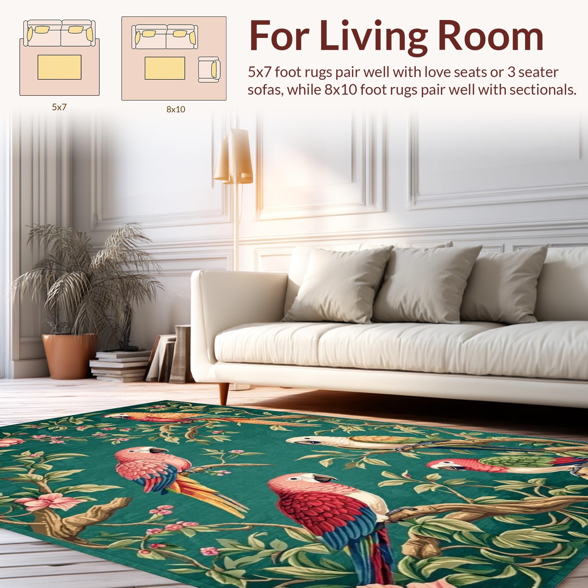Ultra Soft Area Rug, Non Slip, Stain Resistant, Washable Area Rugs for Living Room, Bedroom, Artistic Green Botanical Pattern(Green) Overview: