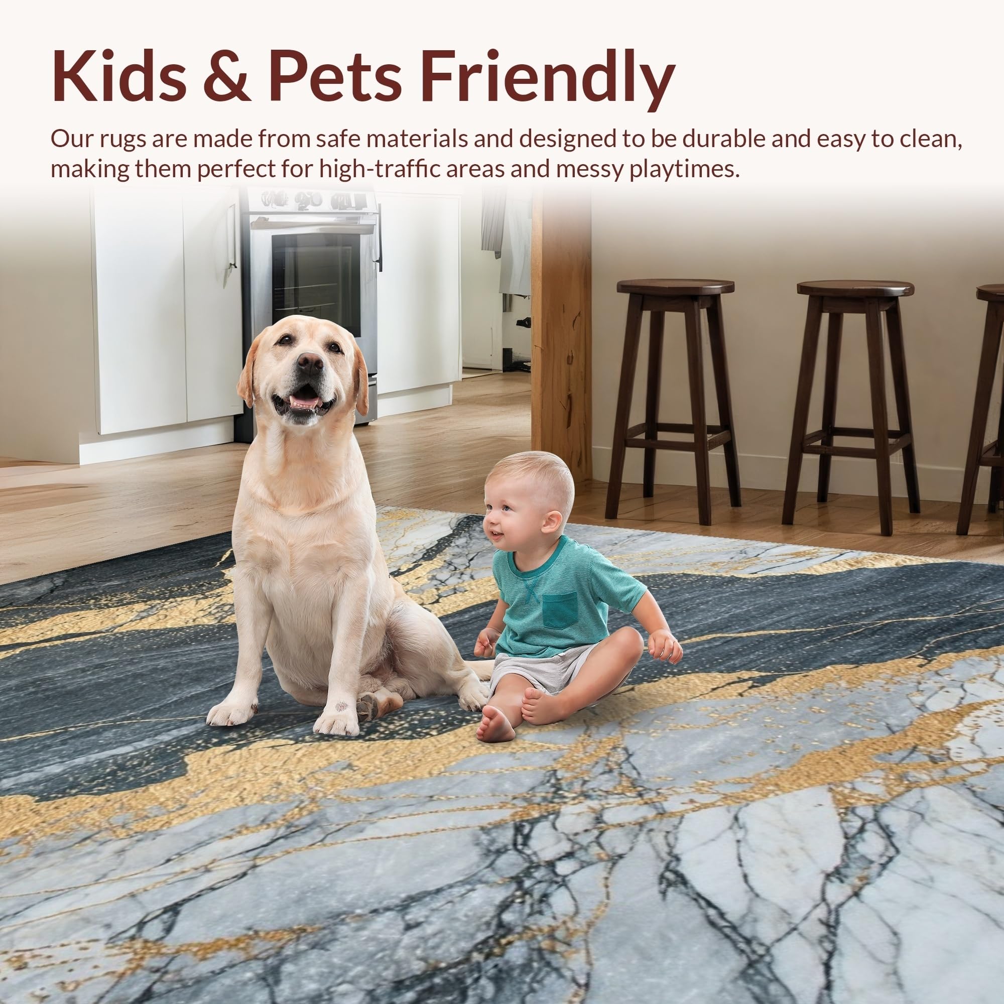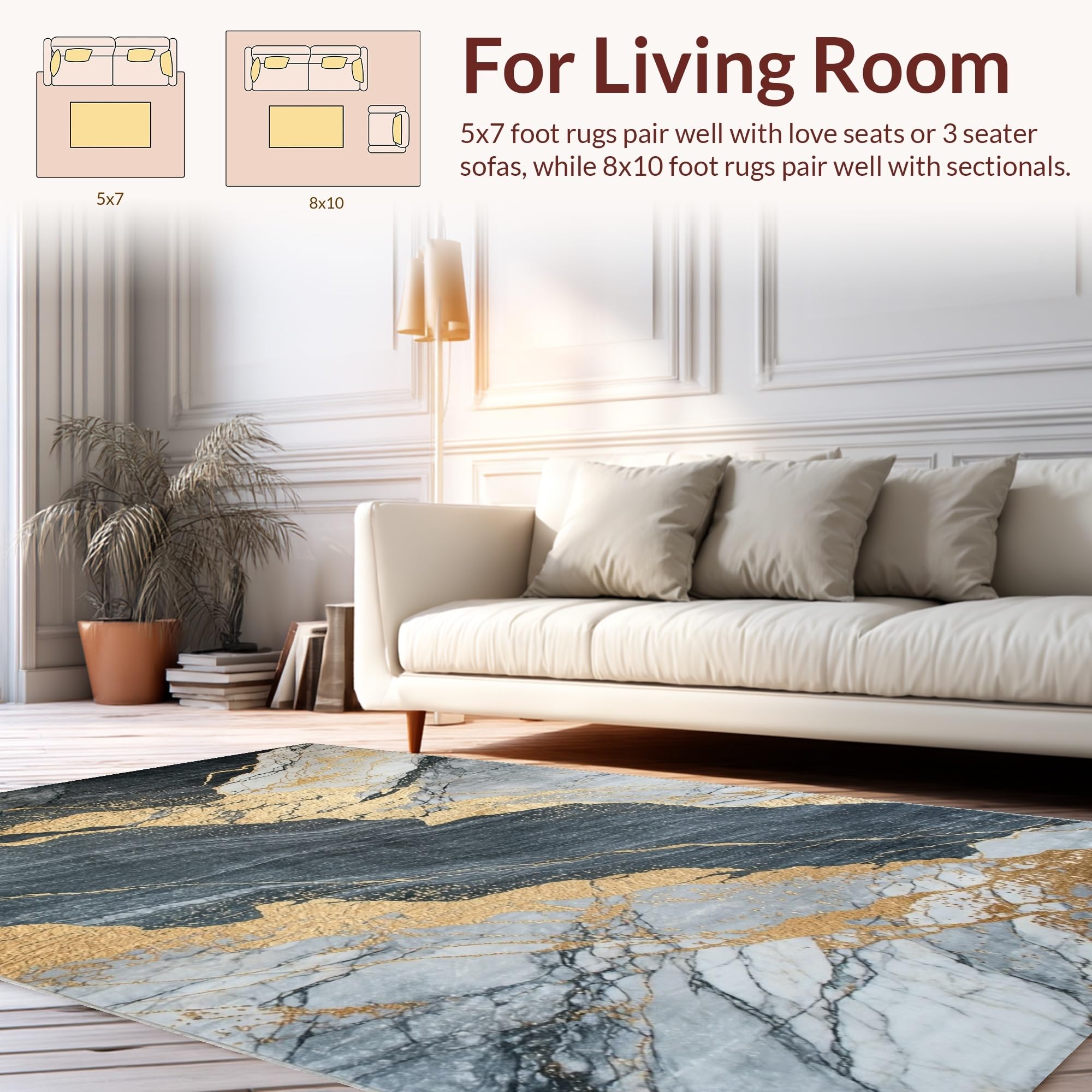 Ultra Soft Area Rug, Non Slip, Stain Resistant, Washable Area Rugs for Living Room, Bedroom, Artistic Grey and White Fusion(Gray) Overview: