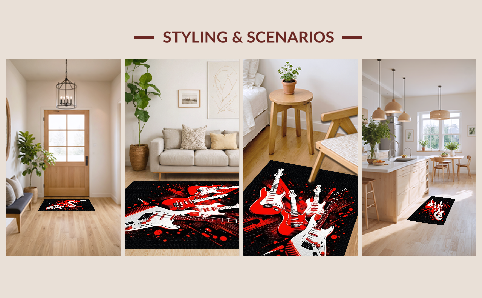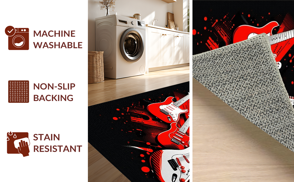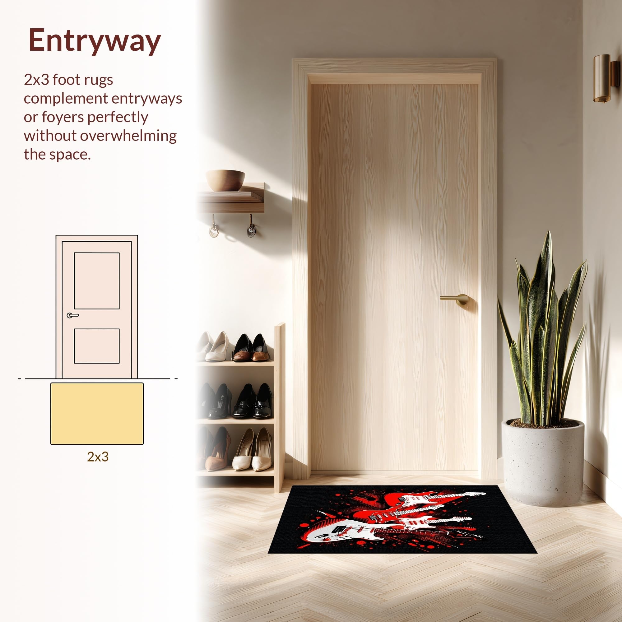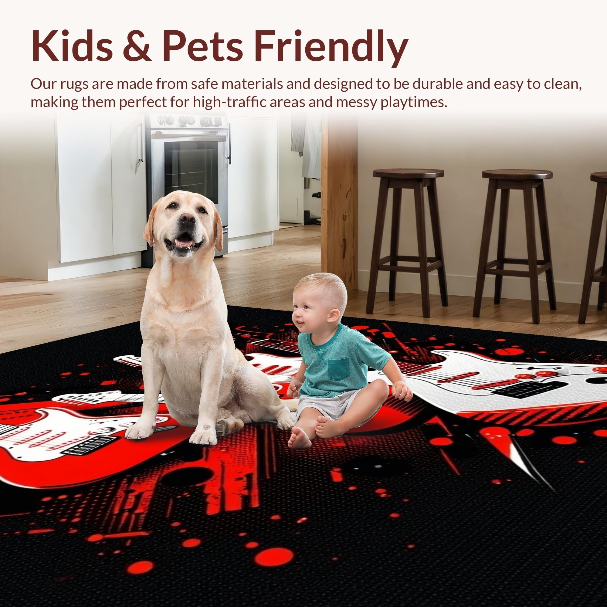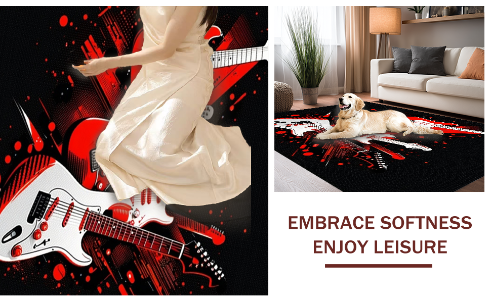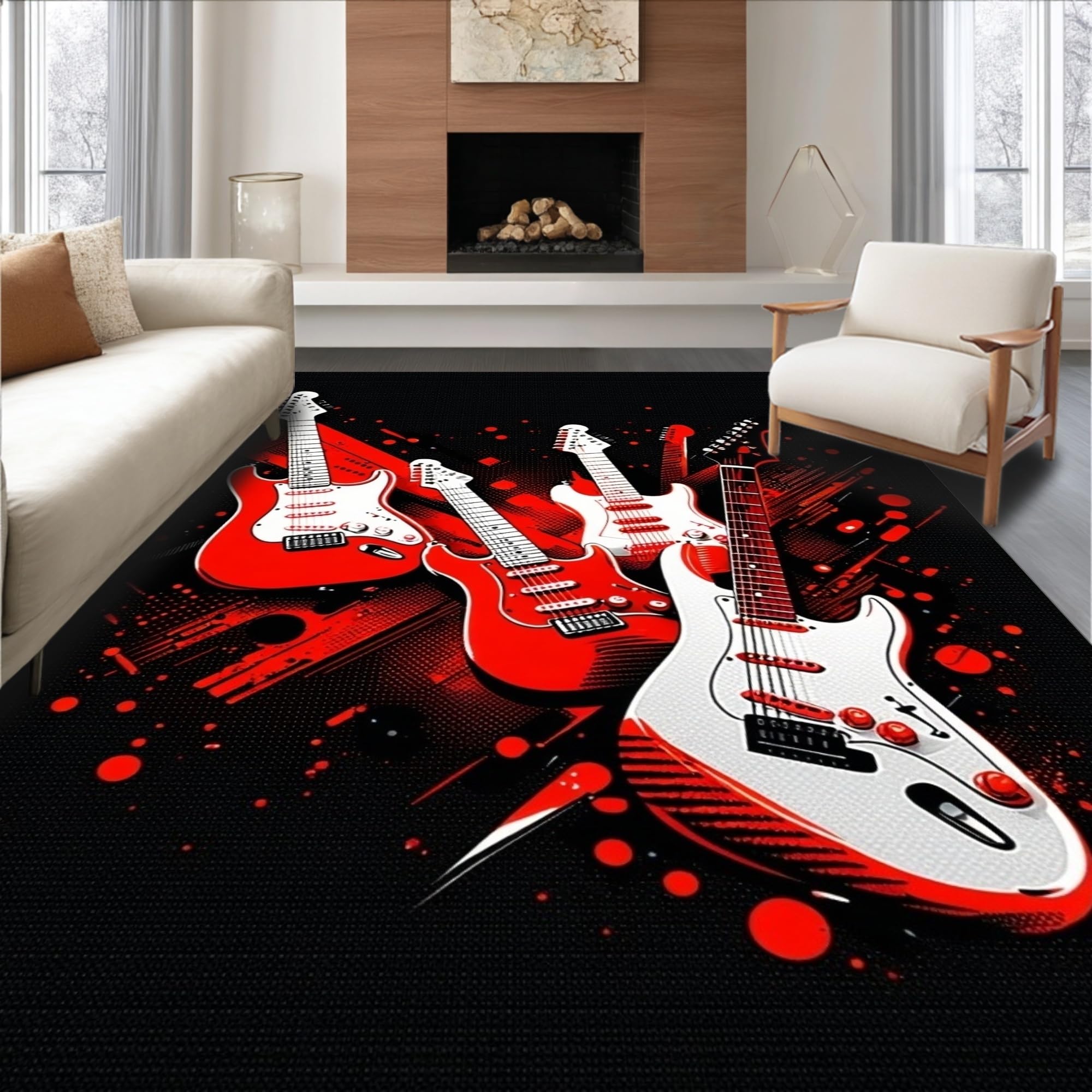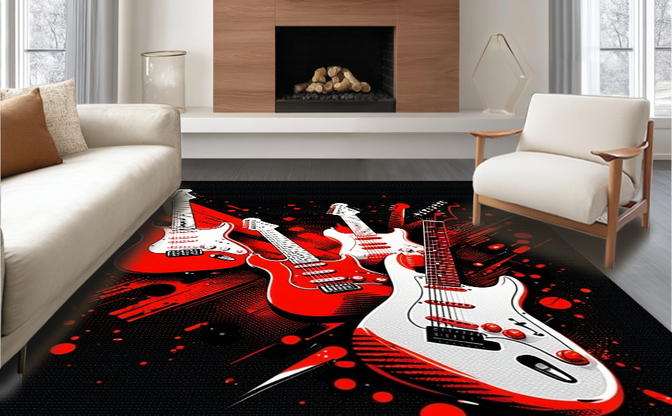 Ultra Soft Area Rug, Non Slip, Stain Resistant, Washable Area Rugs for Living Room, Bedroom, Artistic Guitar Graphic Presentation(Red) Overview: