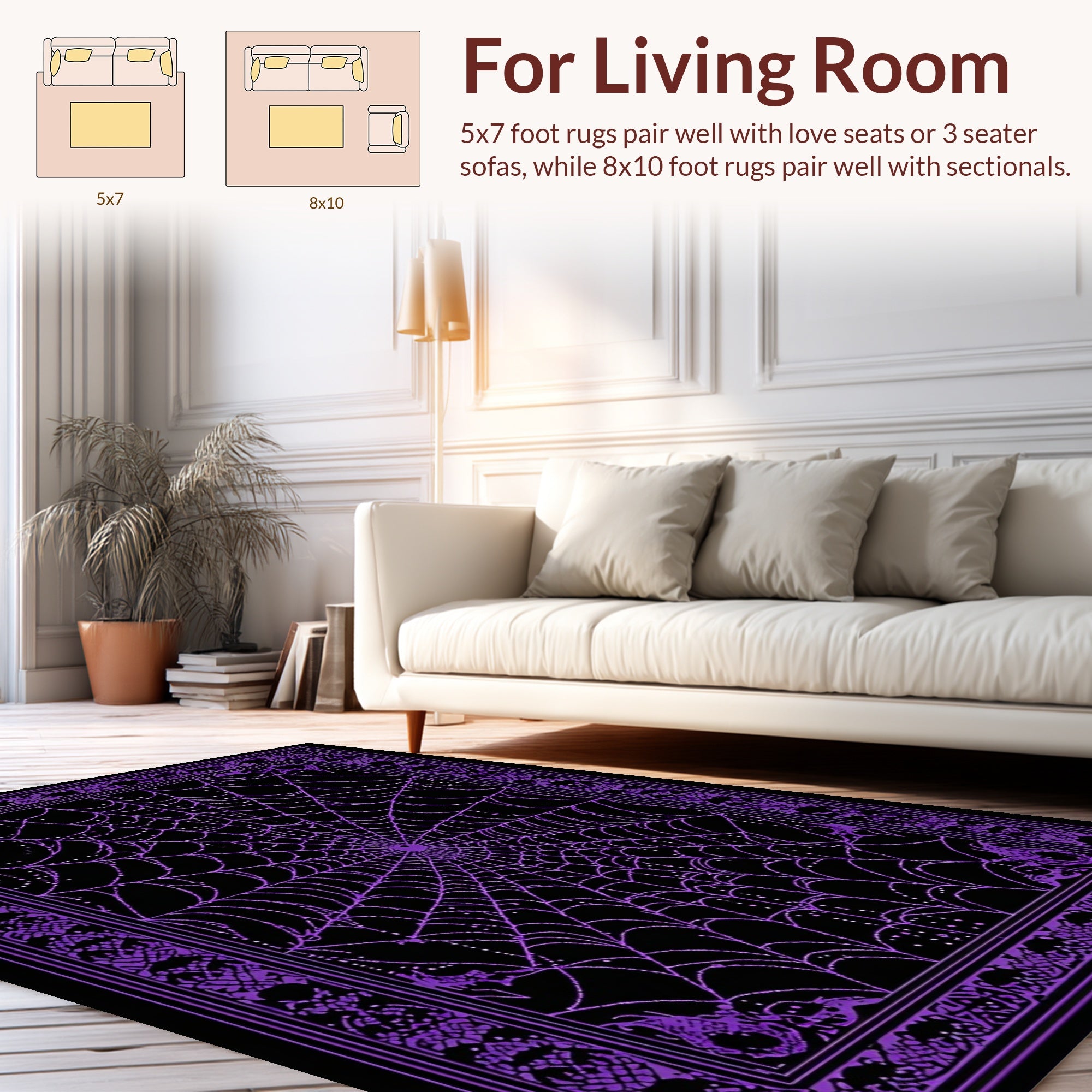 Flatwoven High Traffic Area Rug, Artistic Halloween Inspired Lattice Style, Non Slip, Stain Resistant, Washable Area Rugs for Living Room, Bedroom (Purple) Overview: