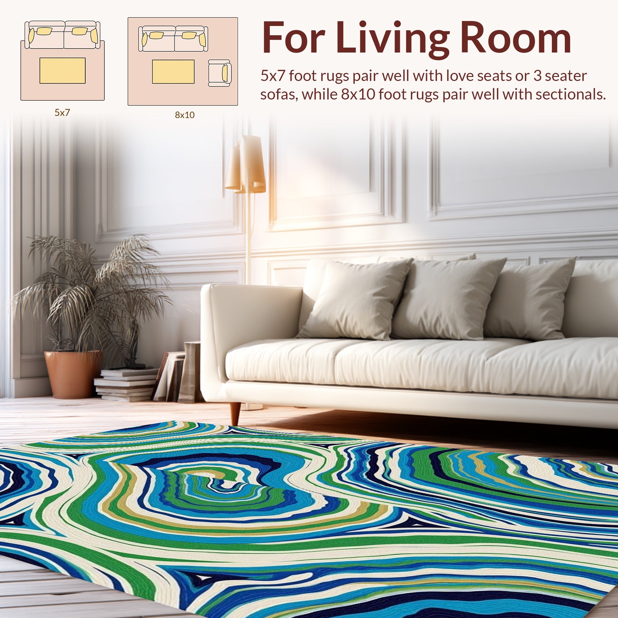 Ultra Soft Area Rug, Non Slip, Stain Resistant, Washable Area Rugs for Living Room, Bedroom, Artistic Impressionist Swirls Patterned Floor Decor(Blue) Overview: