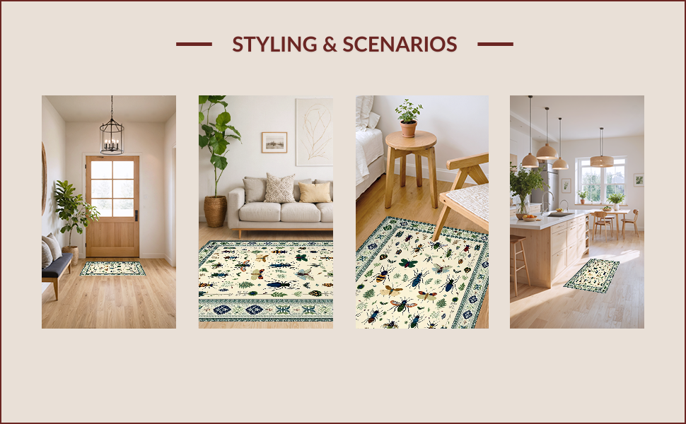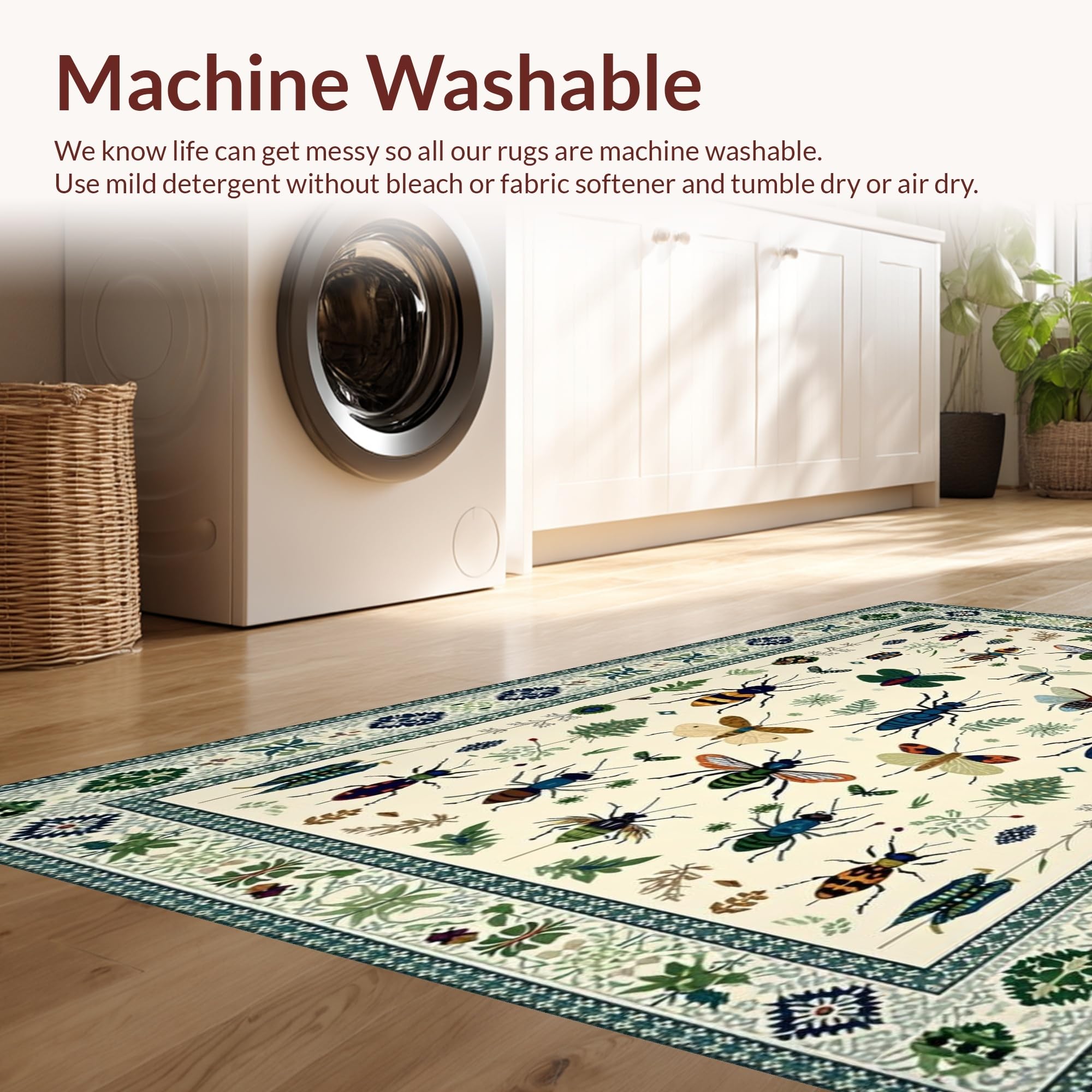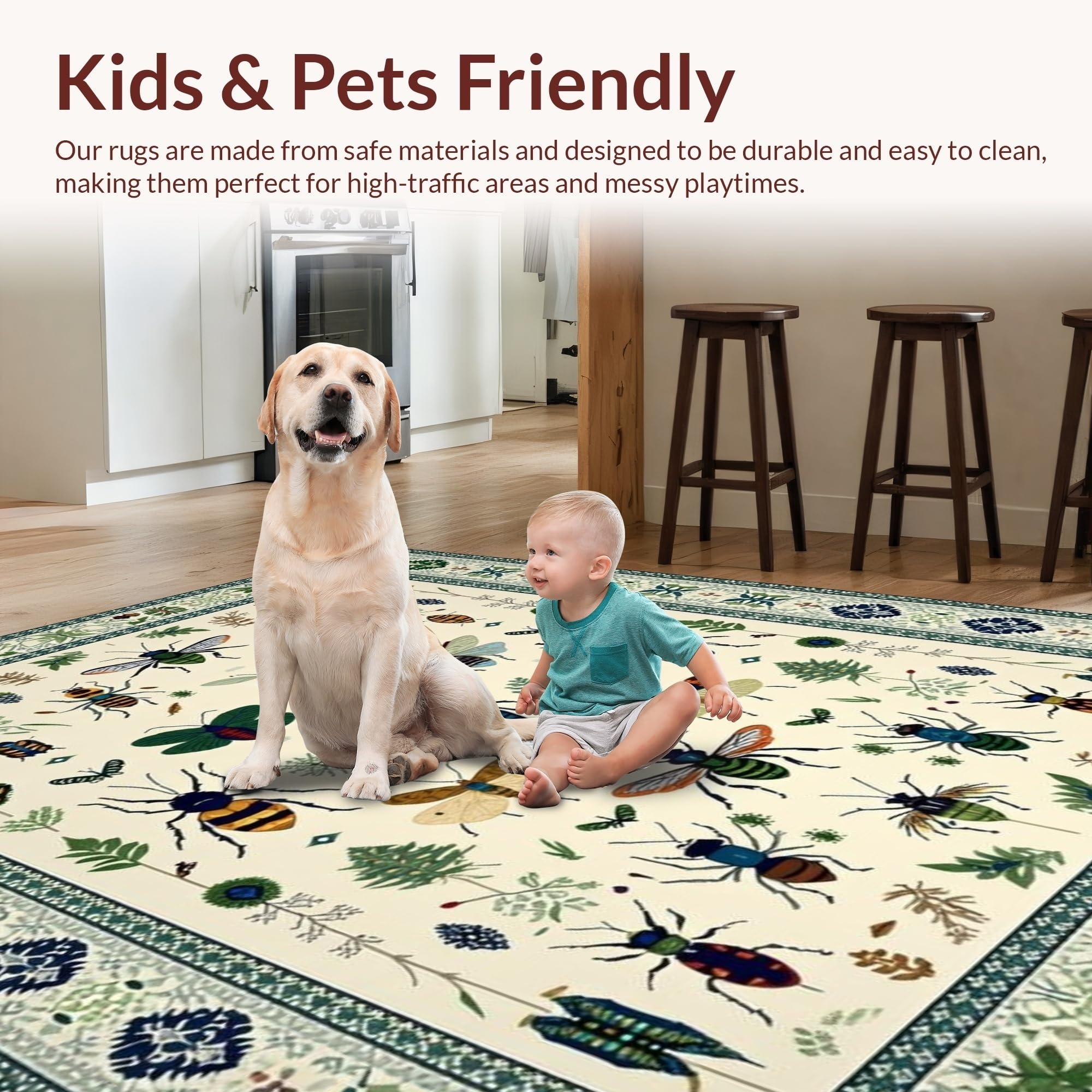 Ultra Soft Area Rug, Non Slip, Stain Resistant, Washable Area Rugs for Living Room, Bedroom, Artistic Insect Motif Soft Texture(Beige) Overview: