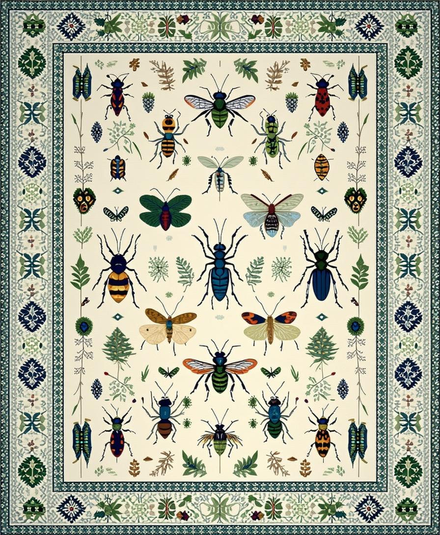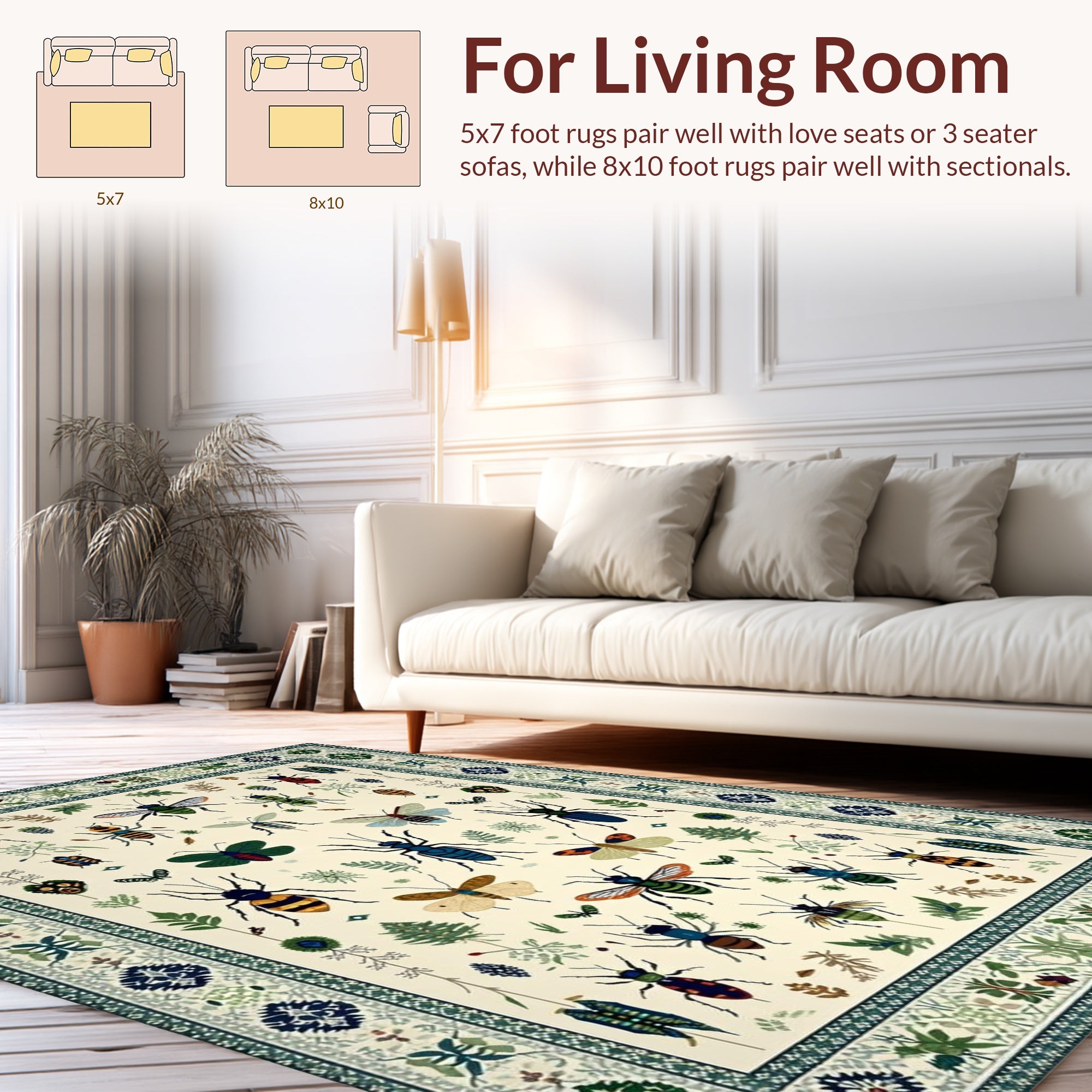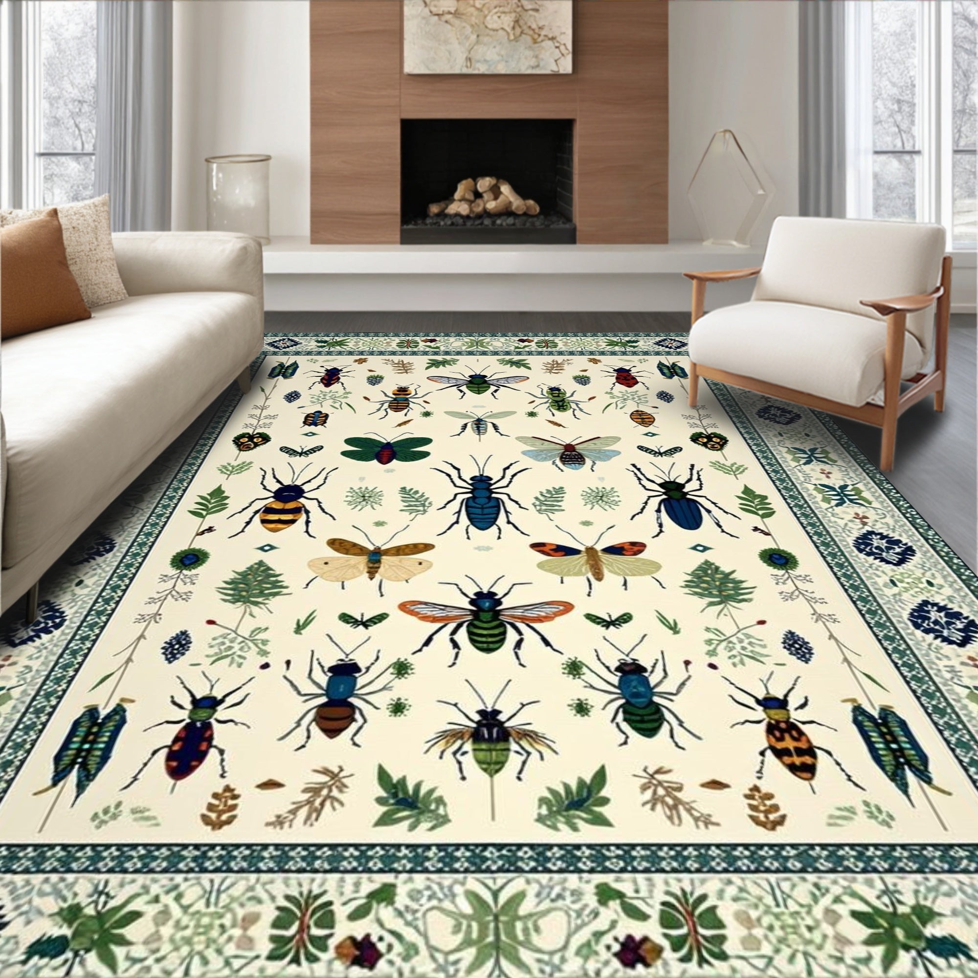 Flatwoven High Traffic Area Rug, Artistic Insect Motif Texture, Non Slip, Stain Resistant, Washable Area Rugs for Living Room, Bedroom (Beige) Overview:
