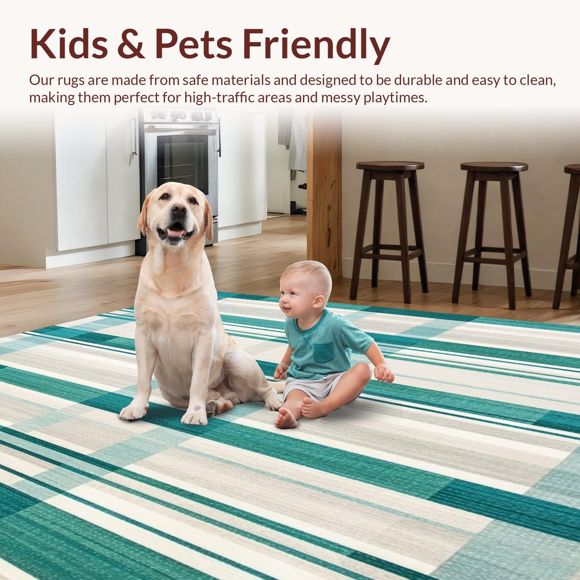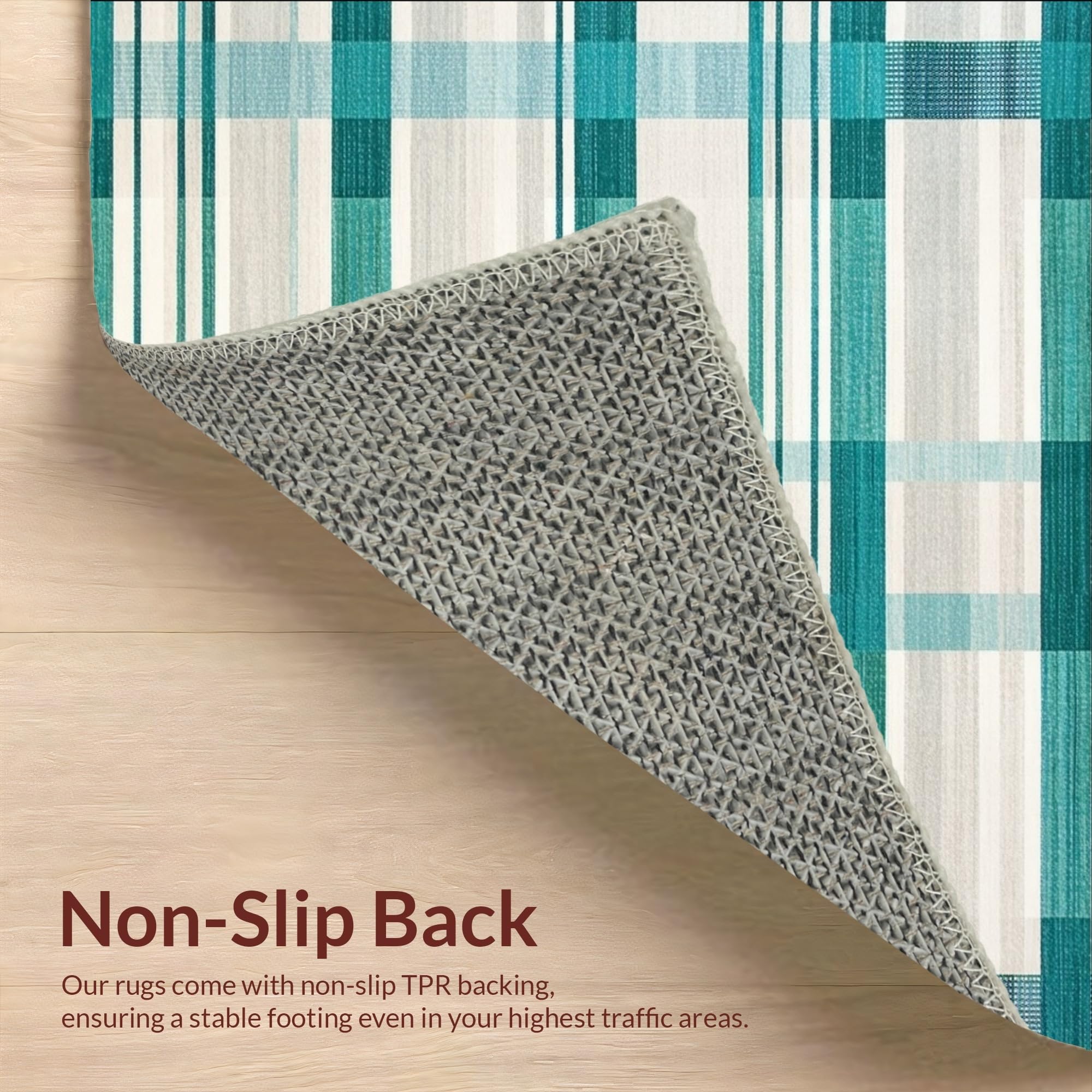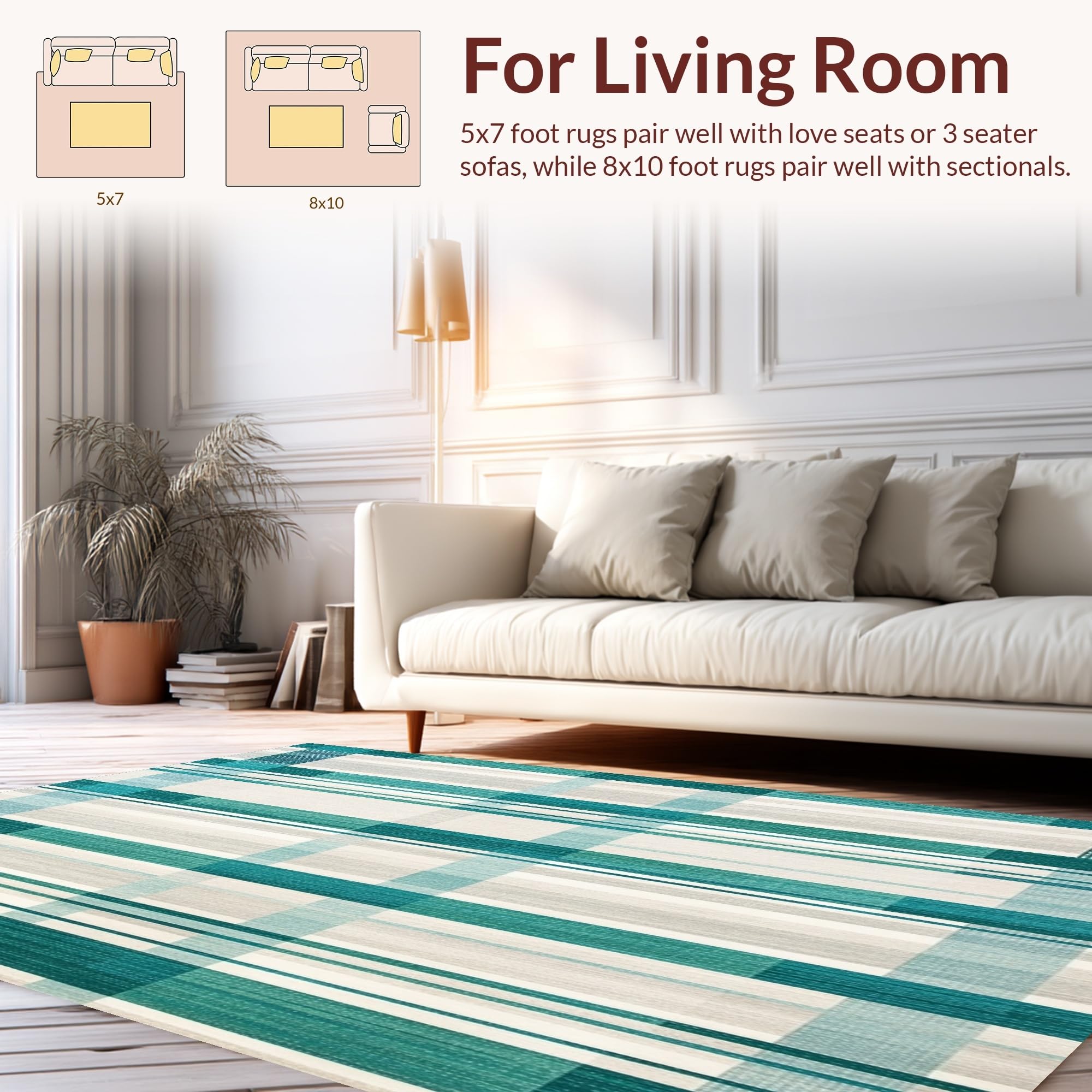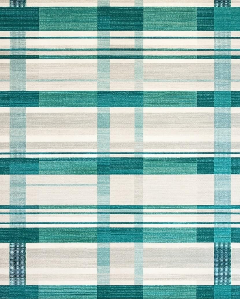 Ultra Soft Area Rug, Non Slip, Stain Resistant, Washable Area Rugs for Living Room, Bedroom, Artistic Irregular Plaid with Blue Green and Light Beige Contrasts(Beige) Overview: