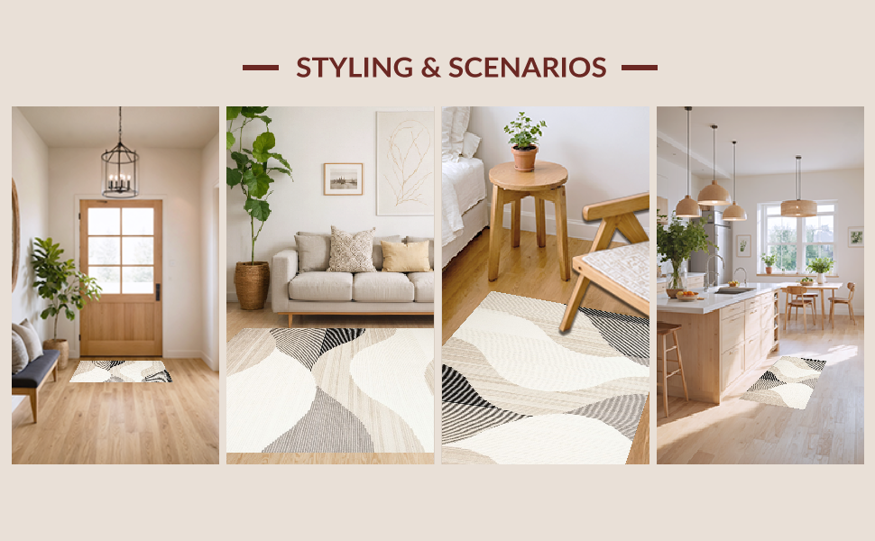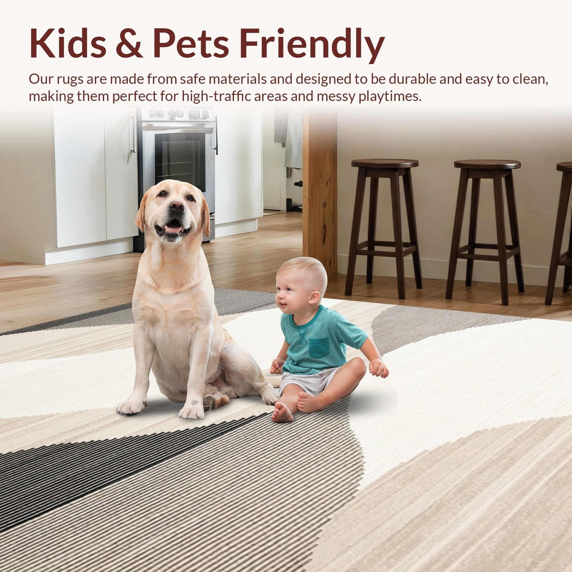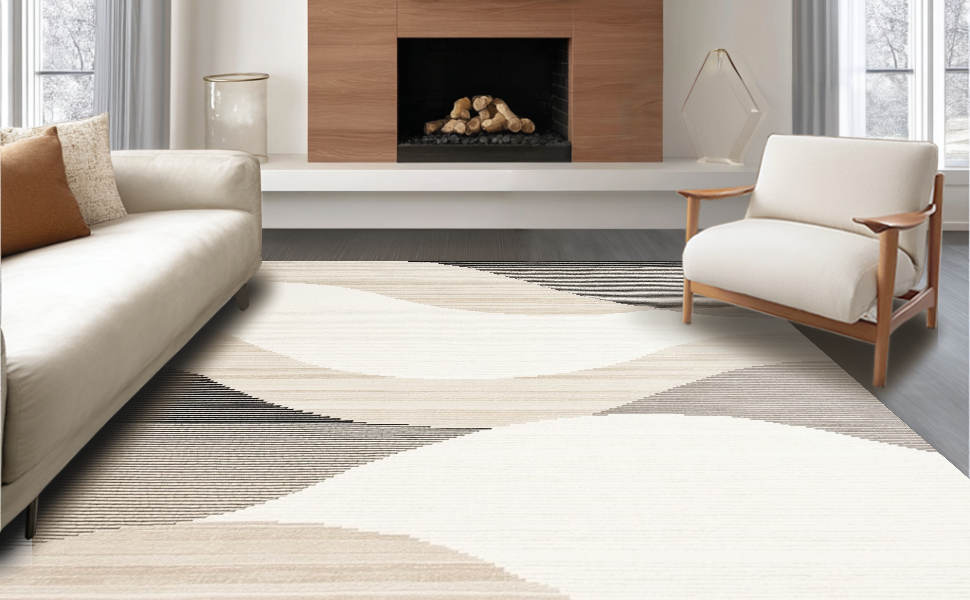 Ultra Soft Area Rug, Non Slip, Stain Resistant, Washable Area Rugs for Living Room, Bedroom, Artistic Ivory Swirl Aesthetic(Beige) Overview: