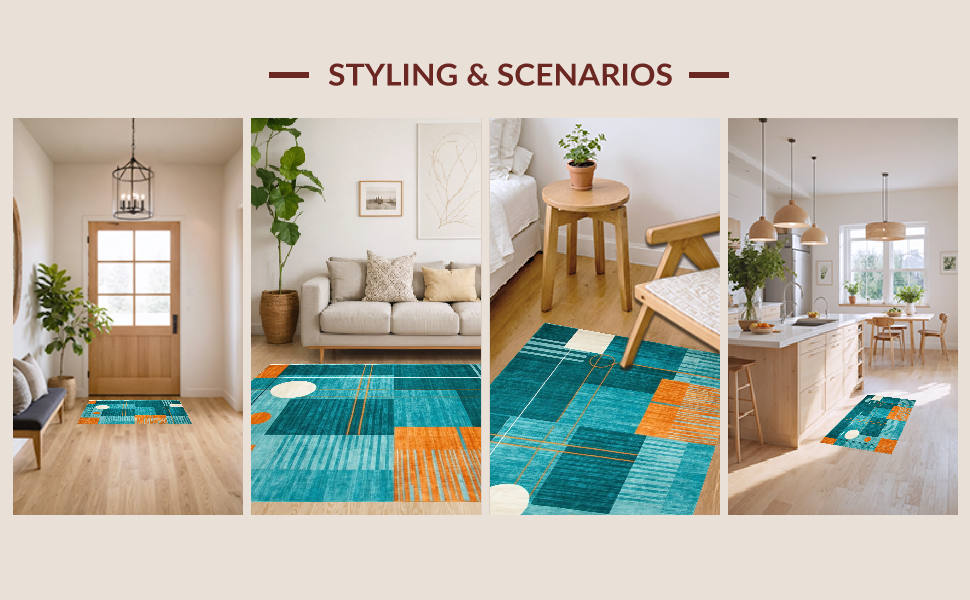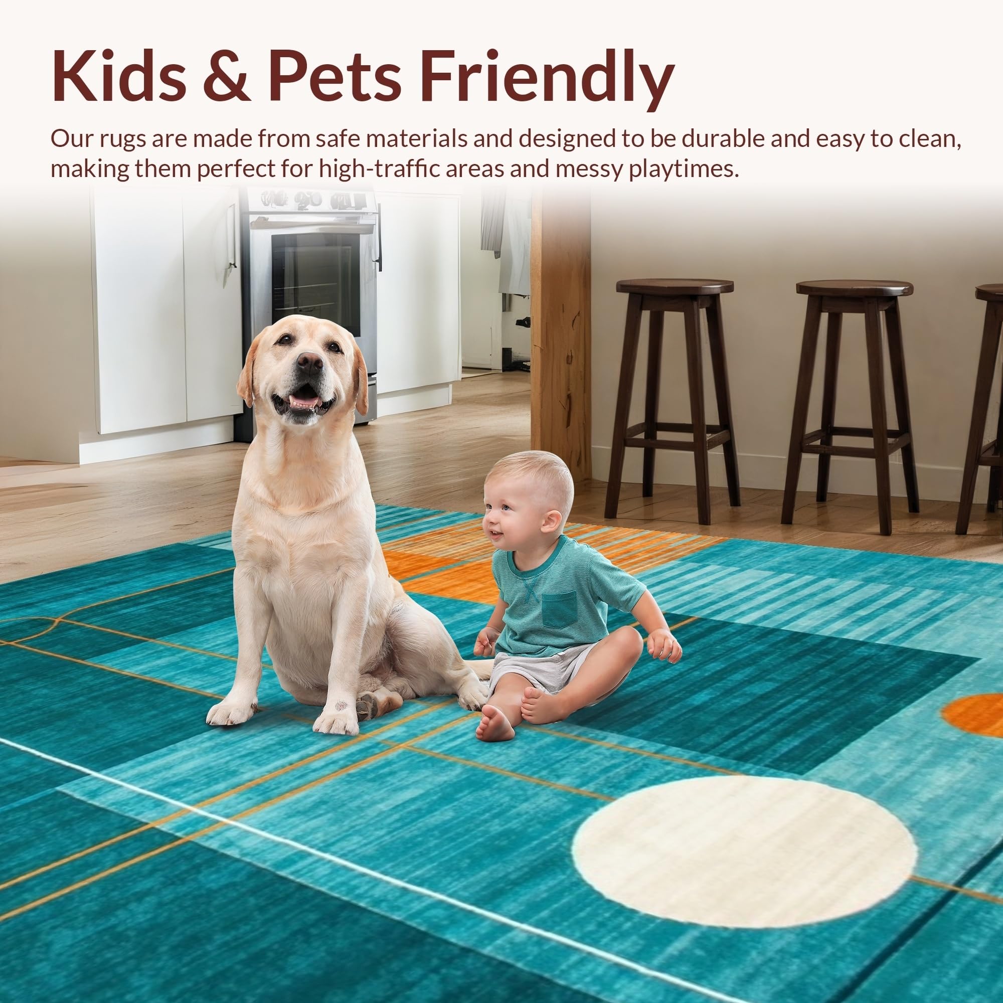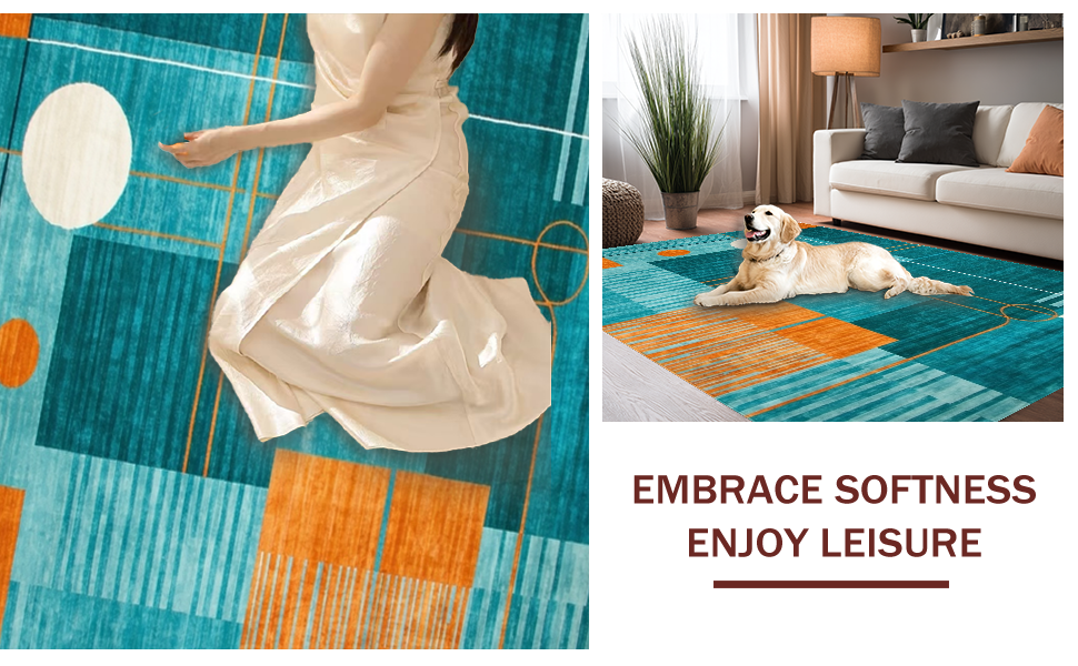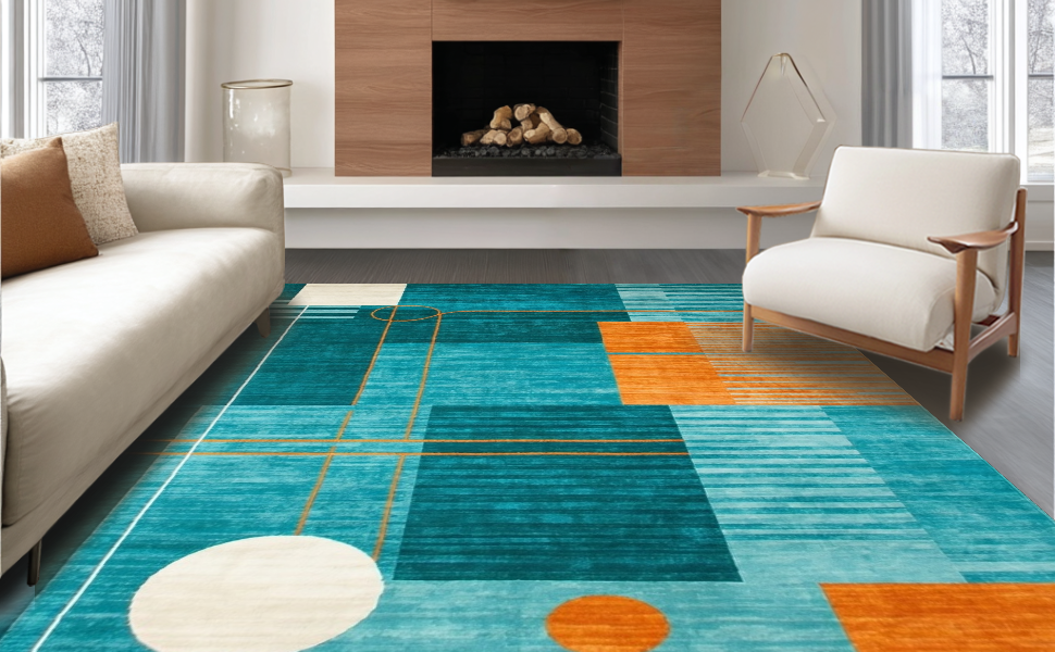 Ultra Soft Area Rug, Non Slip, Stain Resistant, Washable Area Rugs for Living Room, Bedroom, Artistic Layered Color Arrangement(Blue) Overview: