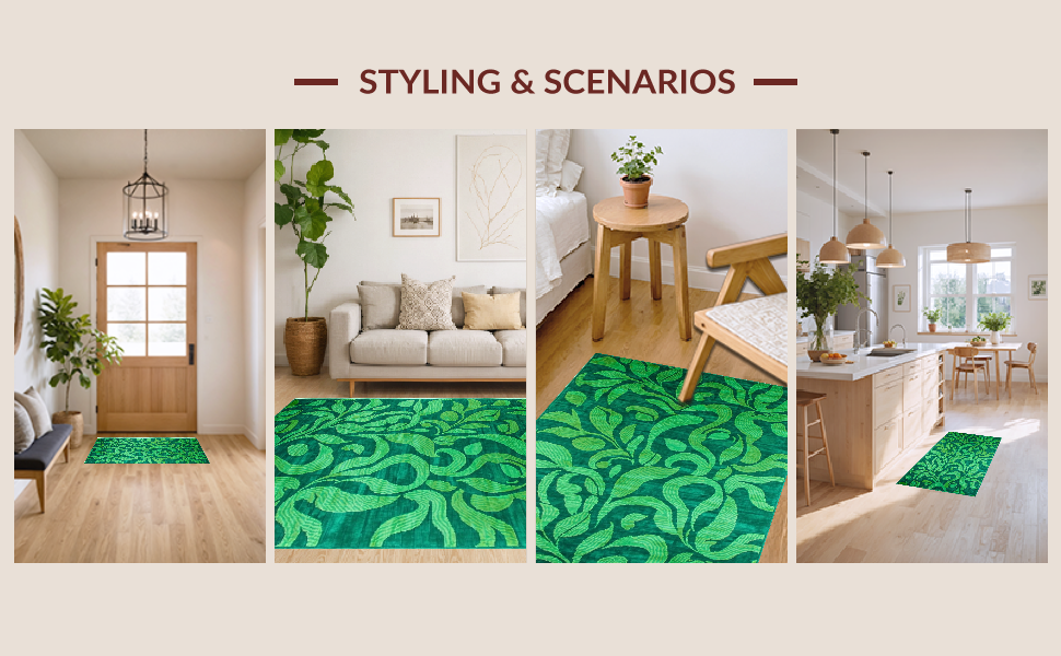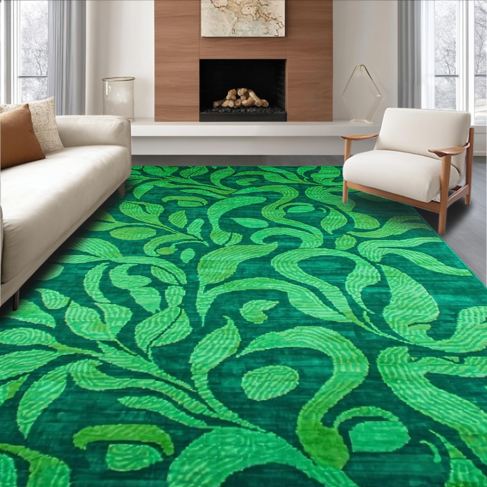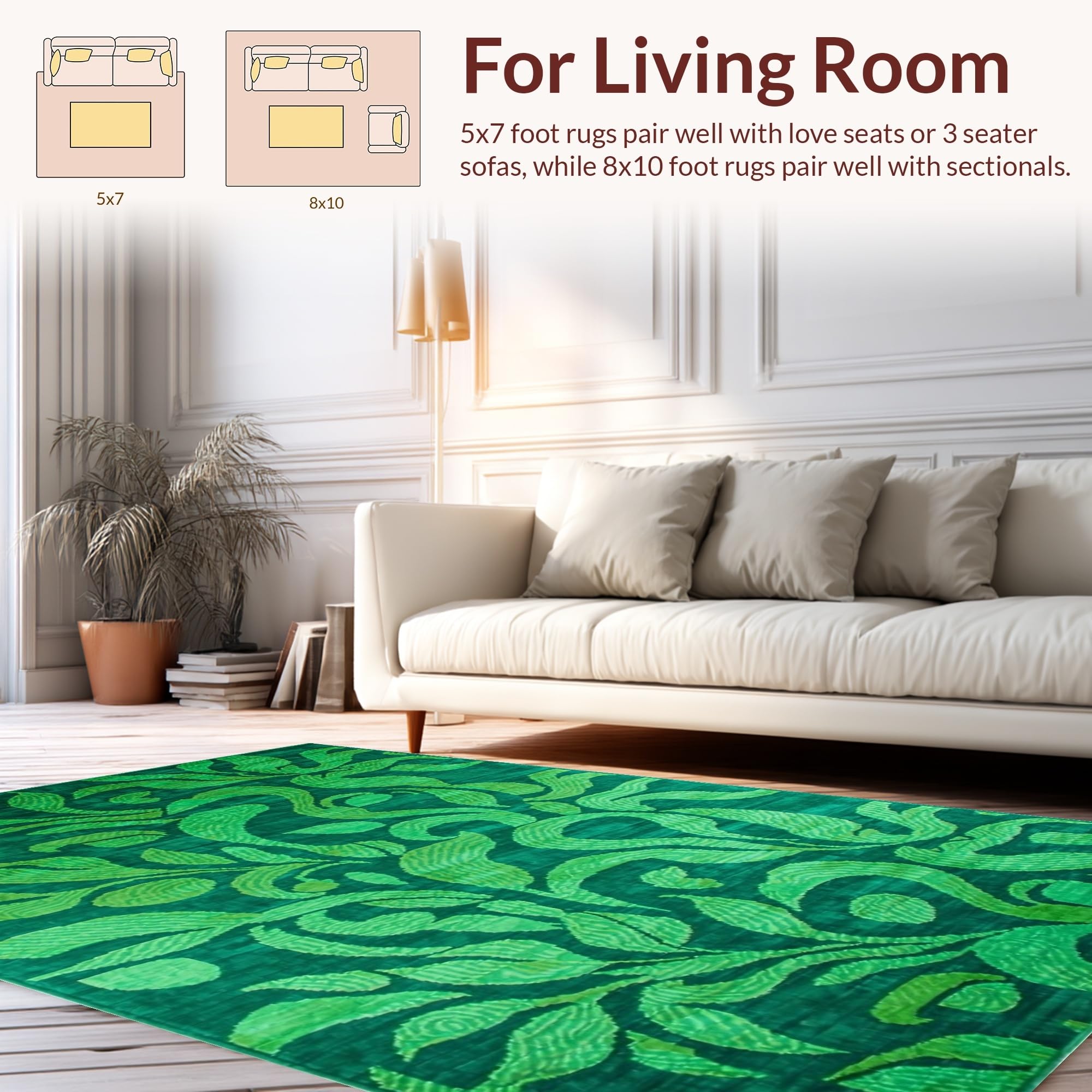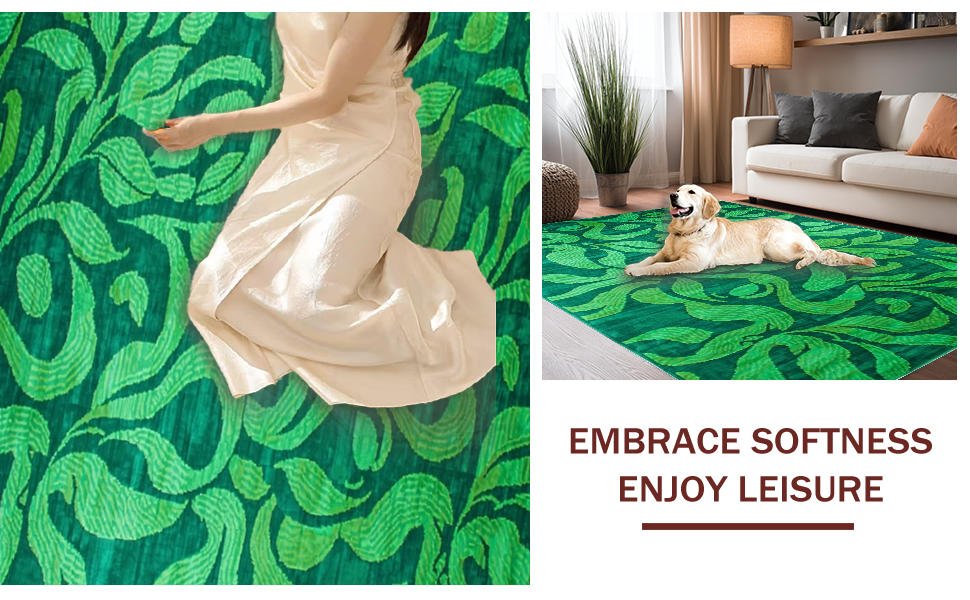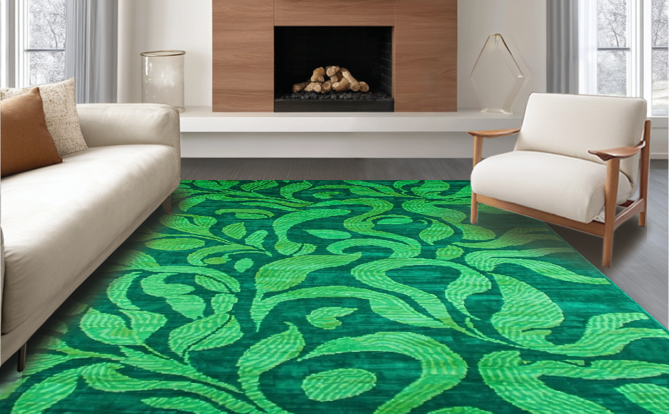 Ultra Soft Area Rug, Non Slip, Stain Resistant, Washable Area Rugs for Living Room, Bedroom, Artistic Layered Fuzzy Composition(Green) Overview: