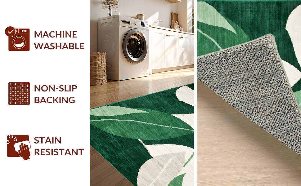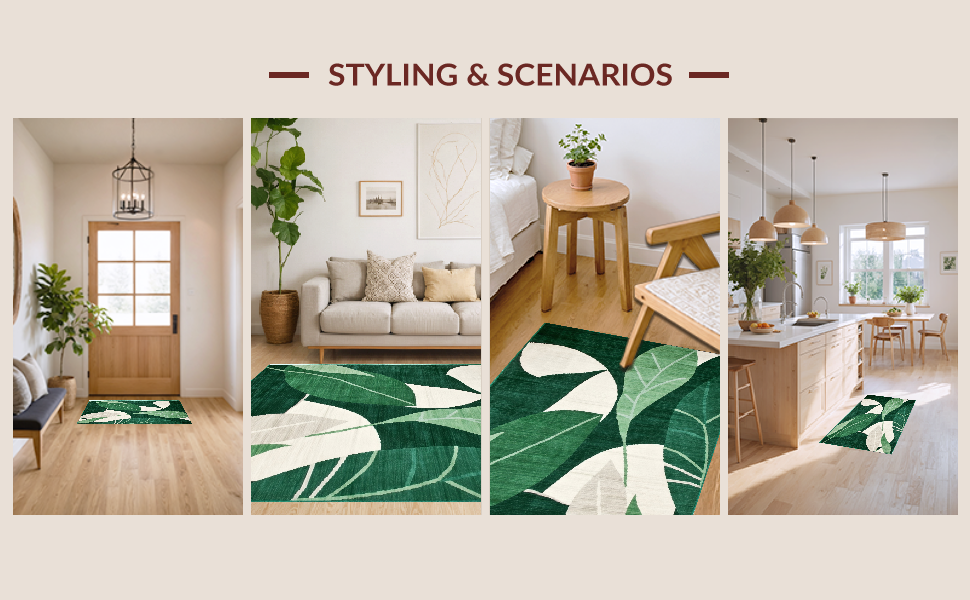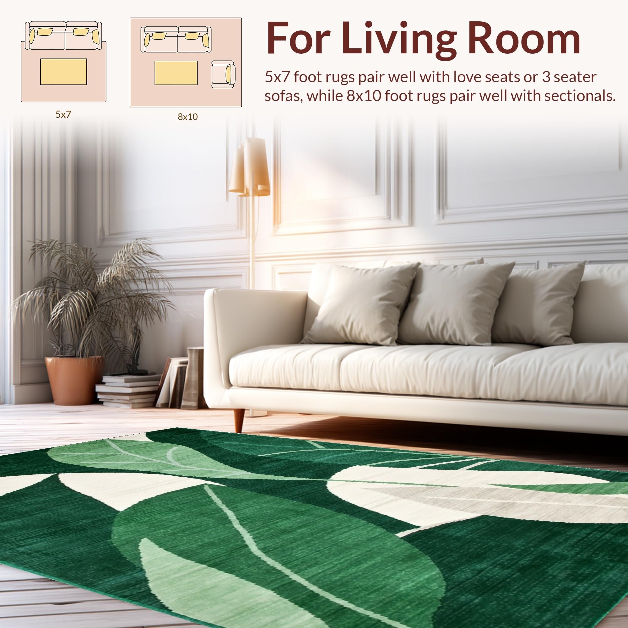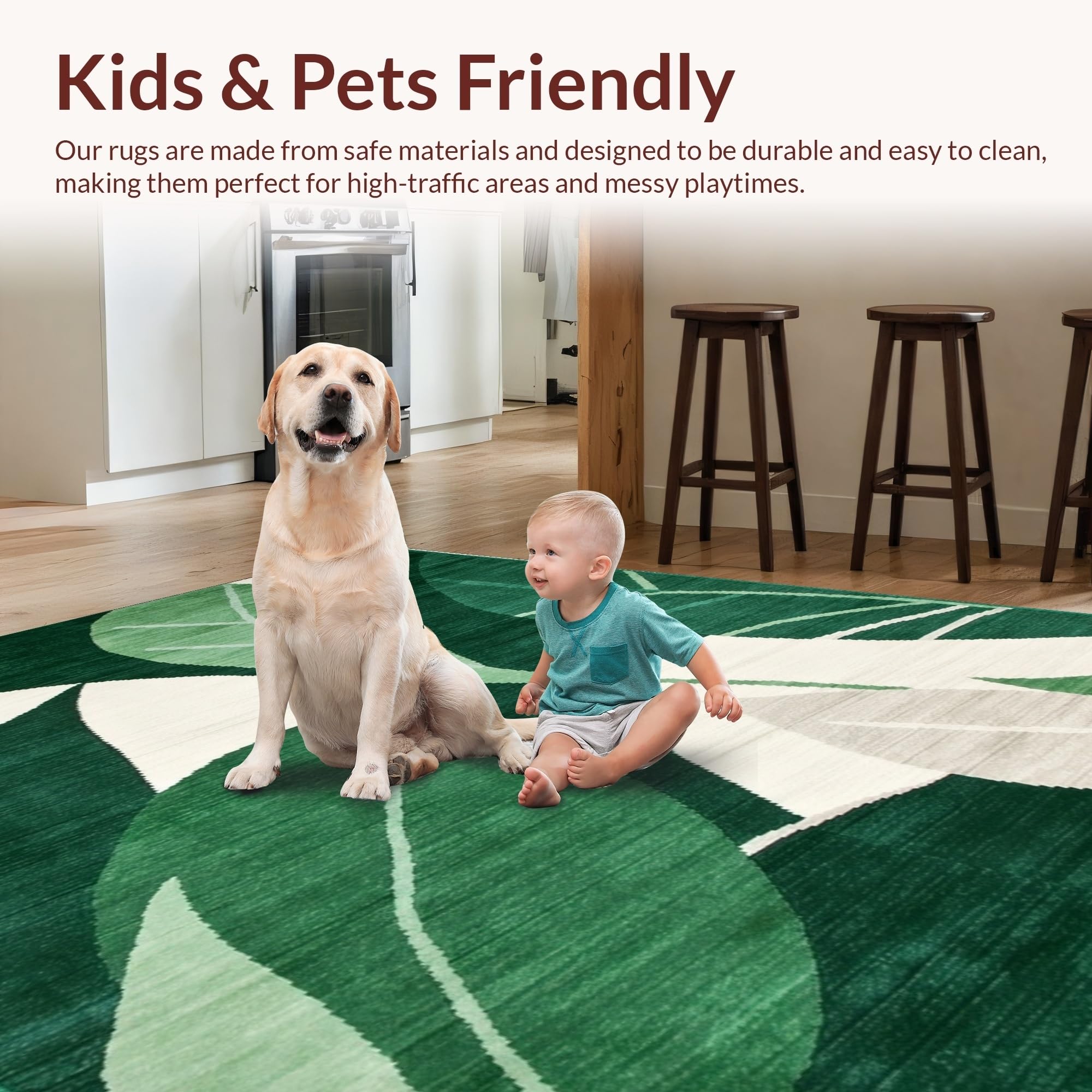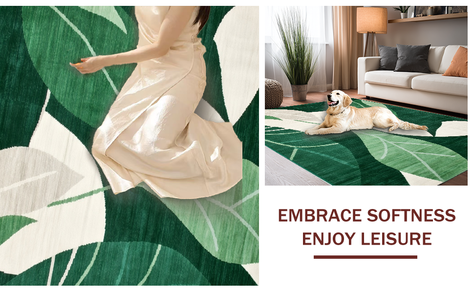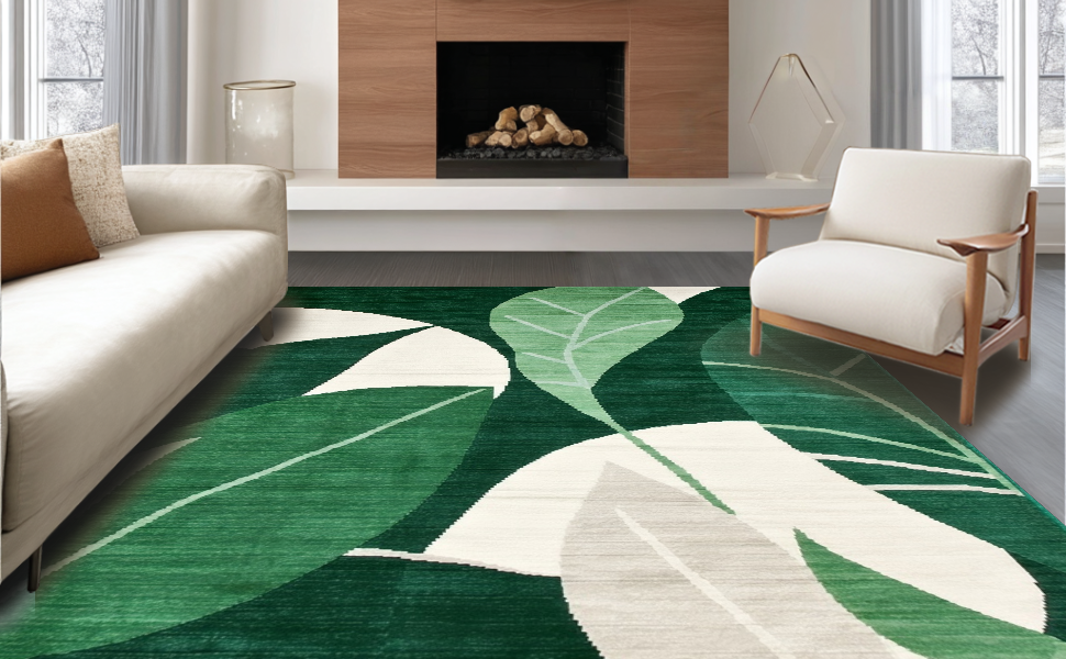 Ultra Soft Area Rug, Non Slip, Stain Resistant, Washable Area Rugs for Living Room, Bedroom, Artistic Leafy Tapestry Style(Green) Overview: