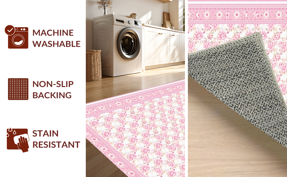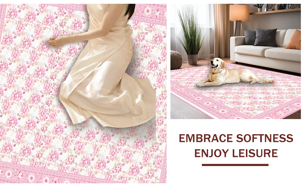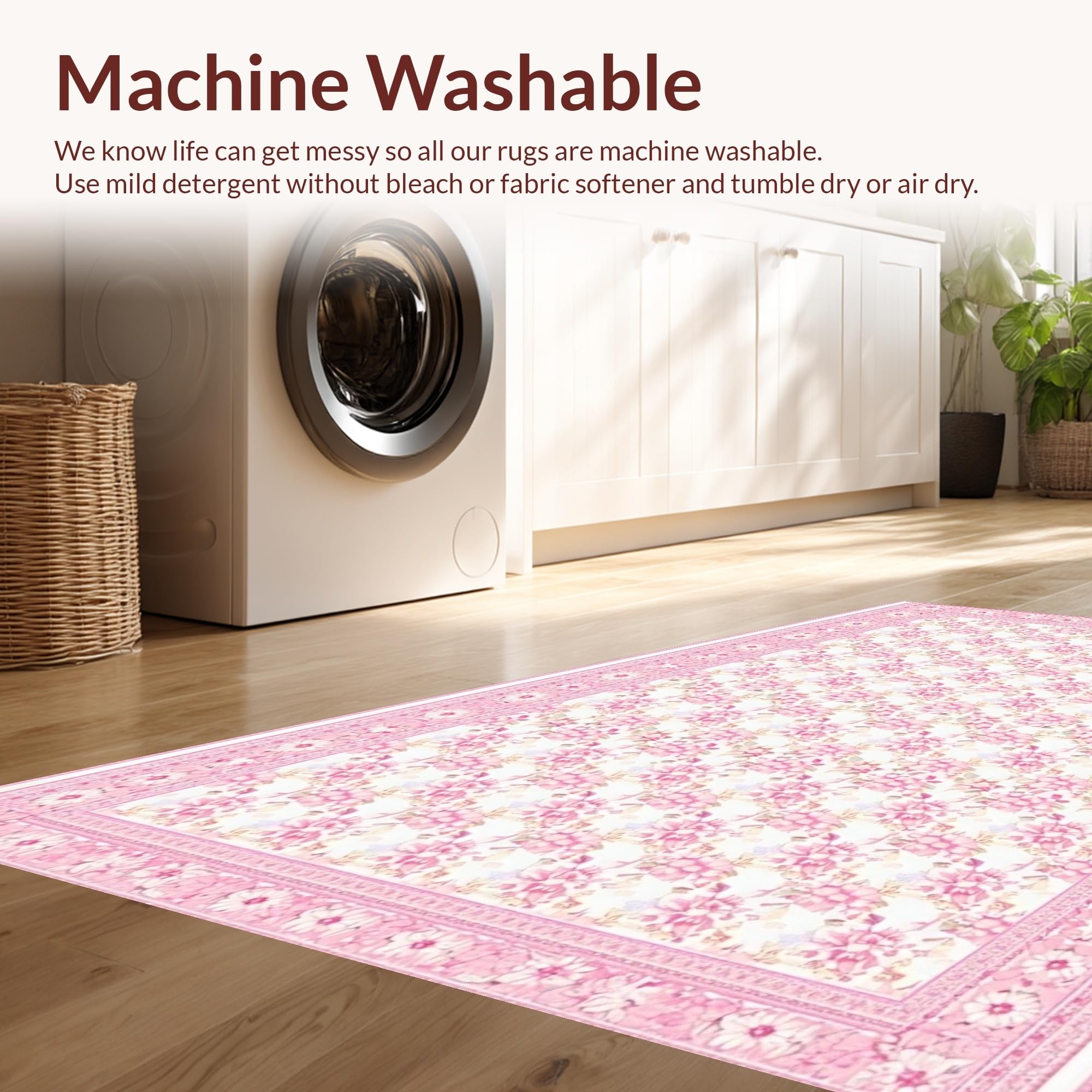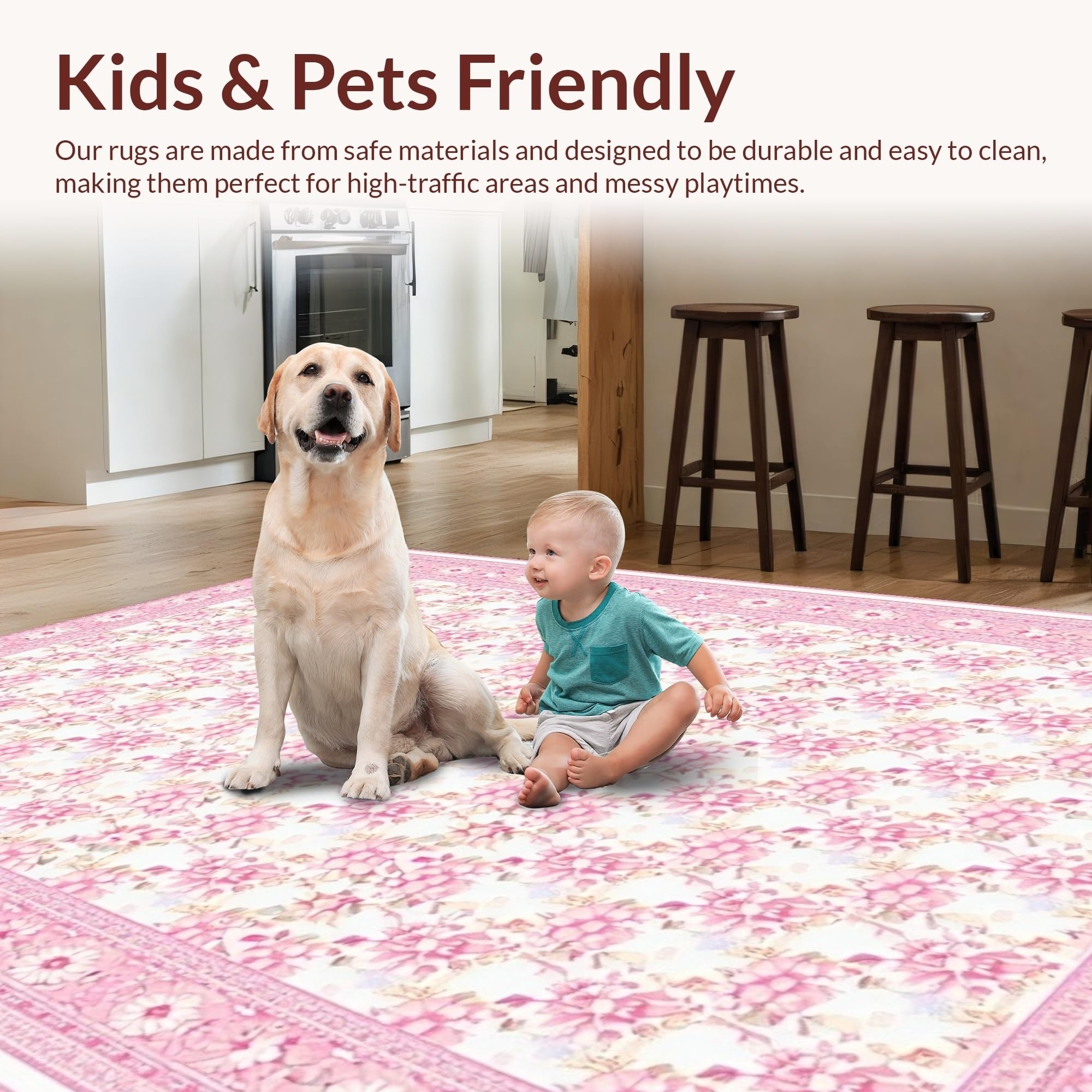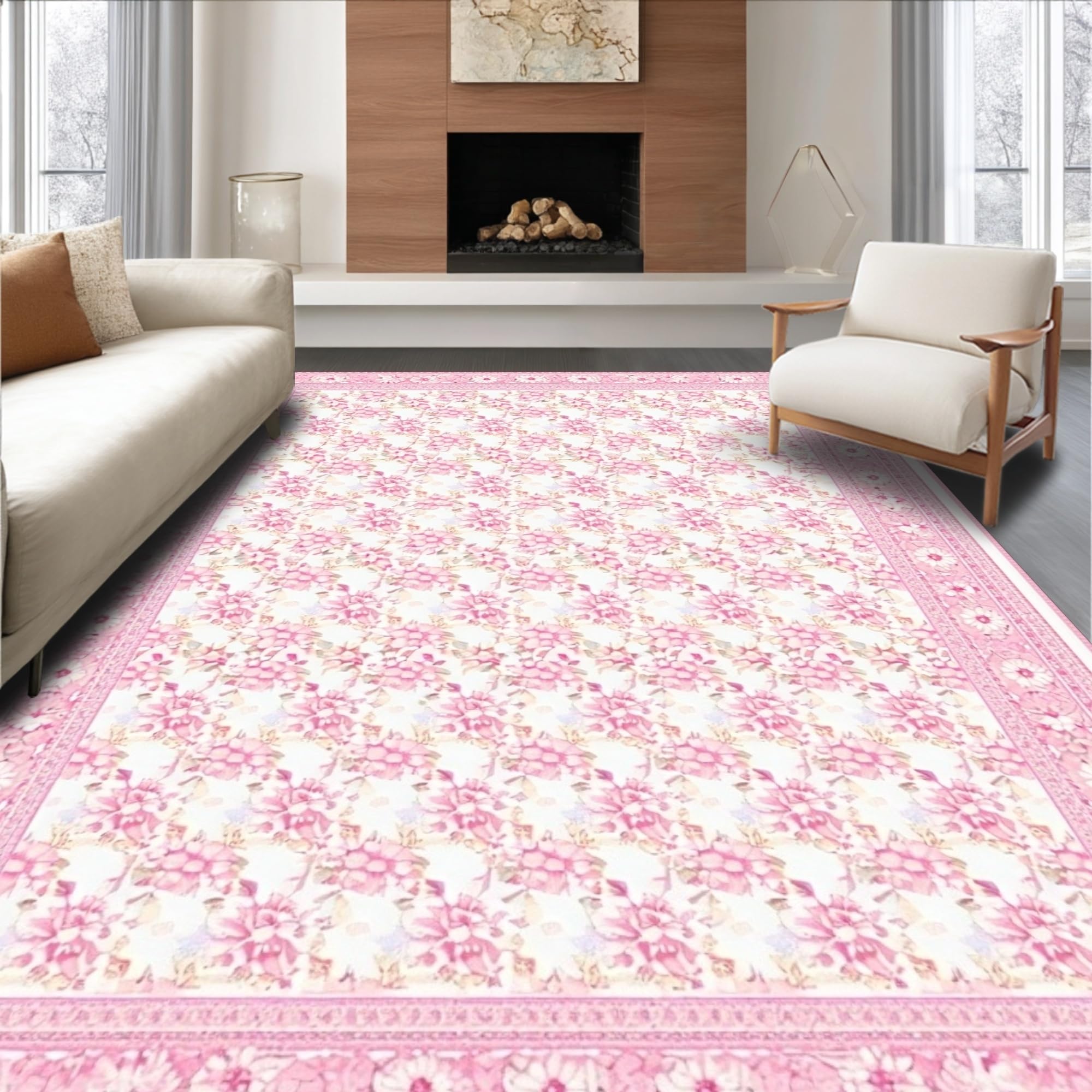 Ultra Soft Area Rug, Non Slip, Stain Resistant, Washable Area Rugs for Living Room, Bedroom, Artistic Light Pink Garden Pattern(Pink) Overview: