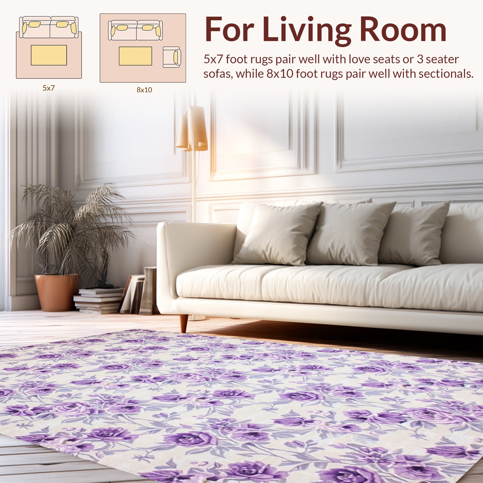 Flatwoven High Traffic Area Rug, Artistic Lilac Botanical, Non Slip, Stain Resistant, Washable Area Rugs for Living Room, Bedroom (Purple) Overview: