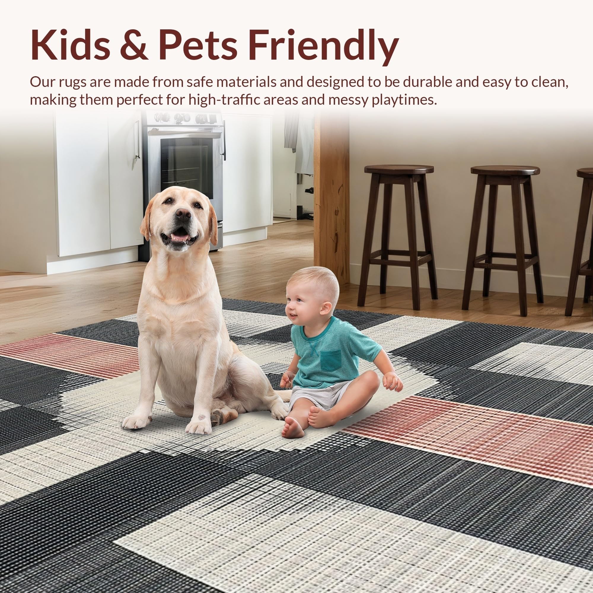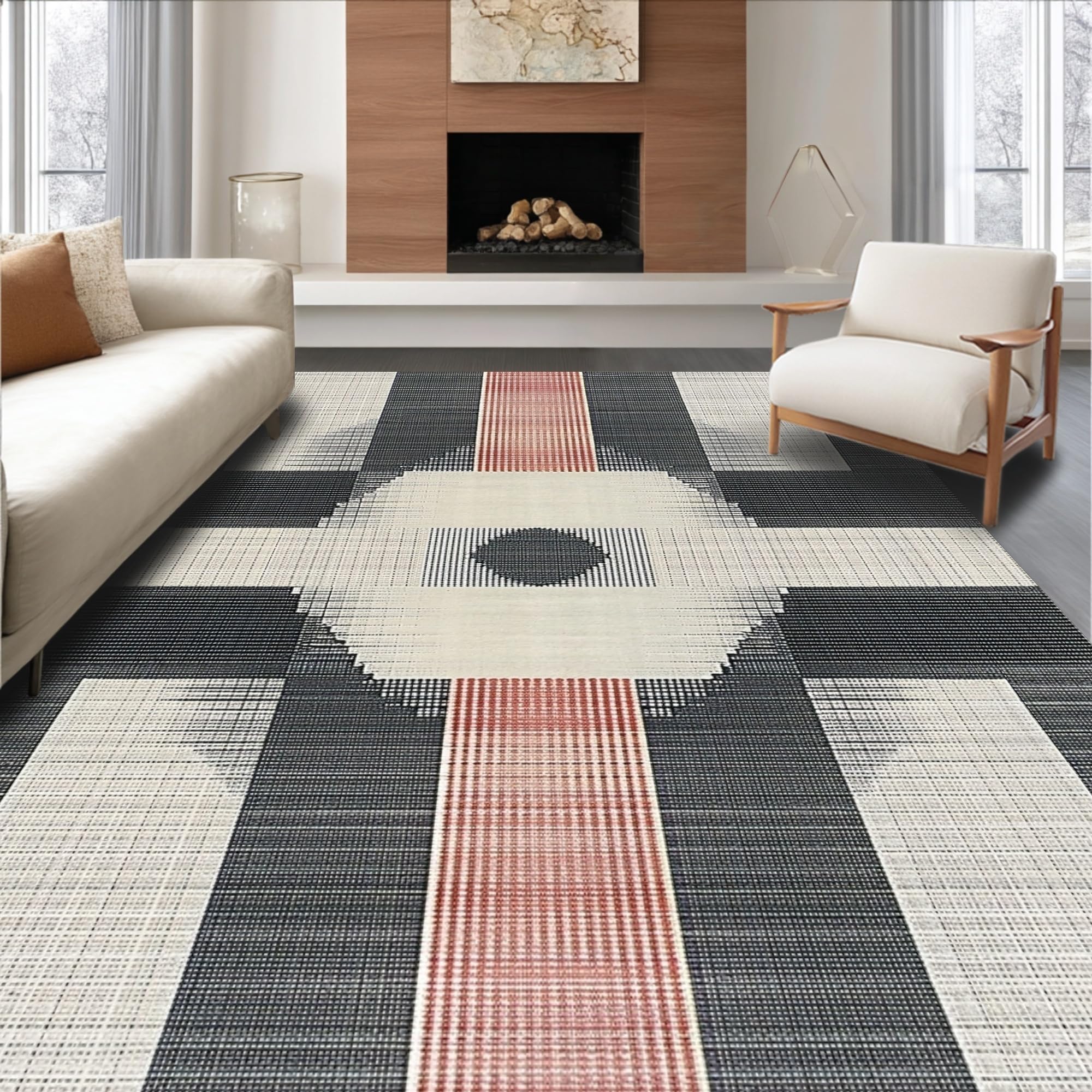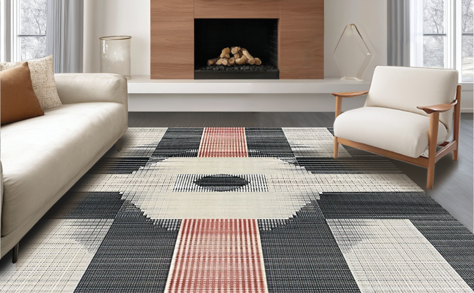 Ultra Soft Area Rug, Non Slip, Stain Resistant, Washable Area Rugs for Living Room, Bedroom, Artistic Linear Knot Design Element(Black) Overview: