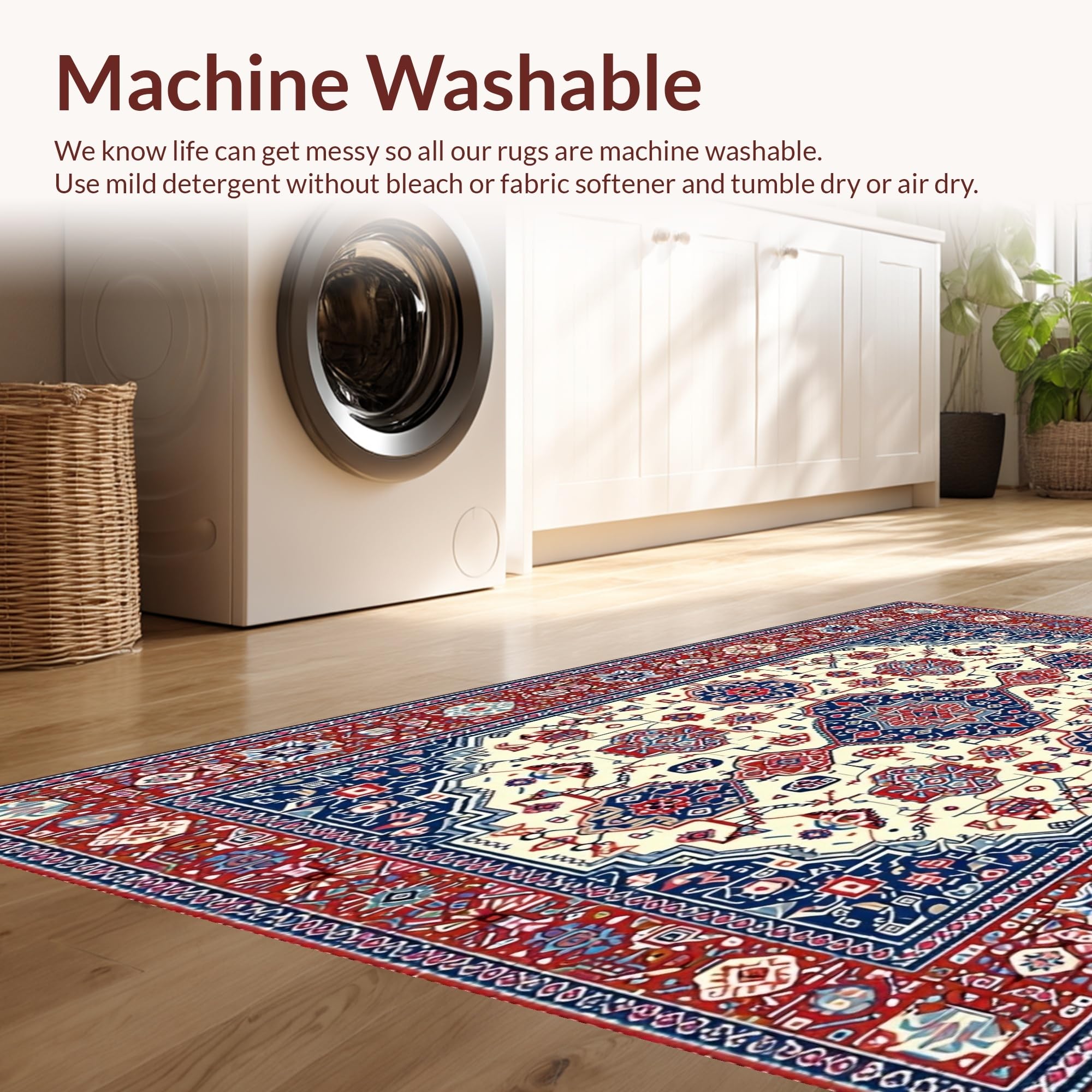 - Machine Washable: Our rugs can be easily thrown in the wash machine.