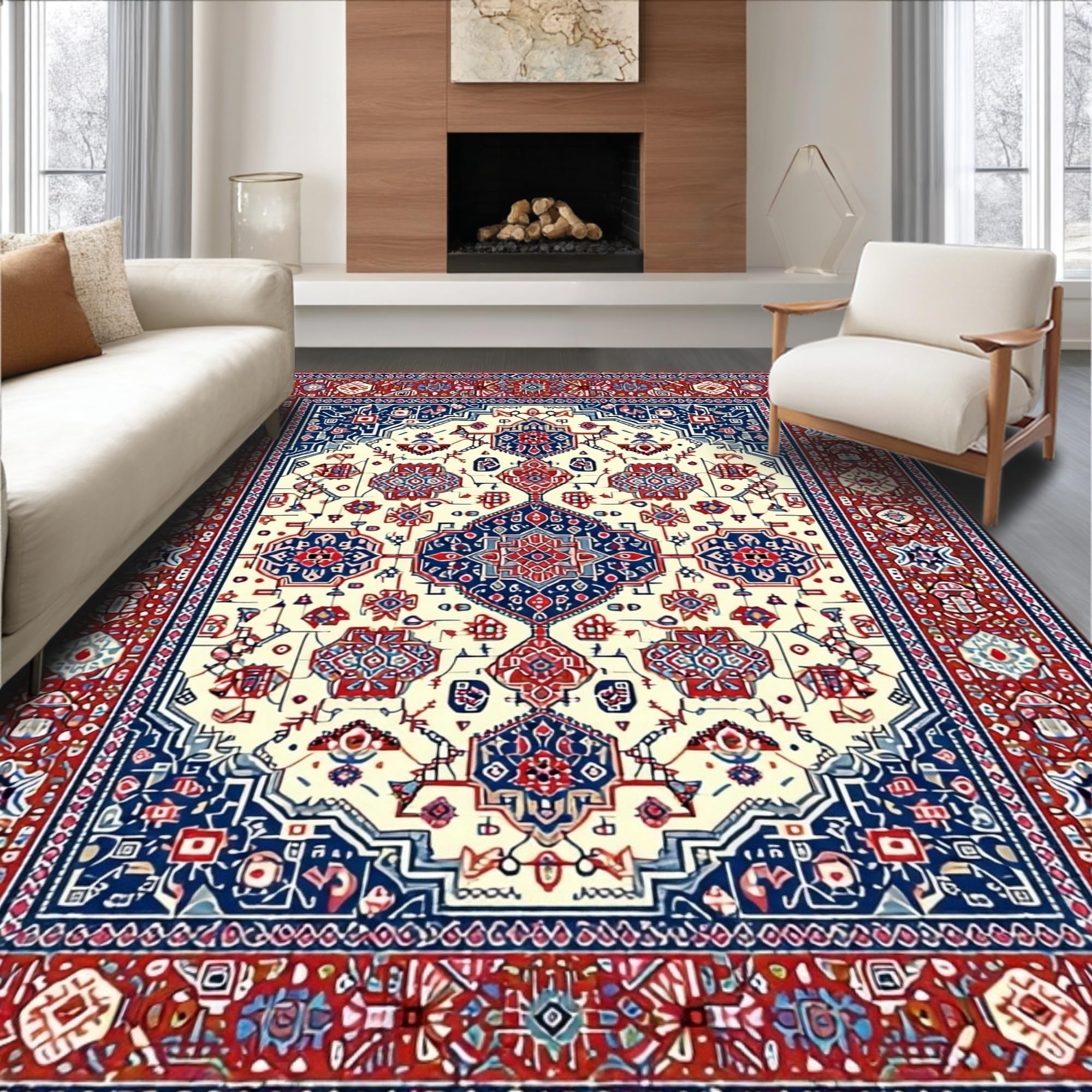 Ultra Soft Area Rug, Non Slip, Stain Resistant, Washable Area Rugs for Living Room, Bedroom, Artistic Low Pile Geometric Aesthetic(Beige) Overview: