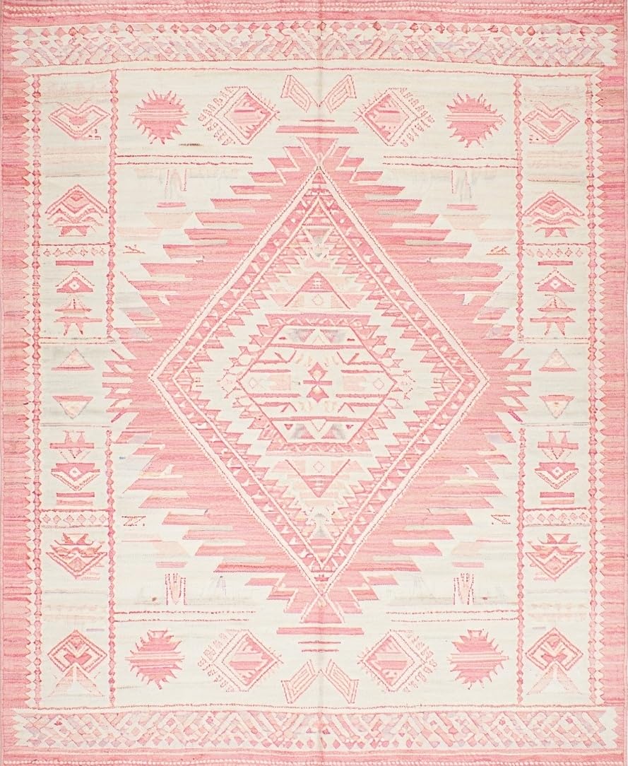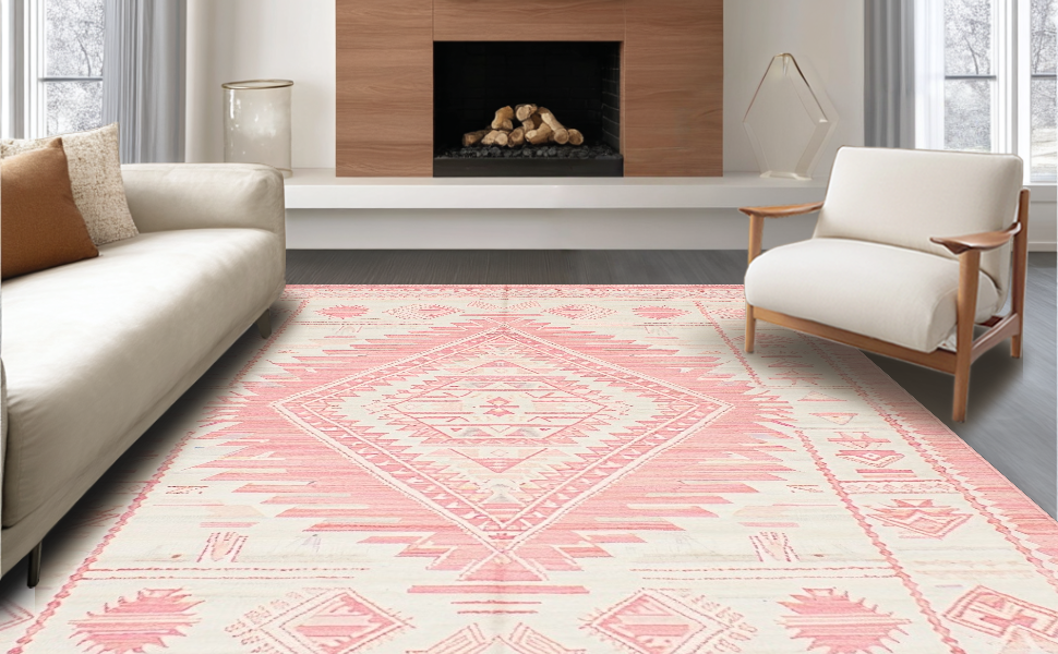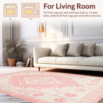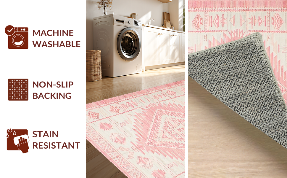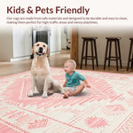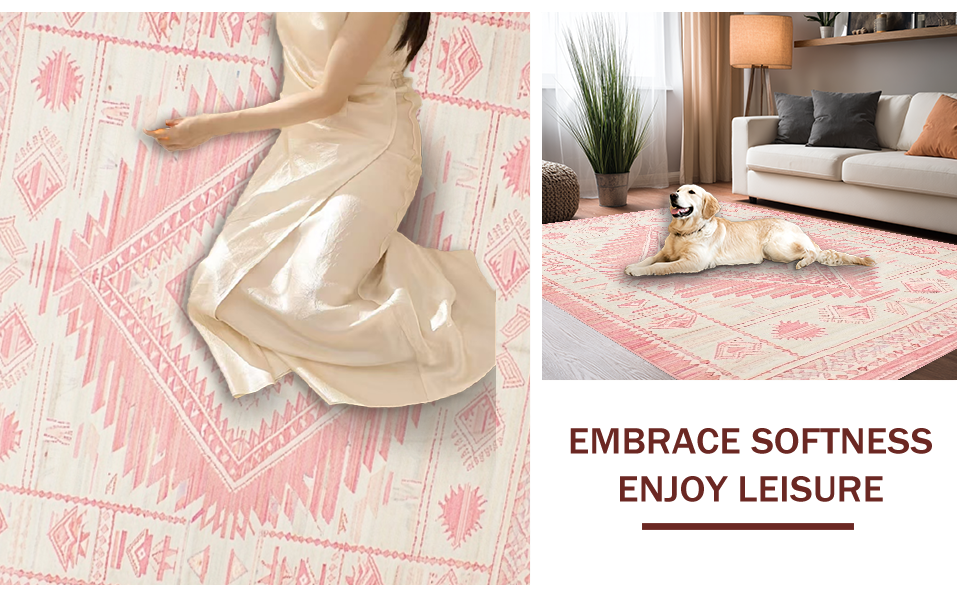 Ultra Soft Area Rug, Non Slip, Stain Resistant, Washable Area Rugs for Living Room, Bedroom, Artistic Low-Profile Tribal Motif(Pink) Overview: