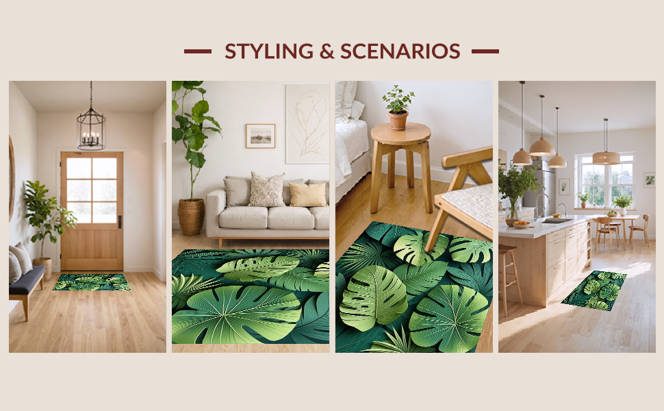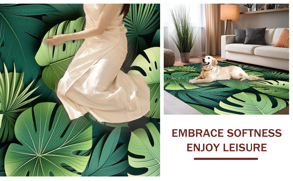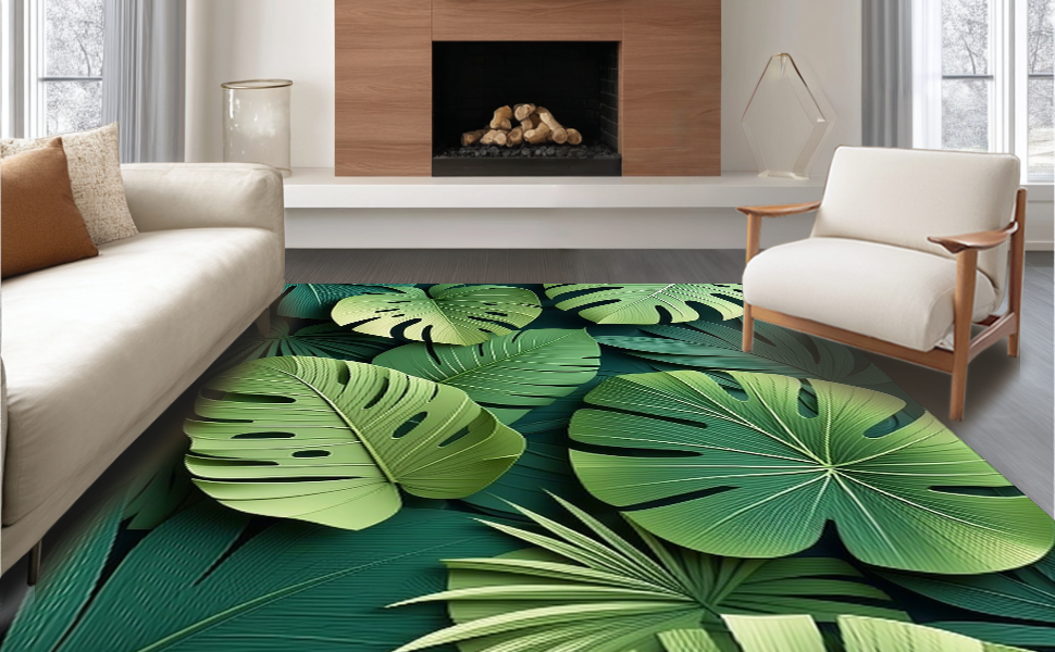 Ultra Soft Area Rug, Non Slip, Stain Resistant, Washable Area Rugs for Living Room, Bedroom, Artistic Lush Green Leaf Arrangement(Green) Overview:
