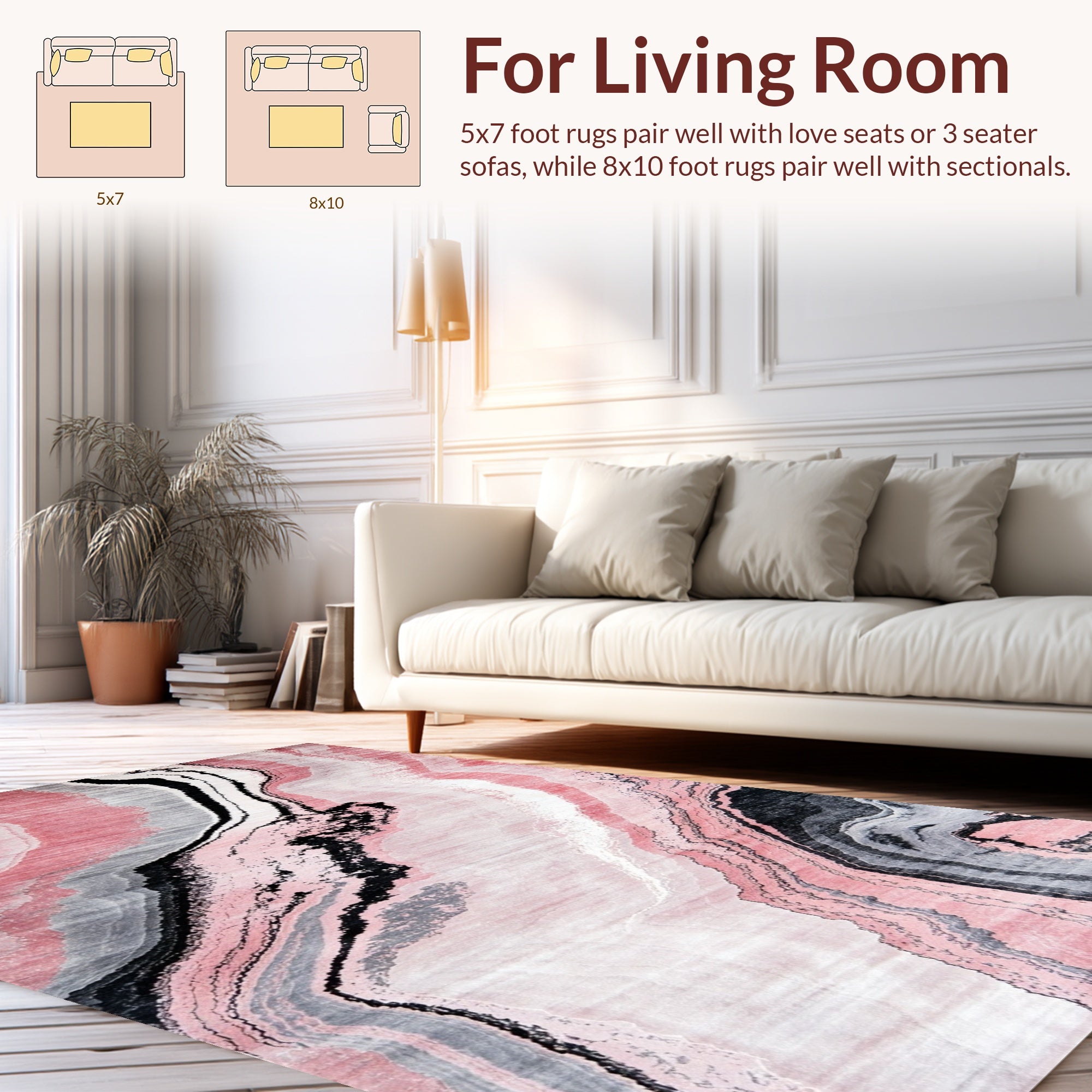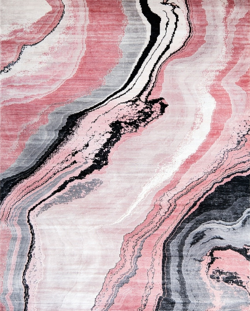 Flatwoven High Traffic Area Rug, Artistic Marble Inspired Decorative, Non Slip, Stain Resistant, Washable Area Rugs for Living Room, Bedroom (Pink) Overview: