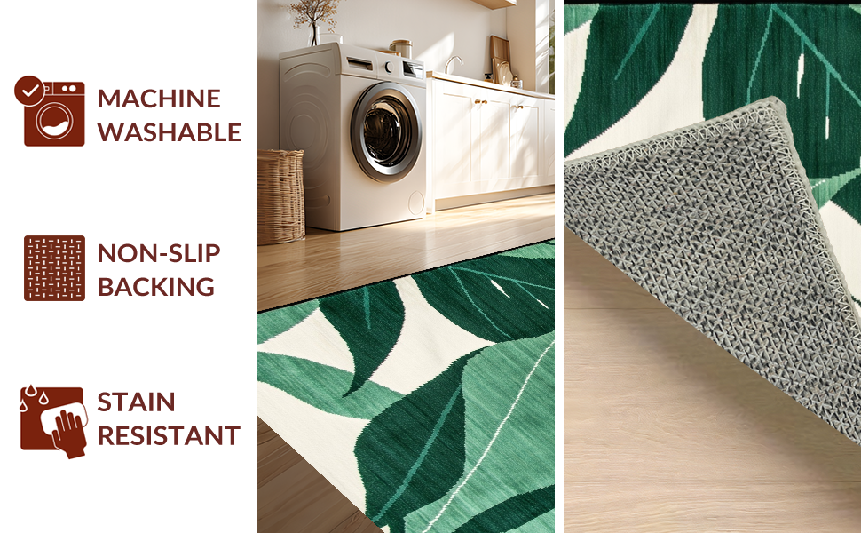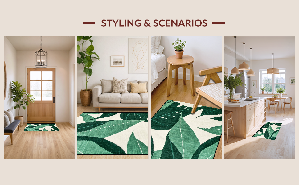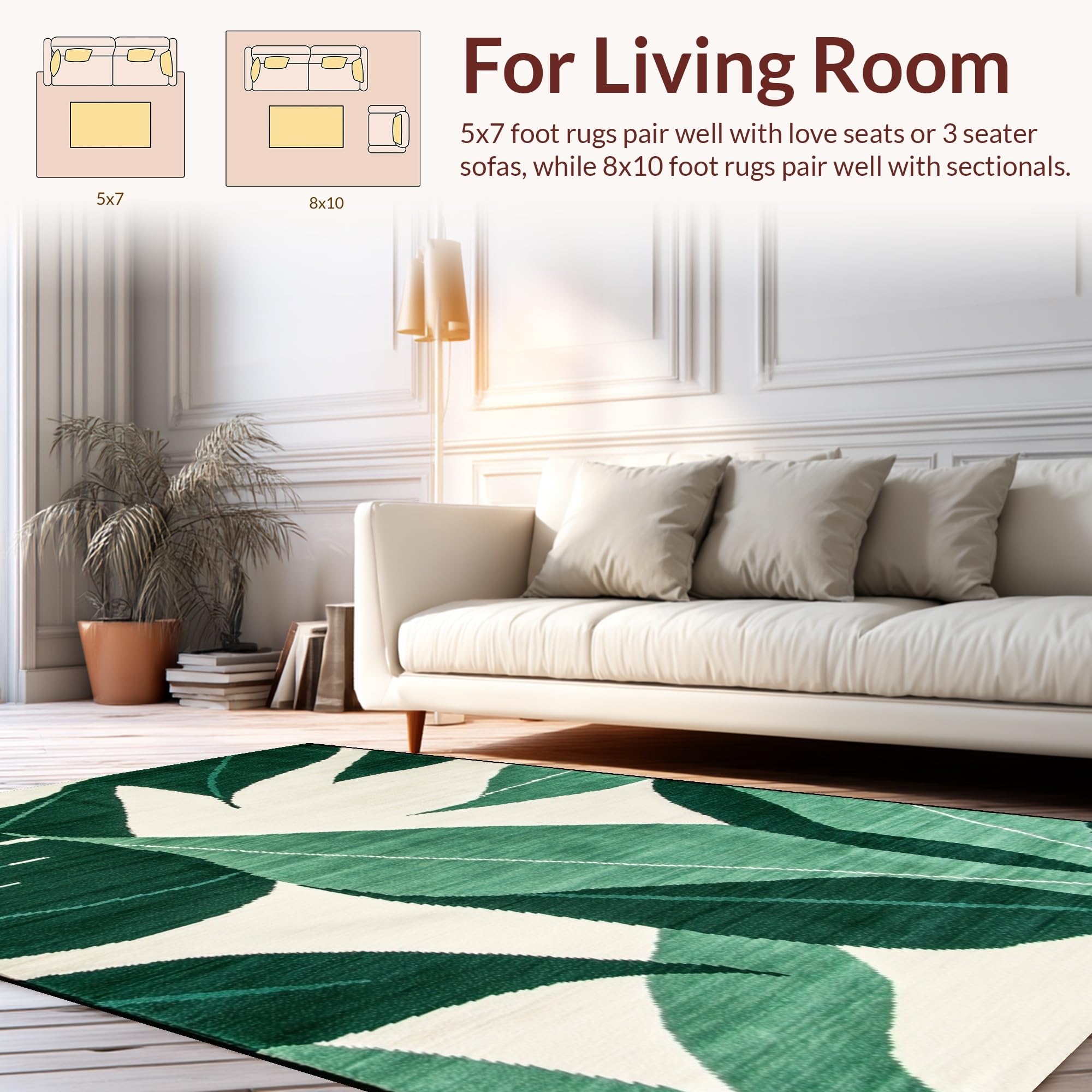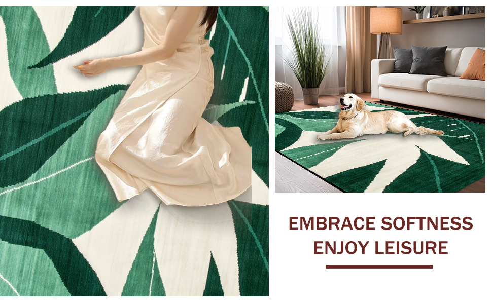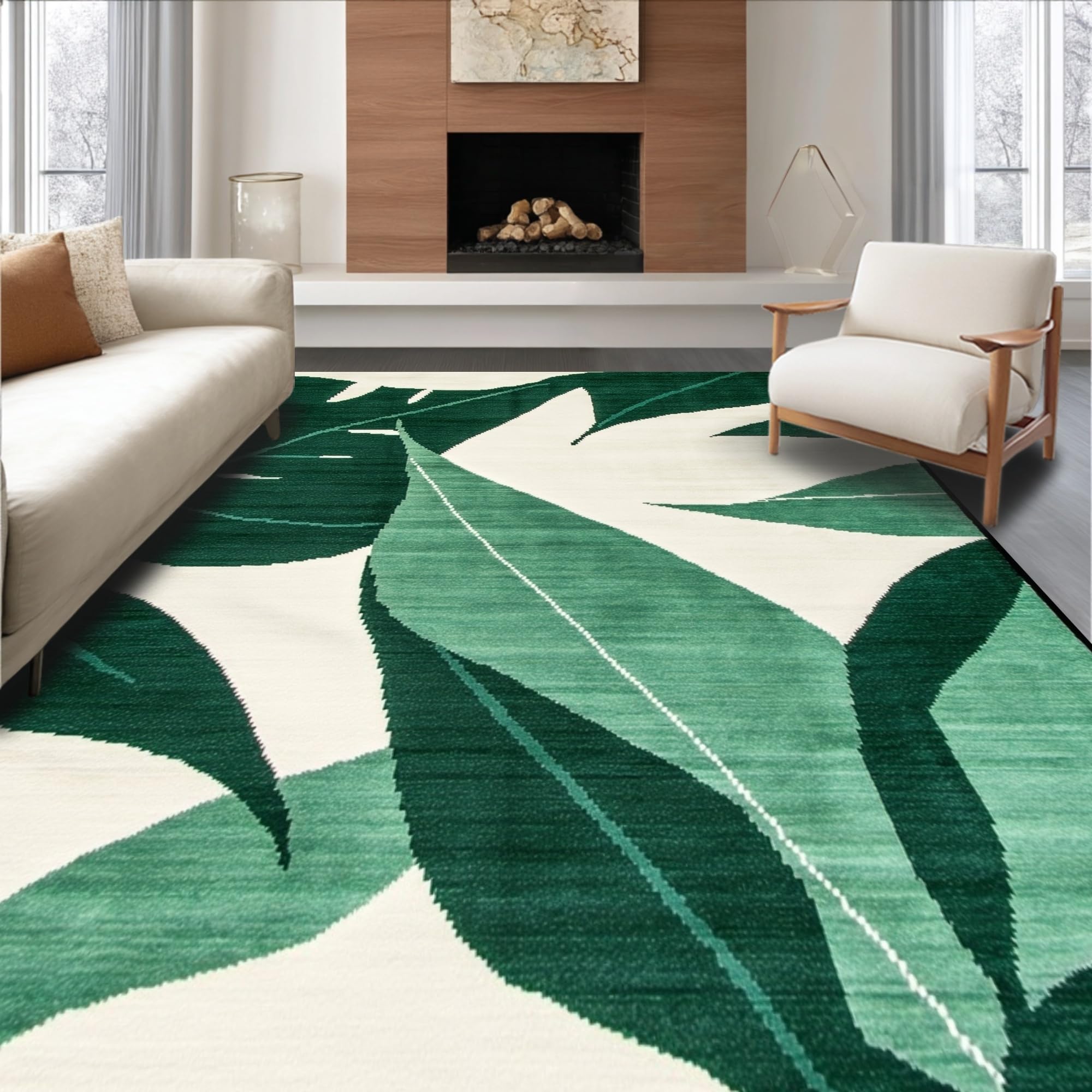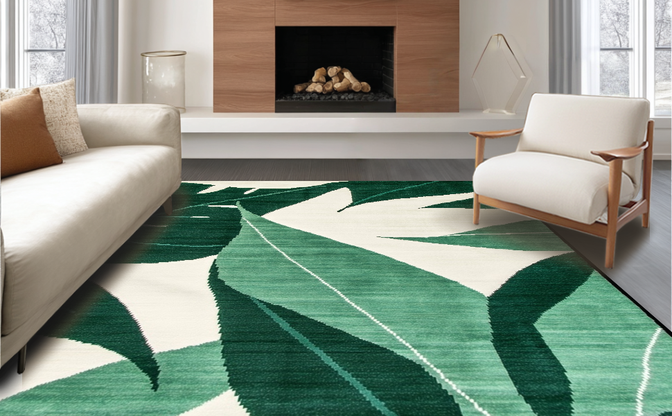 Ultra Soft Area Rug, Non Slip, Stain Resistant, Washable Area Rugs for Living Room, Bedroom, Artistic Minimalist Nature Pattern(Green) Overview: