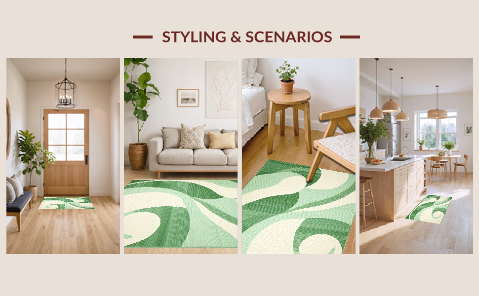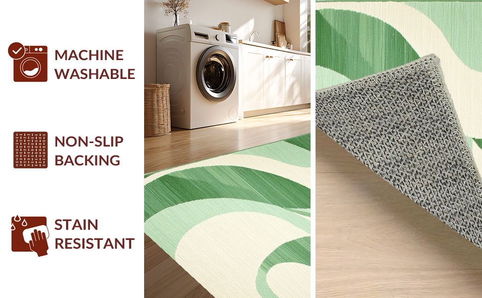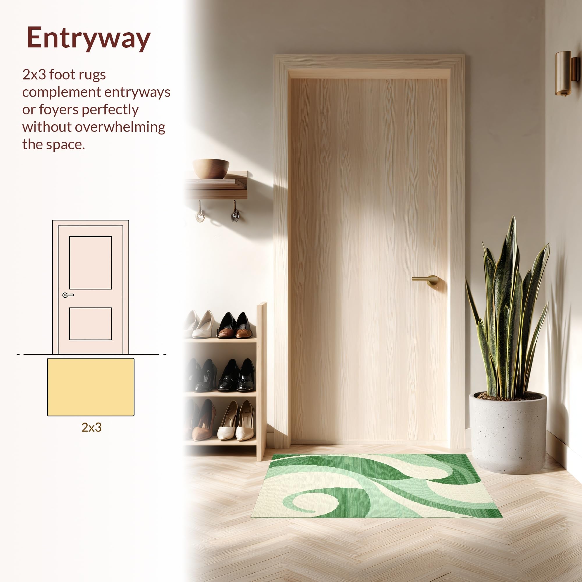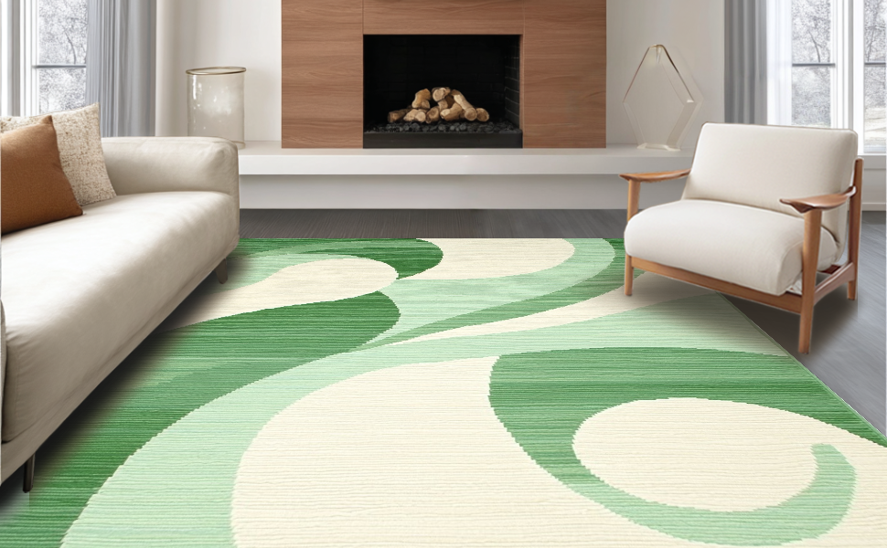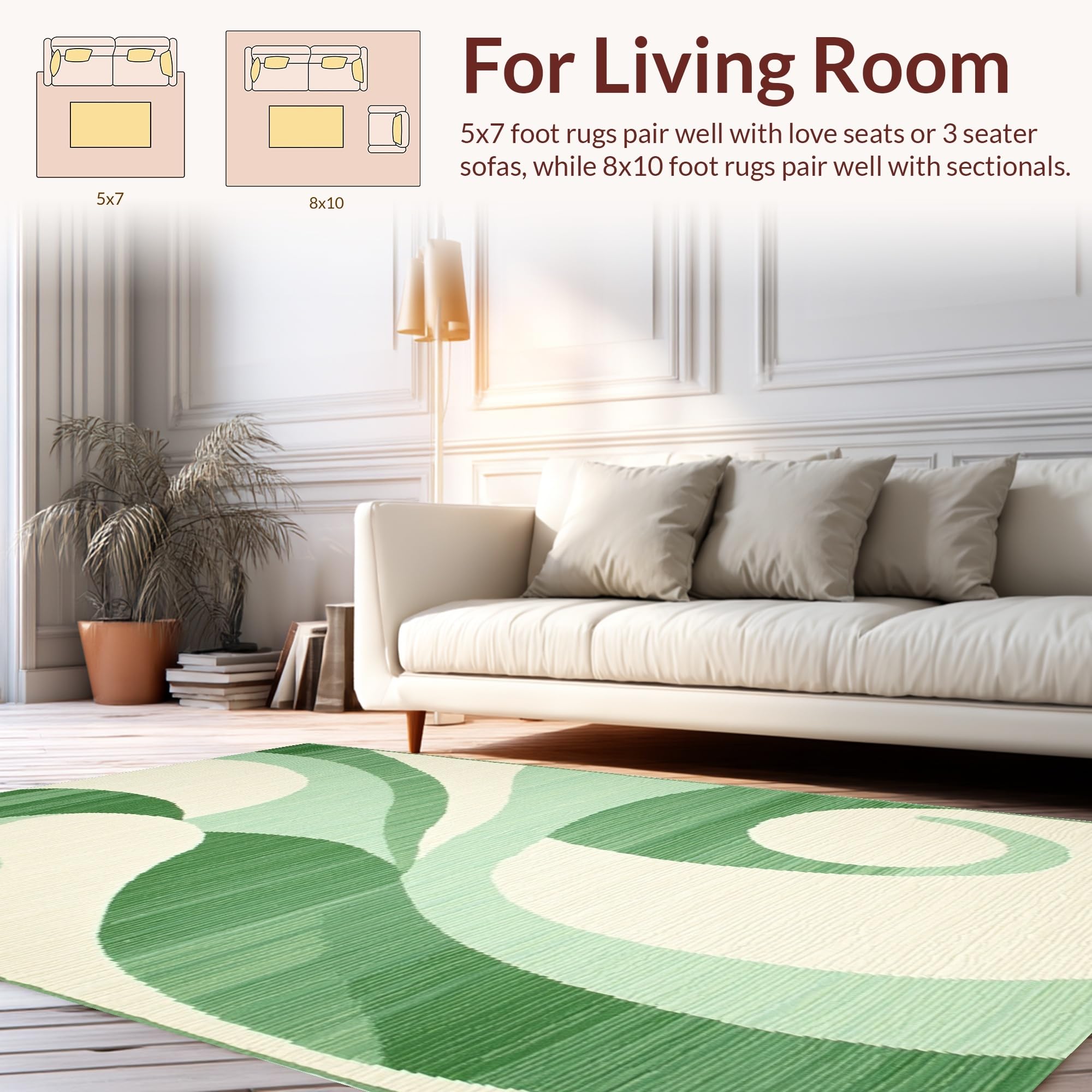 Ultra Soft Area Rug, Non Slip, Stain Resistant, Washable Area Rugs for Living Room, Bedroom, Artistic Minimalist Textured Pattern(Green) Overview: