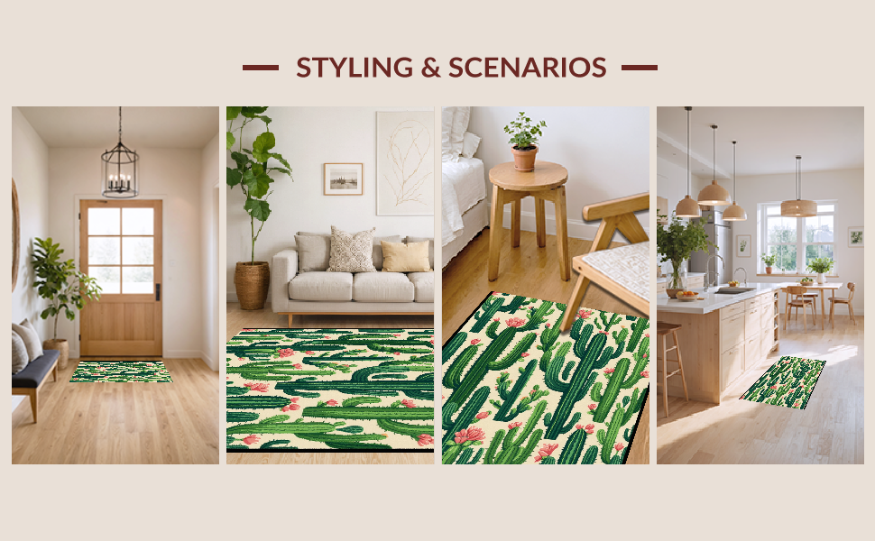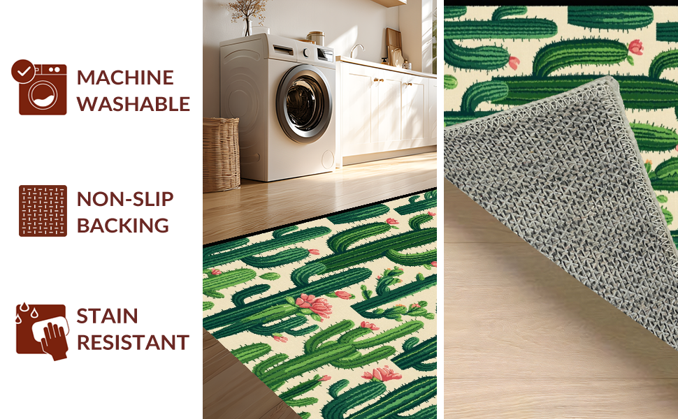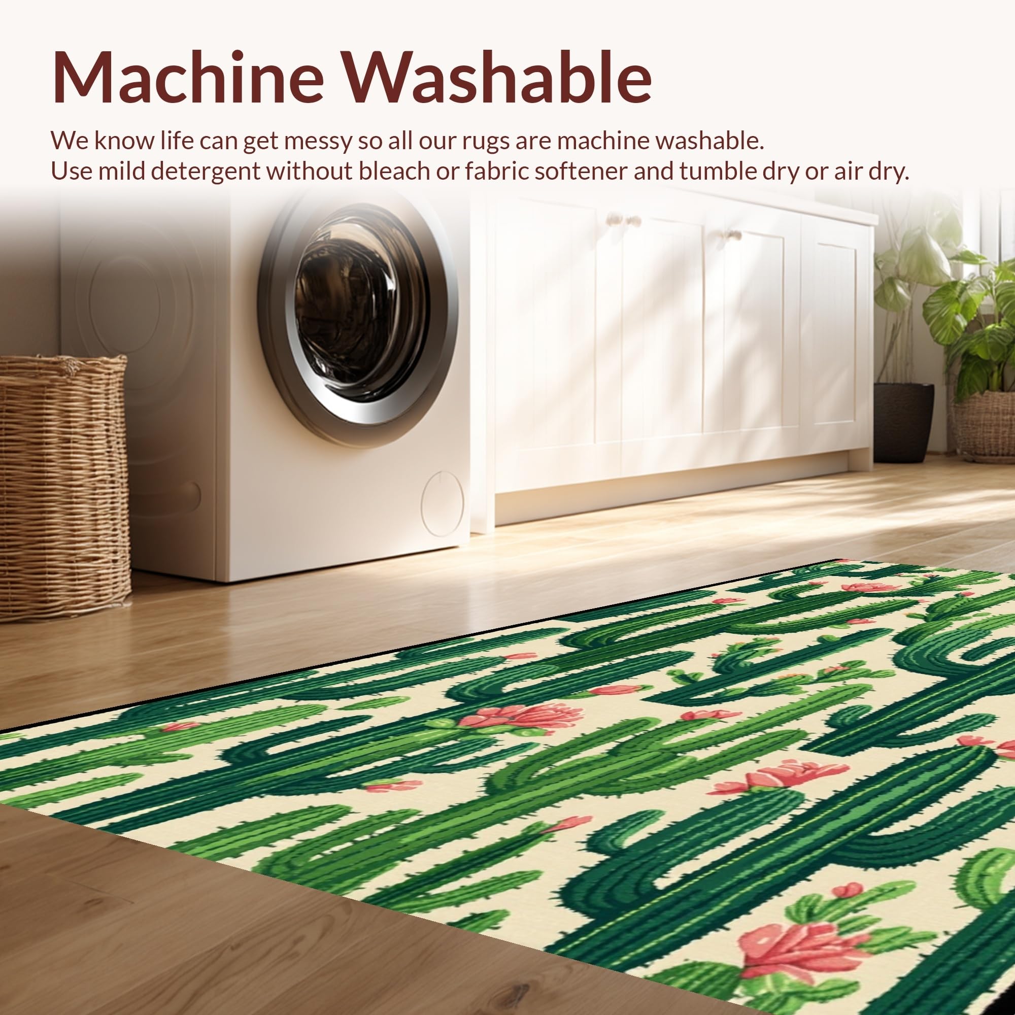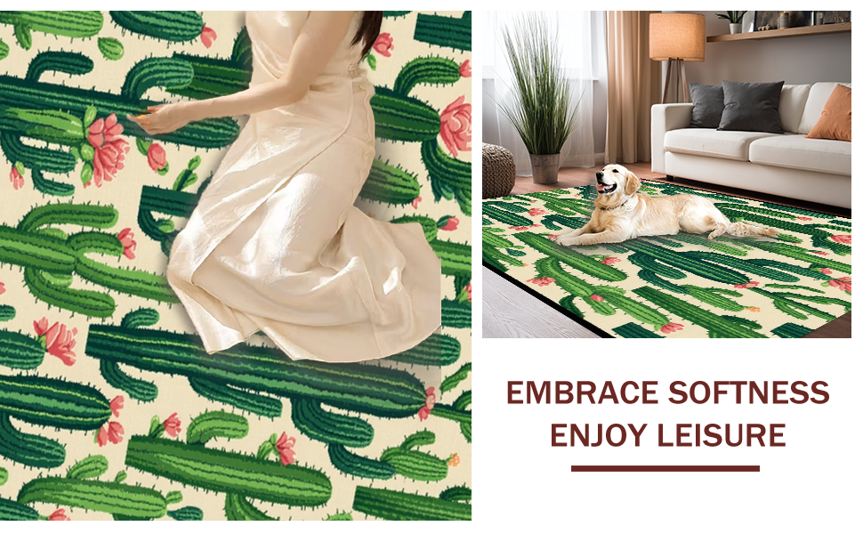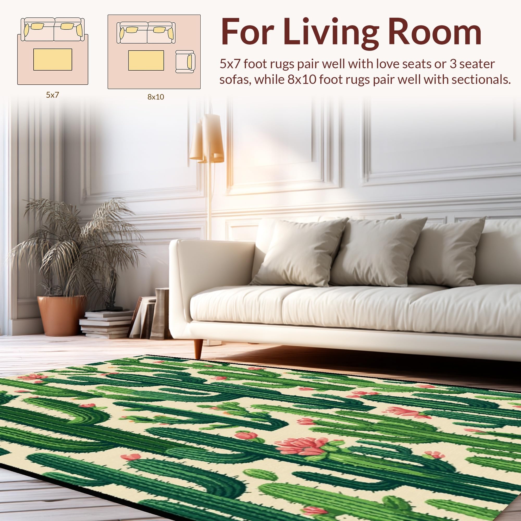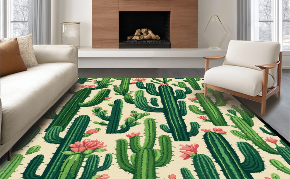 Ultra Soft Area Rug, Non Slip, Stain Resistant, Washable Area Rugs for Living Room, Bedroom, Artistic Modern Cactus Artwork(Green) Overview: