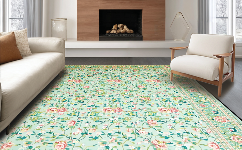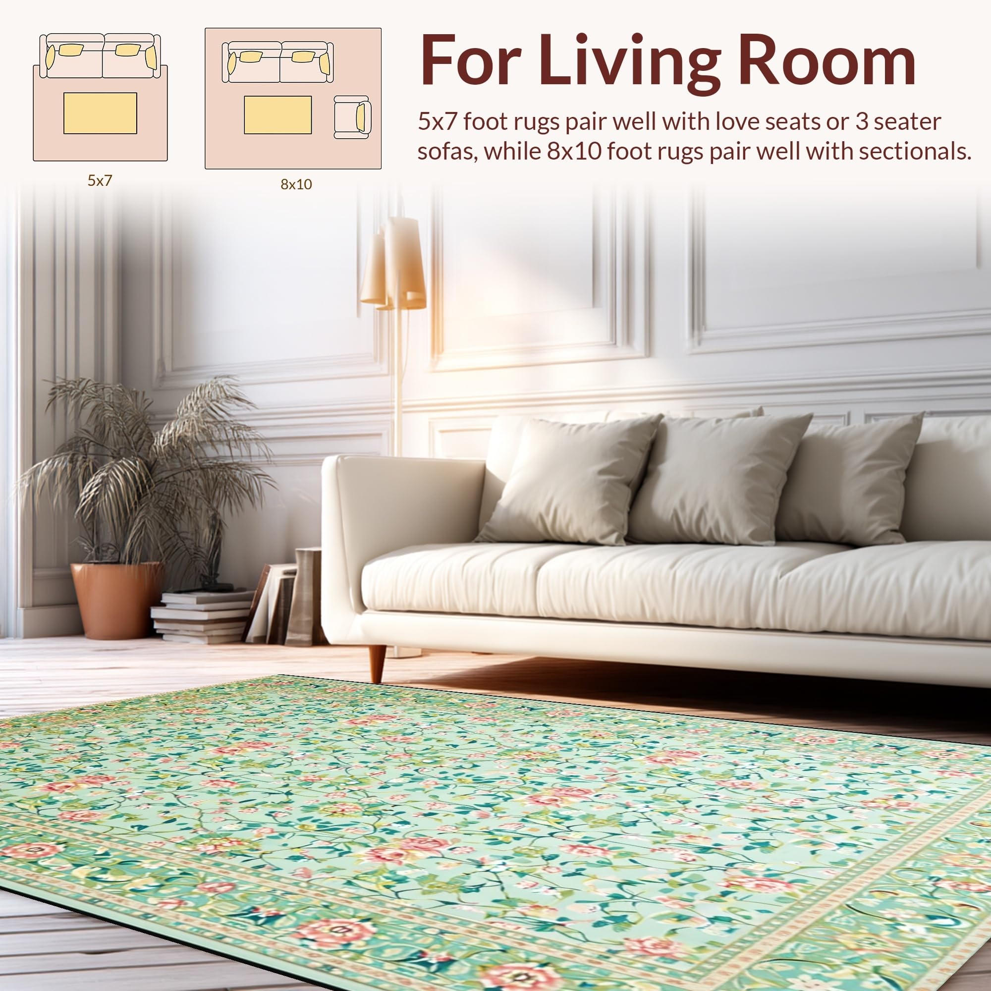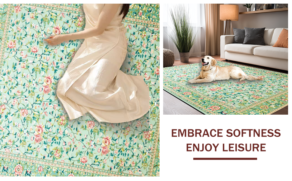 Ultra Soft Area Rug, Non Slip, Stain Resistant, Washable Area Rugs for Living Room, Bedroom, Artistic Modern Nature-Inspired Design(Green) Overview: