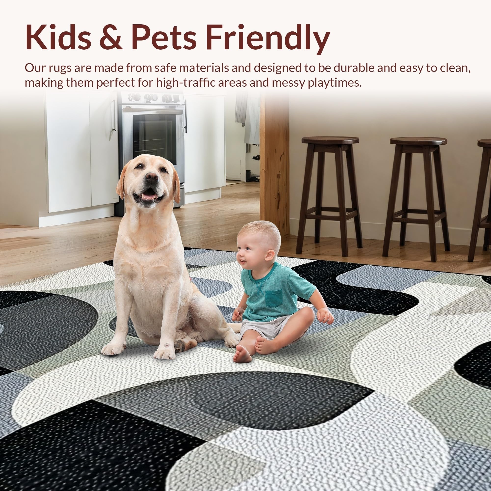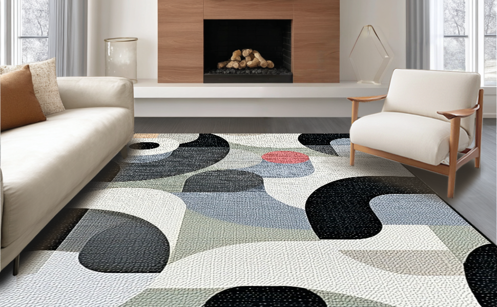 Ultra Soft Area Rug, Non Slip, Stain Resistant, Washable Area Rugs for Living Room, Bedroom, Artistic Modern Swirl Motif(Gray) Overview: