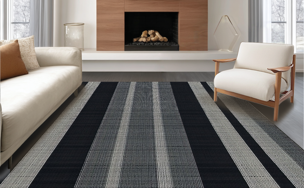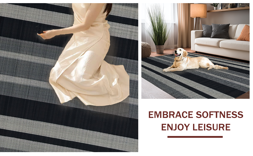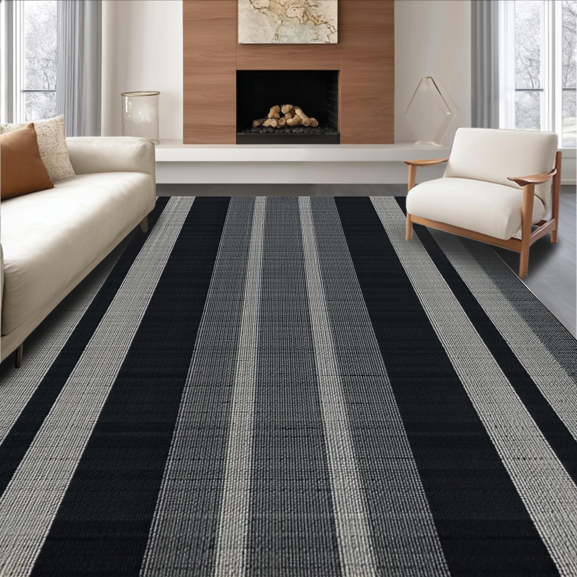 Ultra Soft Area Rug, Non Slip, Stain Resistant, Washable Area Rugs for Living Room, Bedroom, Artistic Modern Textured Overlay(Black) Overview: