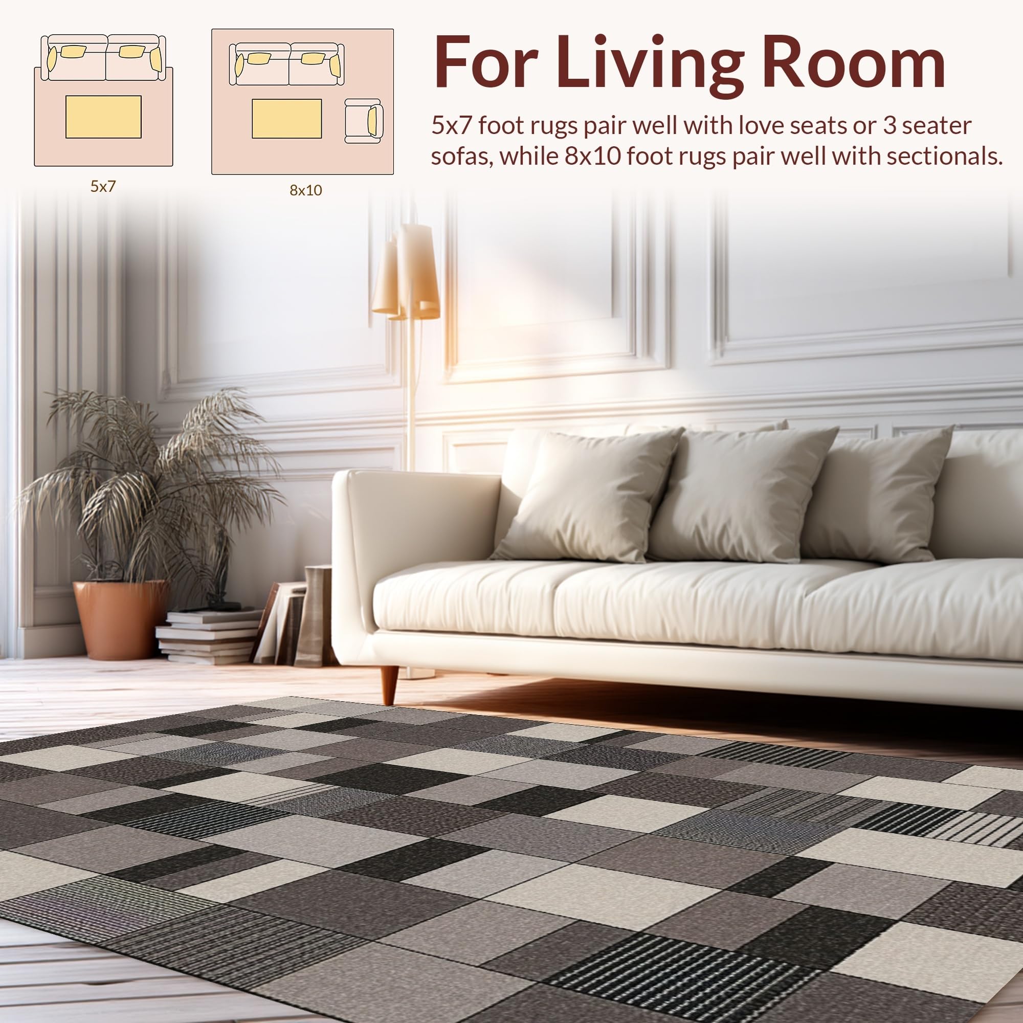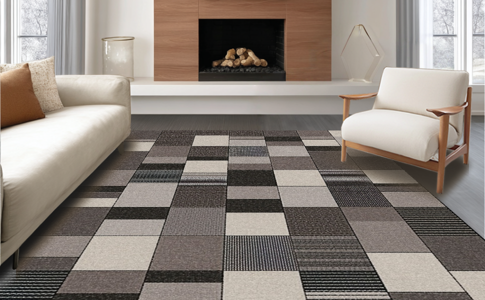 Ultra Soft Area Rug, Non Slip, Stain Resistant, Washable Area Rugs for Living Room, Bedroom, Artistic Modernist Geometric Touch(Gray) Overview: