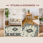 Ultra Soft Area Rug, Non Slip, Stain Resistant, Washable Area Rugs for Living Room, Bedroom, Artistic Monochrome Flower Arrangement(Ivory) Overview: