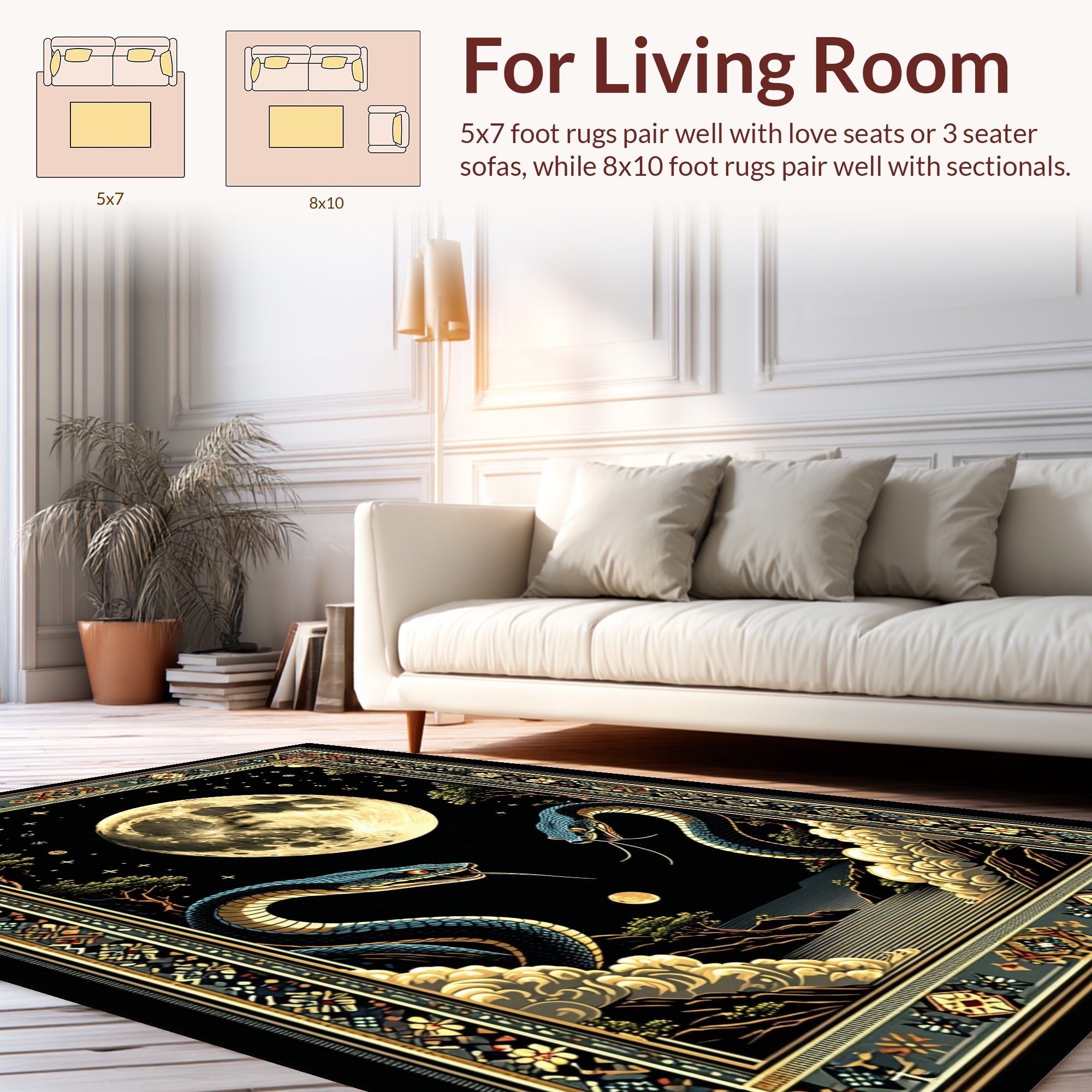 Flatwoven High Traffic Area Rug, Artistic Monochrome Snake Illustration, Non Slip, Stain Resistant, Washable Area Rugs for Living Room, Bedroom (Black) Overview: