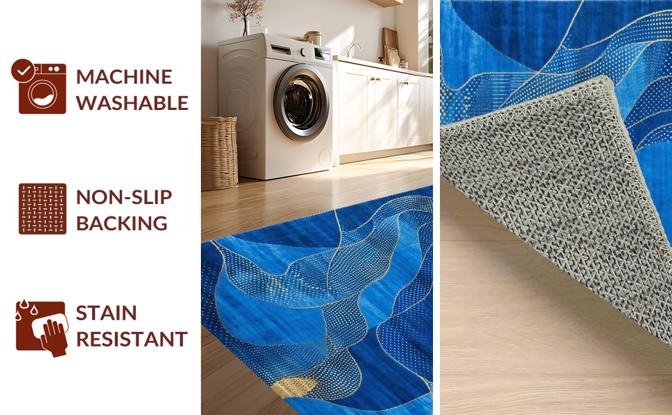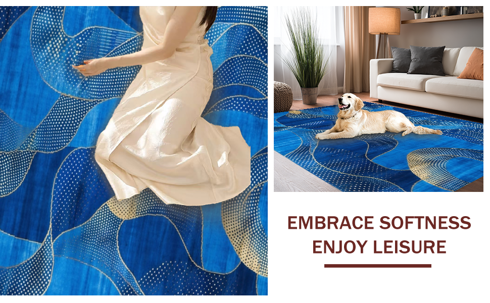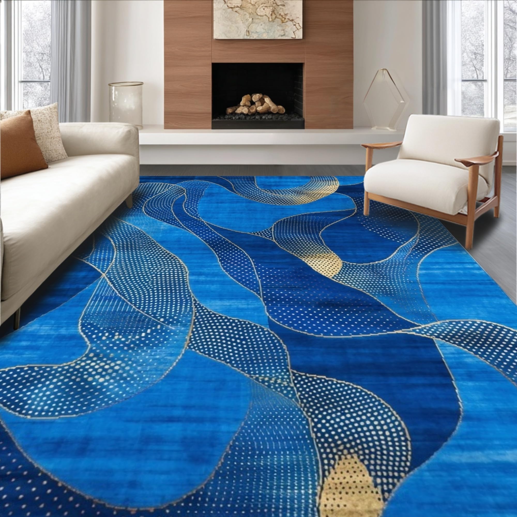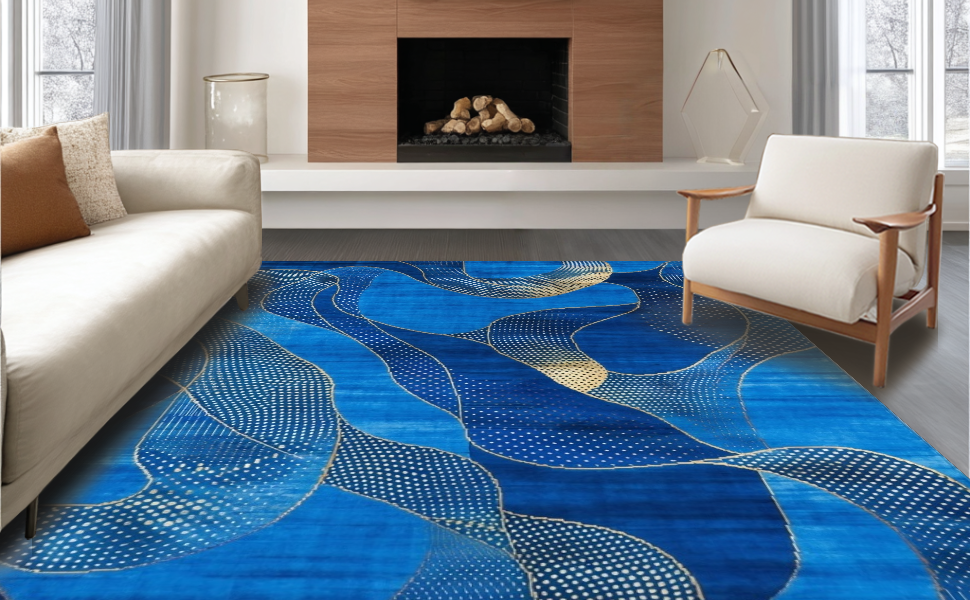Ultra Soft Area Rug, Non Slip, Stain Resistant, Washable Area Rugs for Living Room, Bedroom, Artistic Multi-Hued Wave Pattern(Blue) Overview: