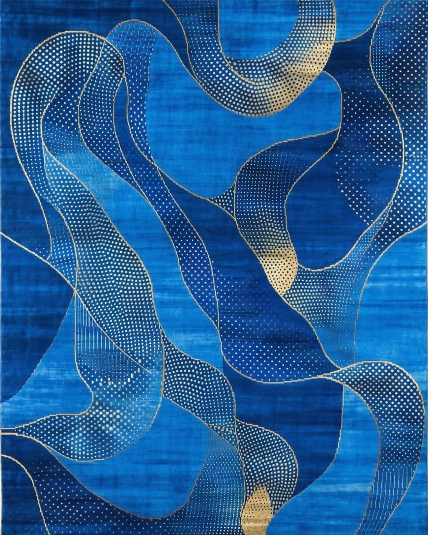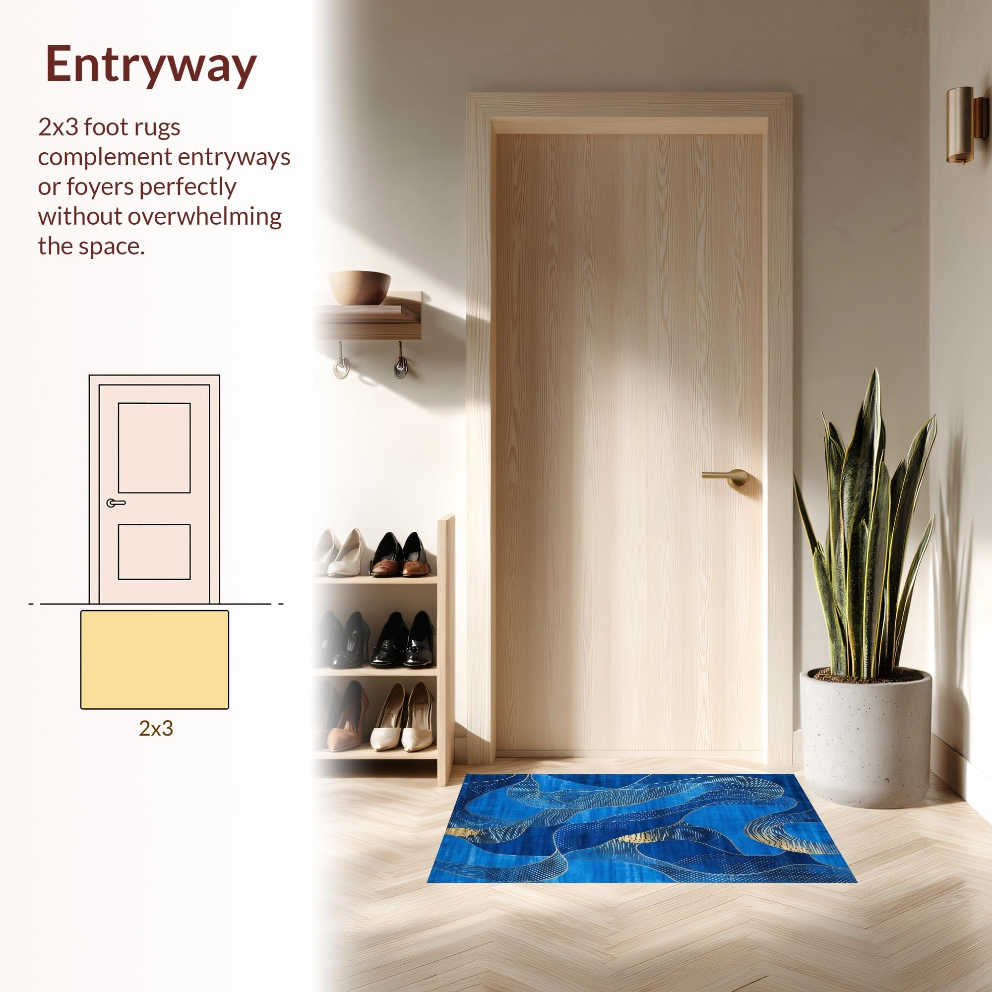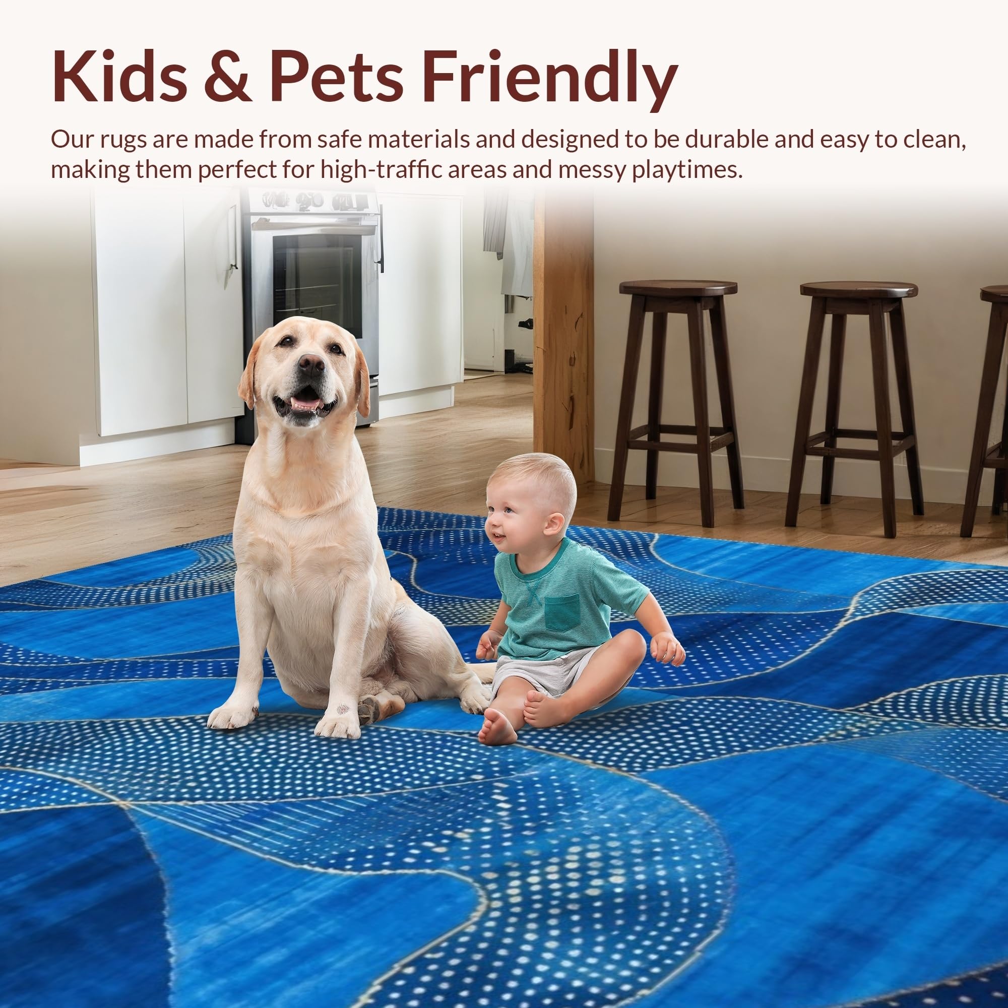 Ultra Soft Area Rug, Non Slip, Stain Resistant, Washable Area Rugs for Living Room, Bedroom, Artistic Multi-Hued Wave Pattern(Blue) Overview: