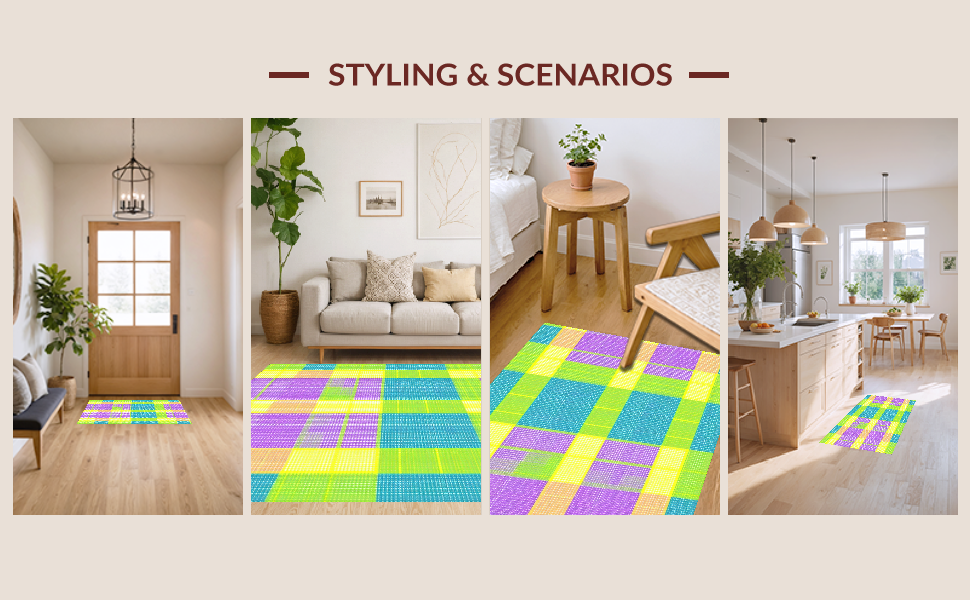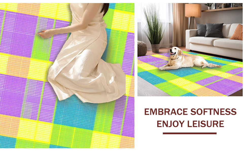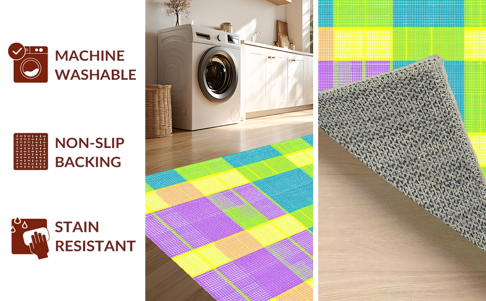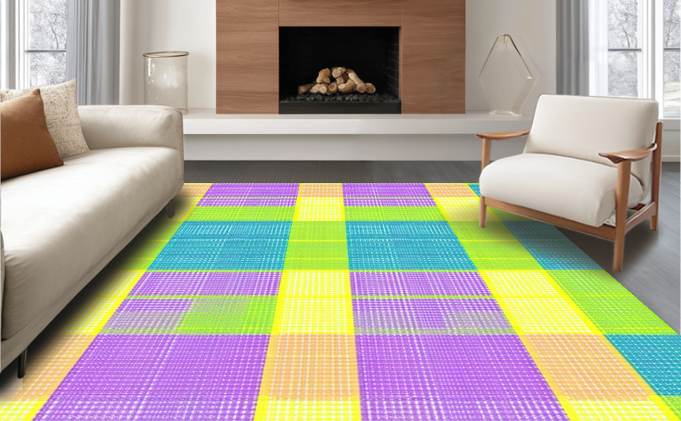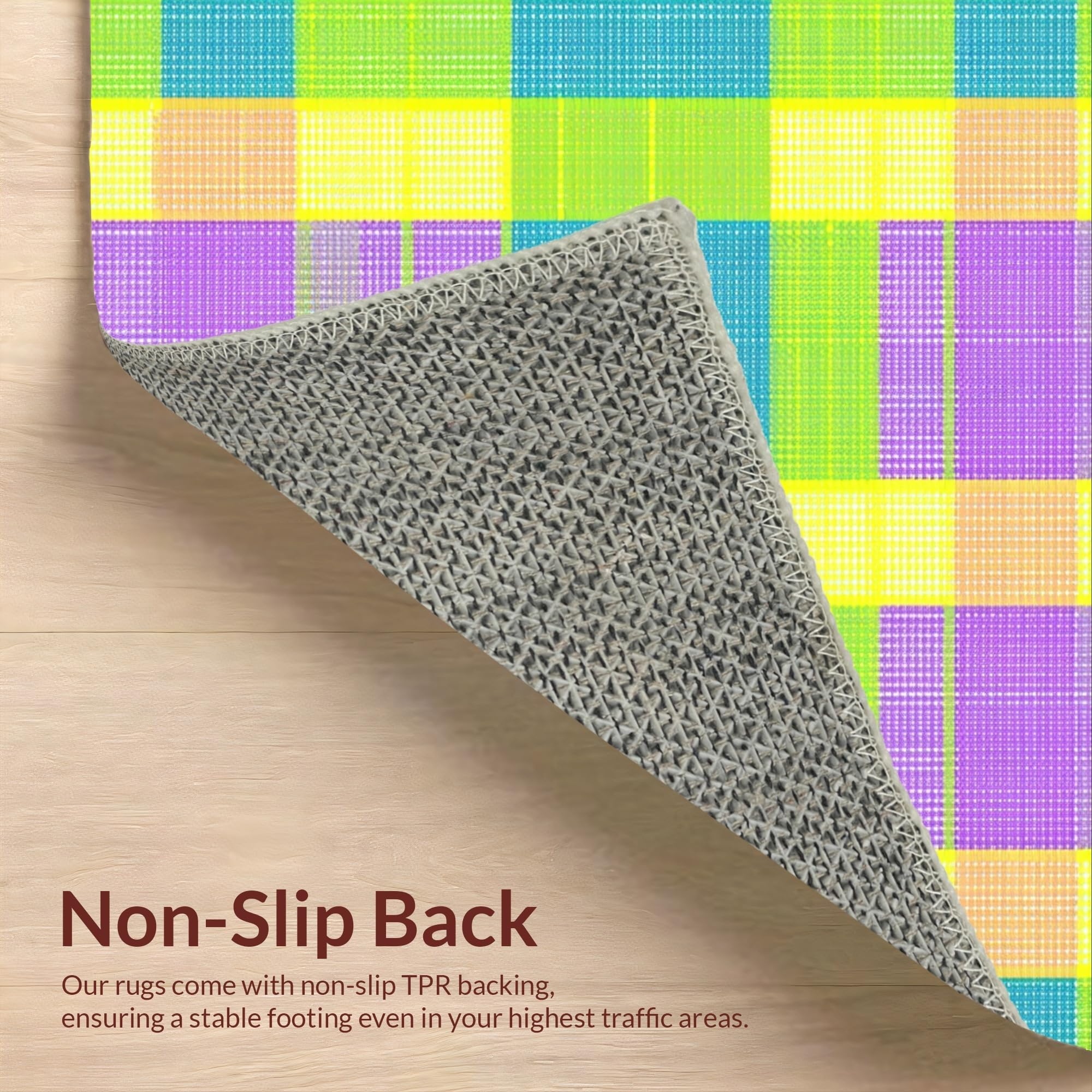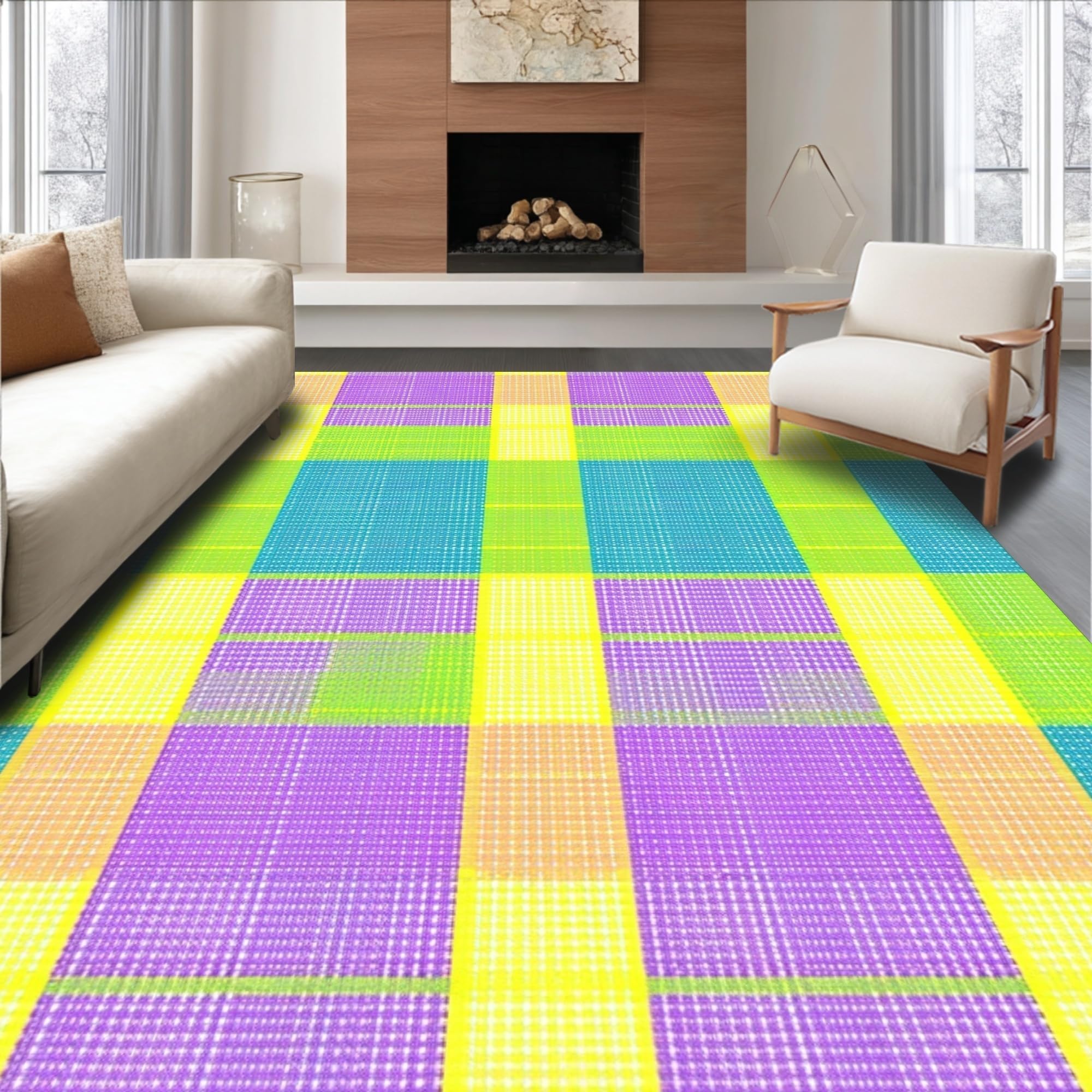 Ultra Soft Area Rug, Non Slip, Stain Resistant, Washable Area Rugs for Living Room, Bedroom, Artistic Multicolored Checkered Composition(Yellow) Overview: