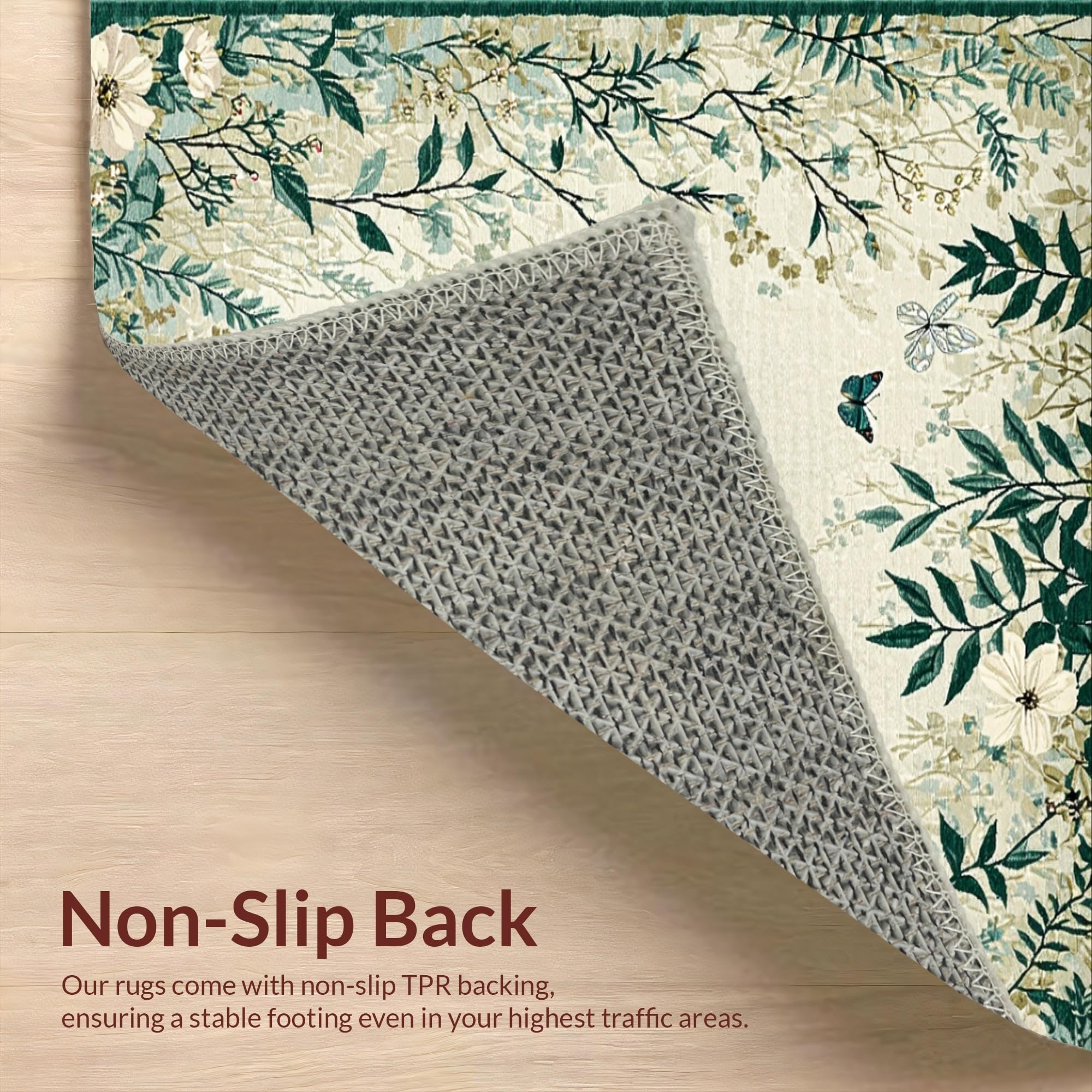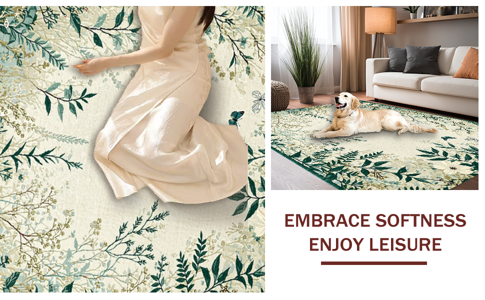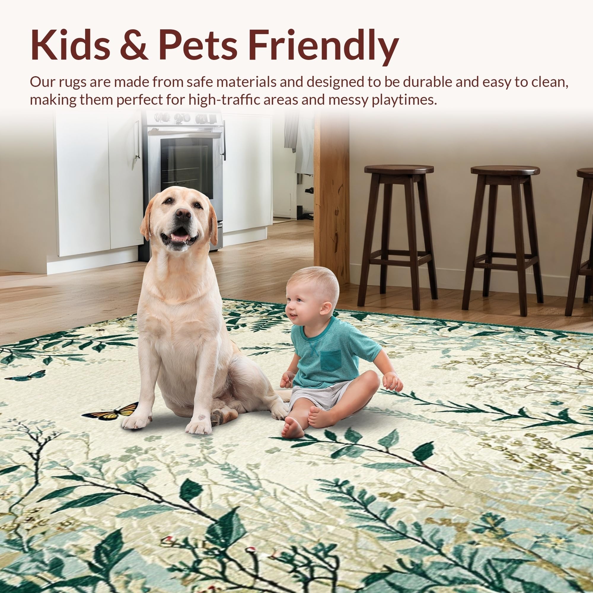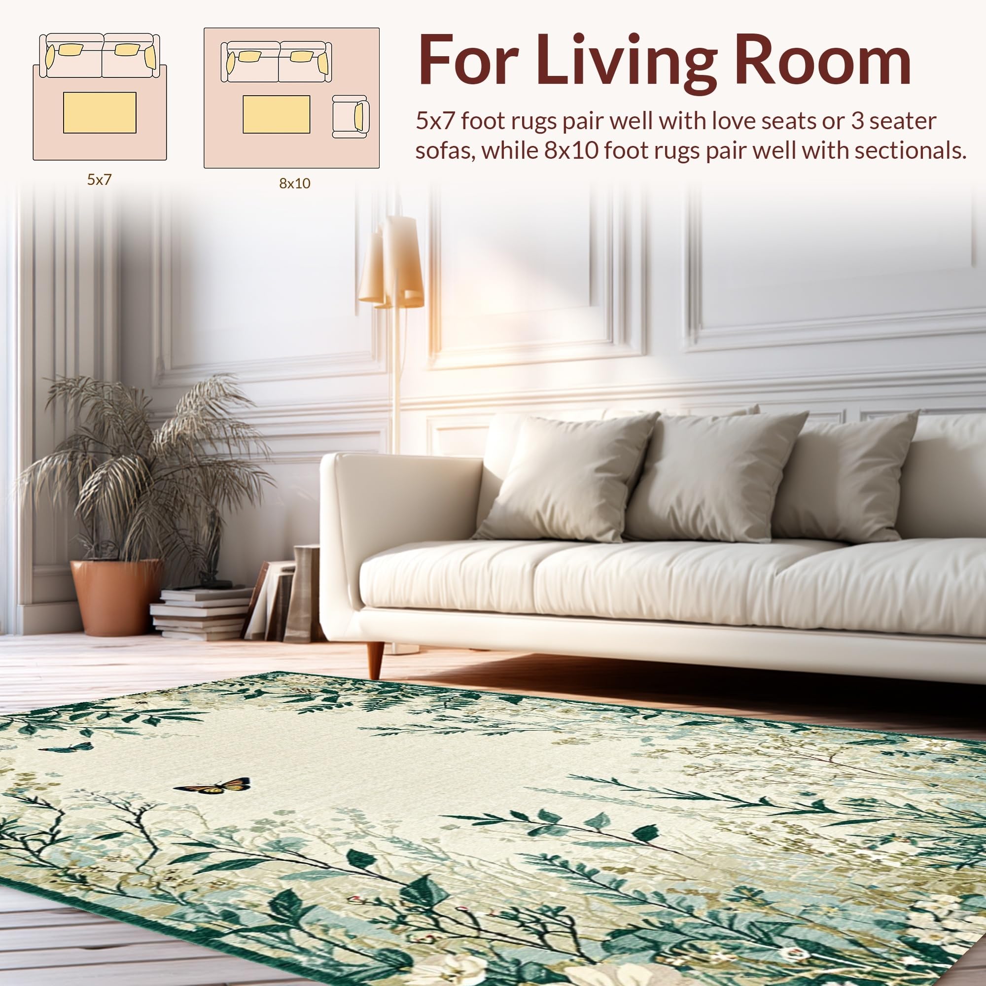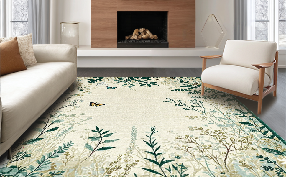 Ultra Soft Area Rug, Non Slip, Stain Resistant, Washable Area Rugs for Living Room, Bedroom, Artistic Mushroom and Flower Arrangement(Beige) Overview: