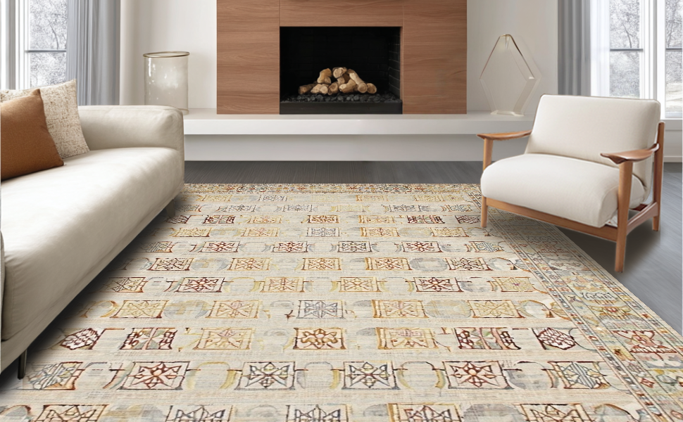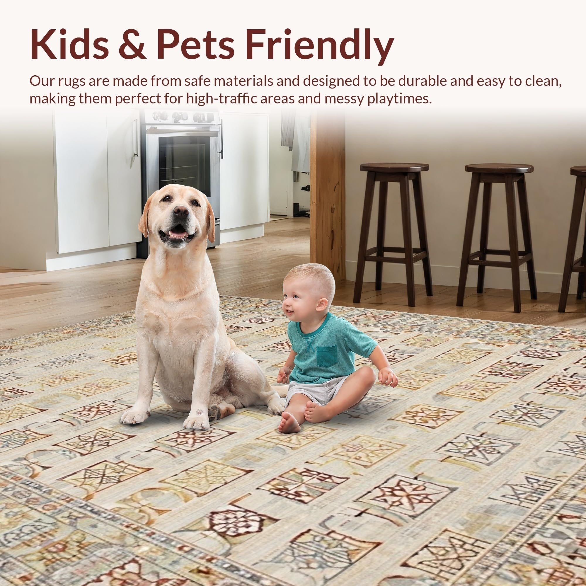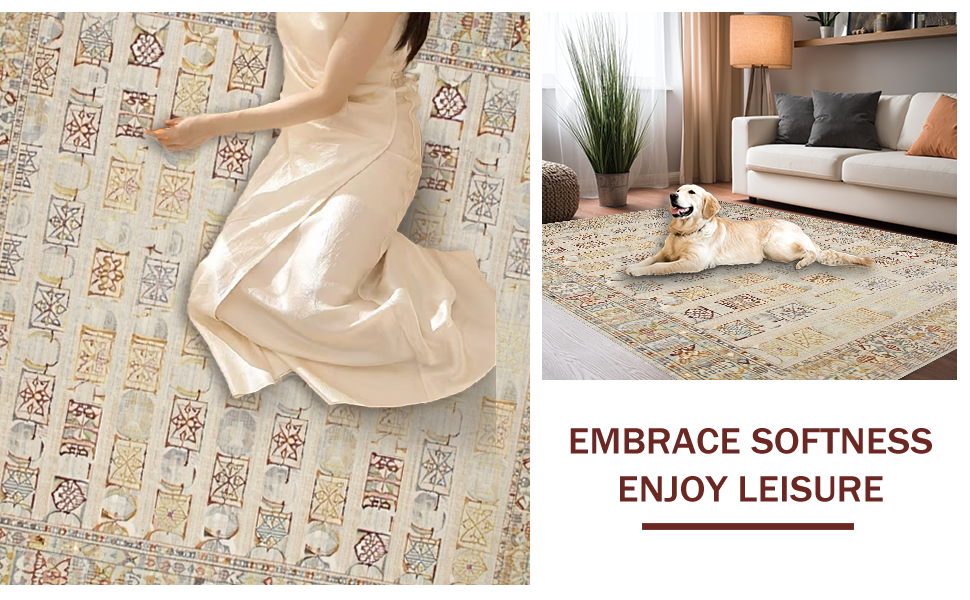 Ultra Soft Area Rug, Non Slip, Stain Resistant, Washable Area Rugs for Living Room, Bedroom, Artistic Natural Curved Motif(Beige) Overview: