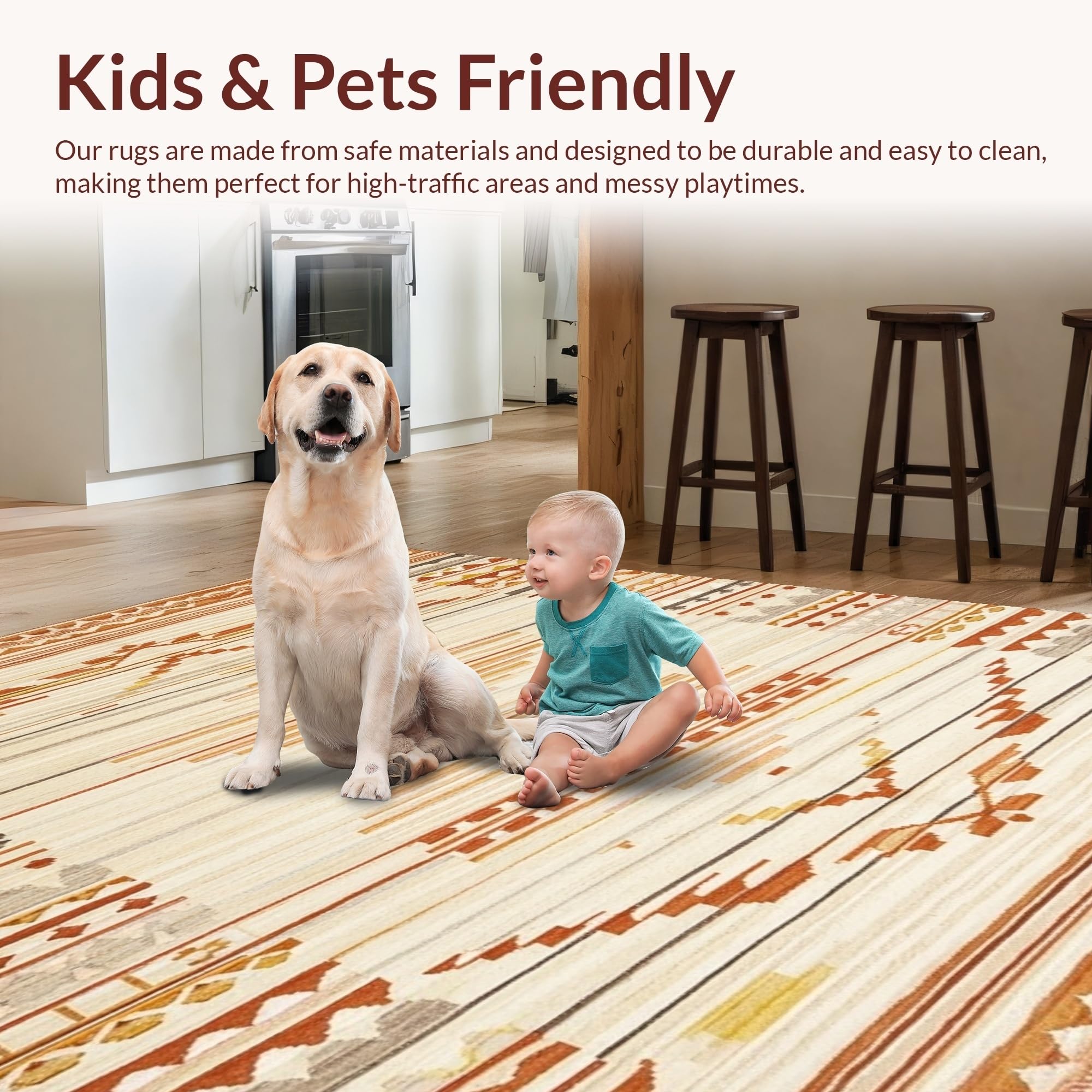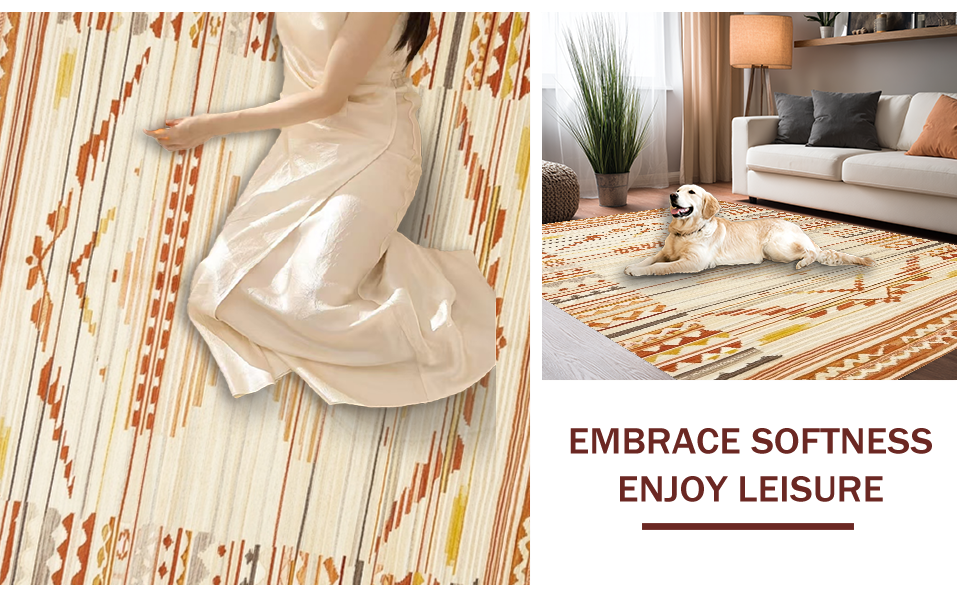 Ultra Soft Area Rug, Non Slip, Stain Resistant, Washable Area Rugs for Living Room, Bedroom, Artistic Natural Fiber Design(Beige) Overview:
