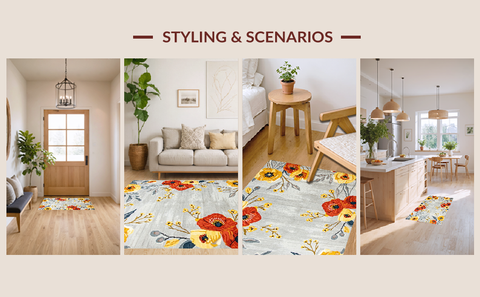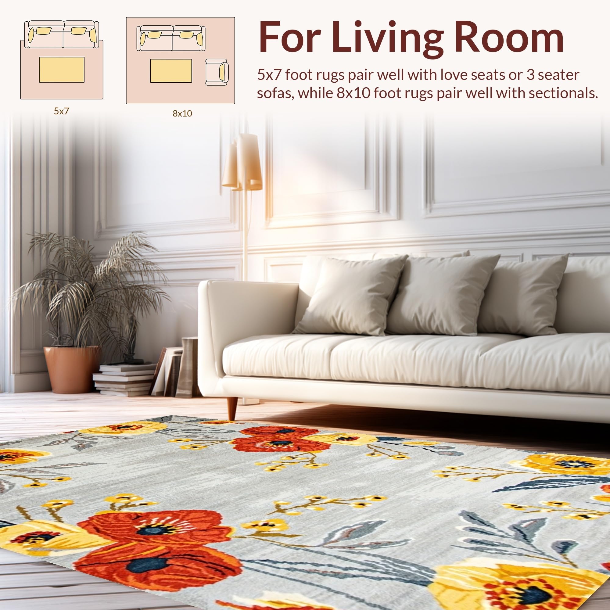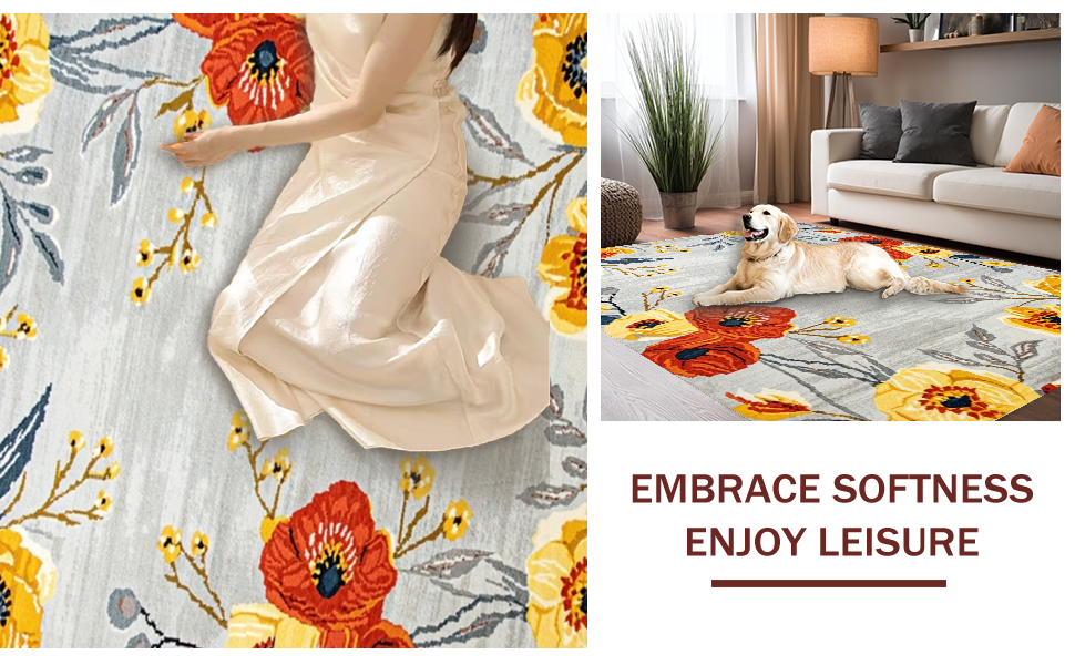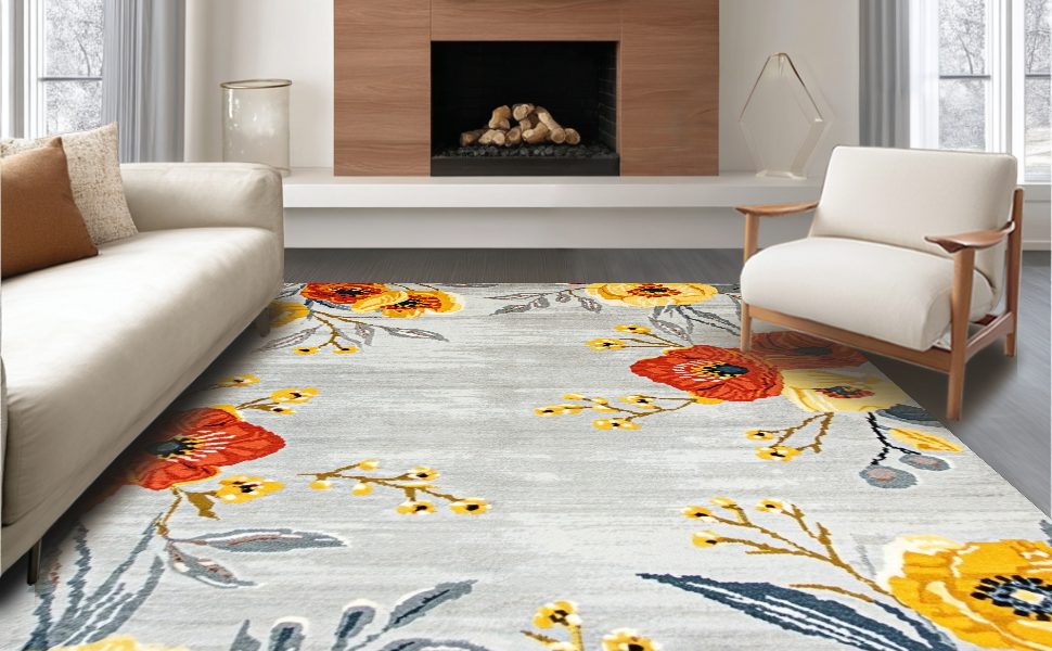 Ultra Soft Area Rug, Non Slip, Stain Resistant, Washable Area Rugs for Living Room, Bedroom, Artistic Nature Inspired Design(Gray) Overview: