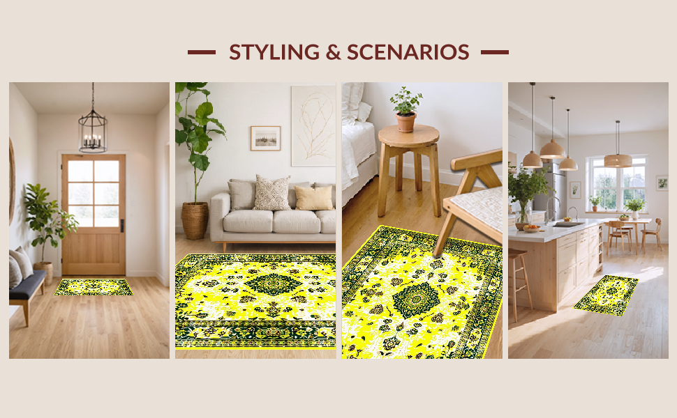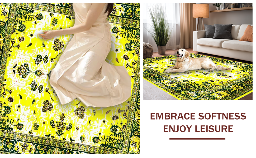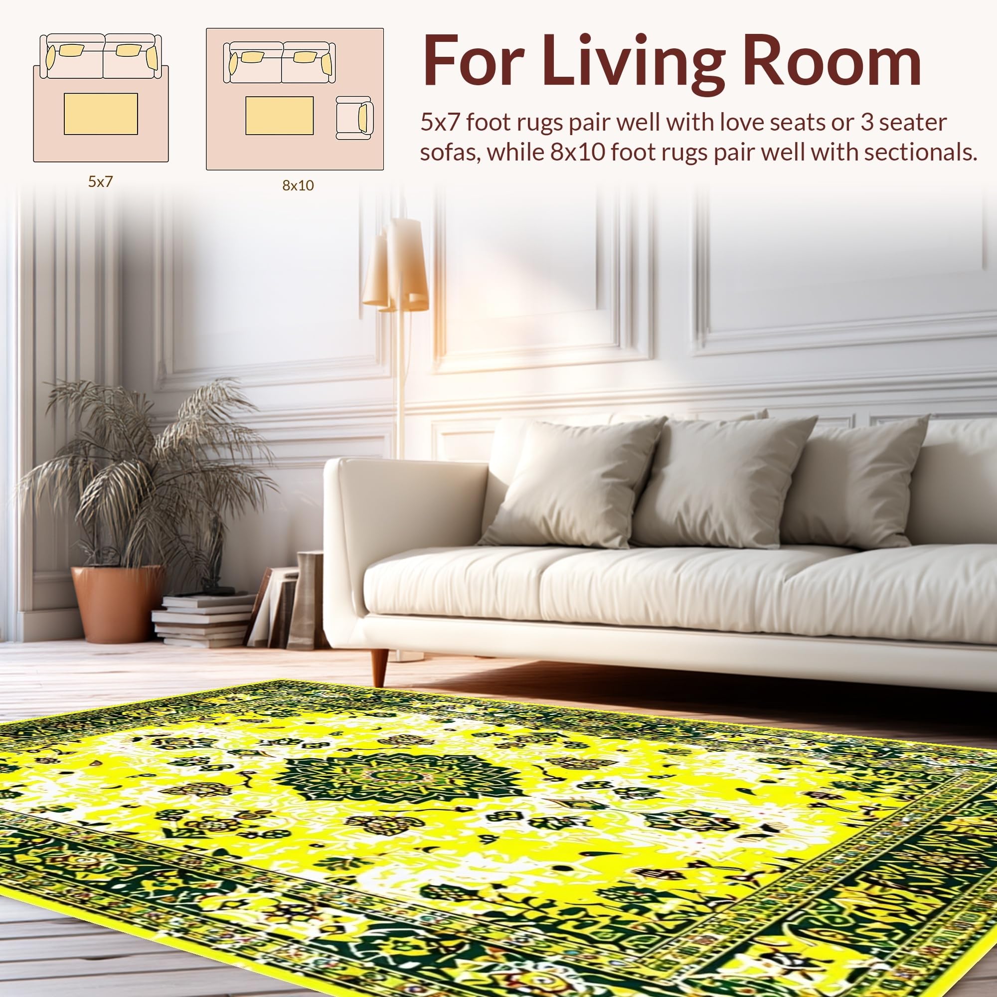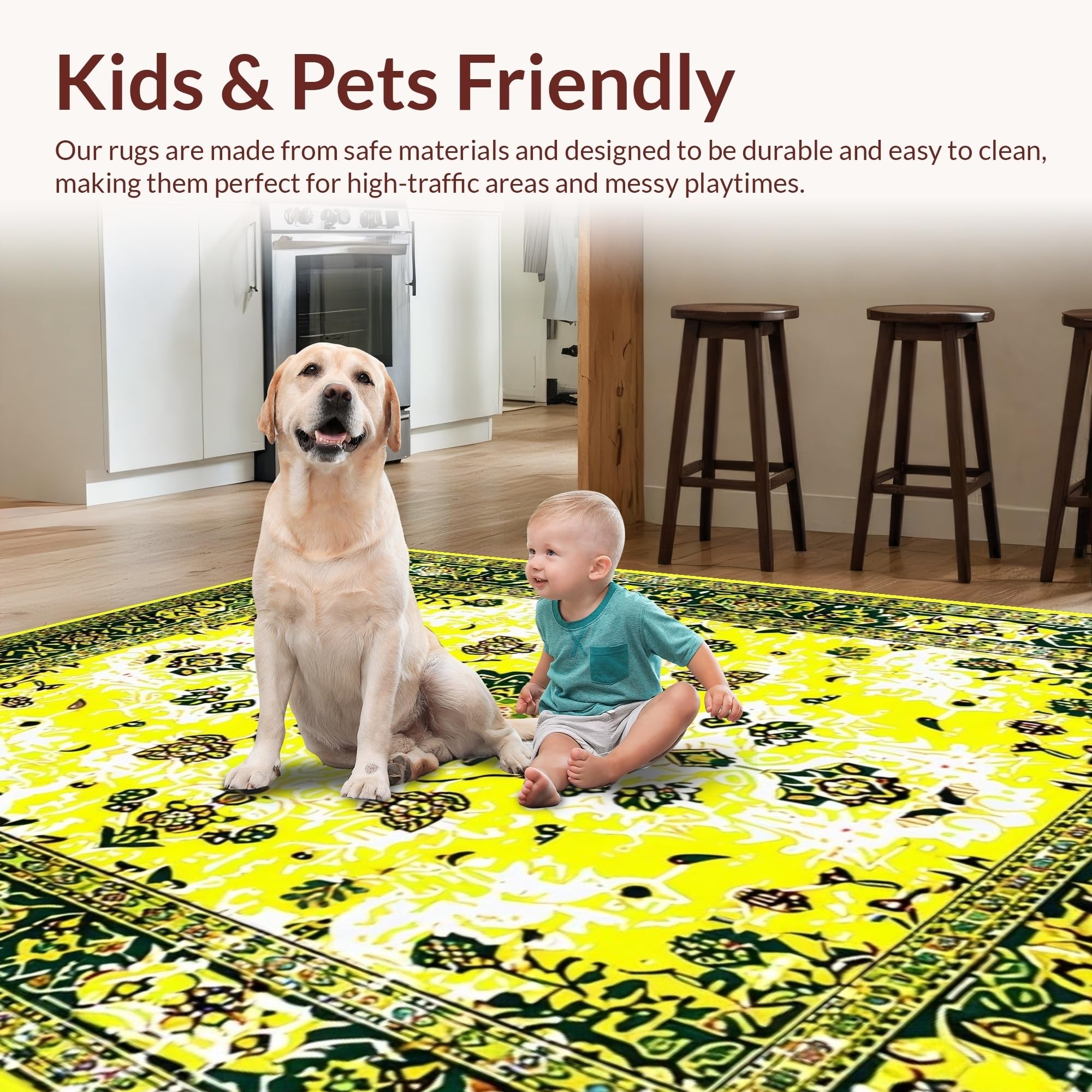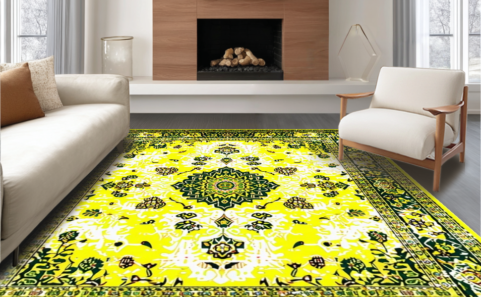 Ultra Soft Area Rug, Non Slip, Stain Resistant, Washable Area Rugs for Living Room, Bedroom, Artistic Nature-Inspired Tapestry(Yellow) Overview: