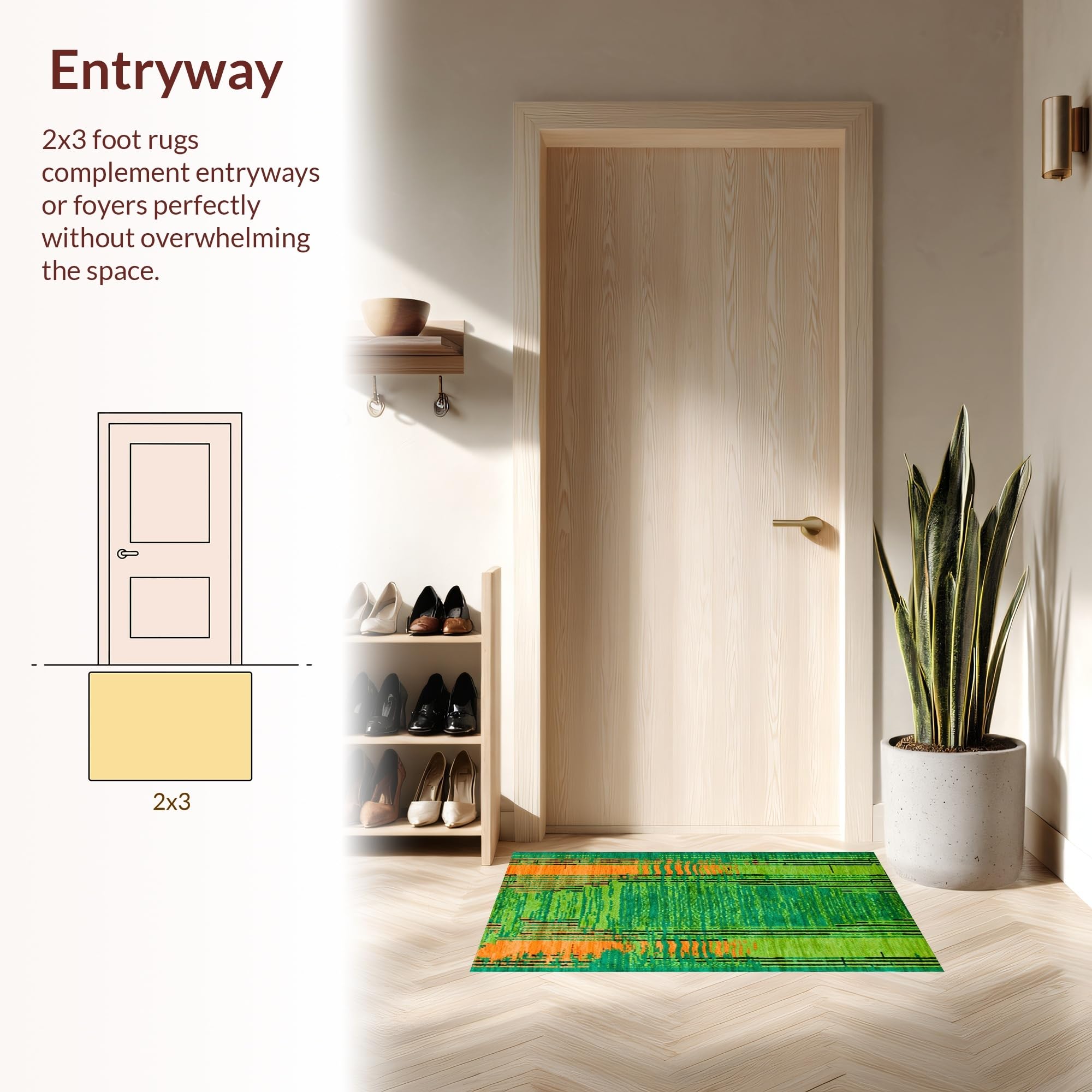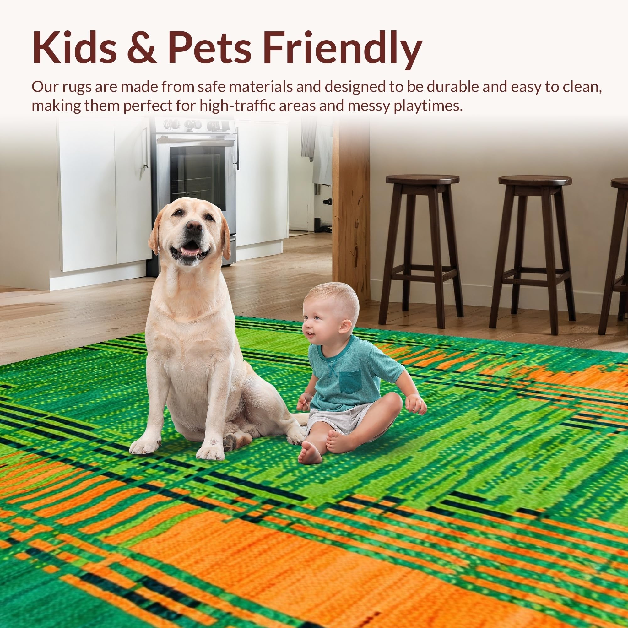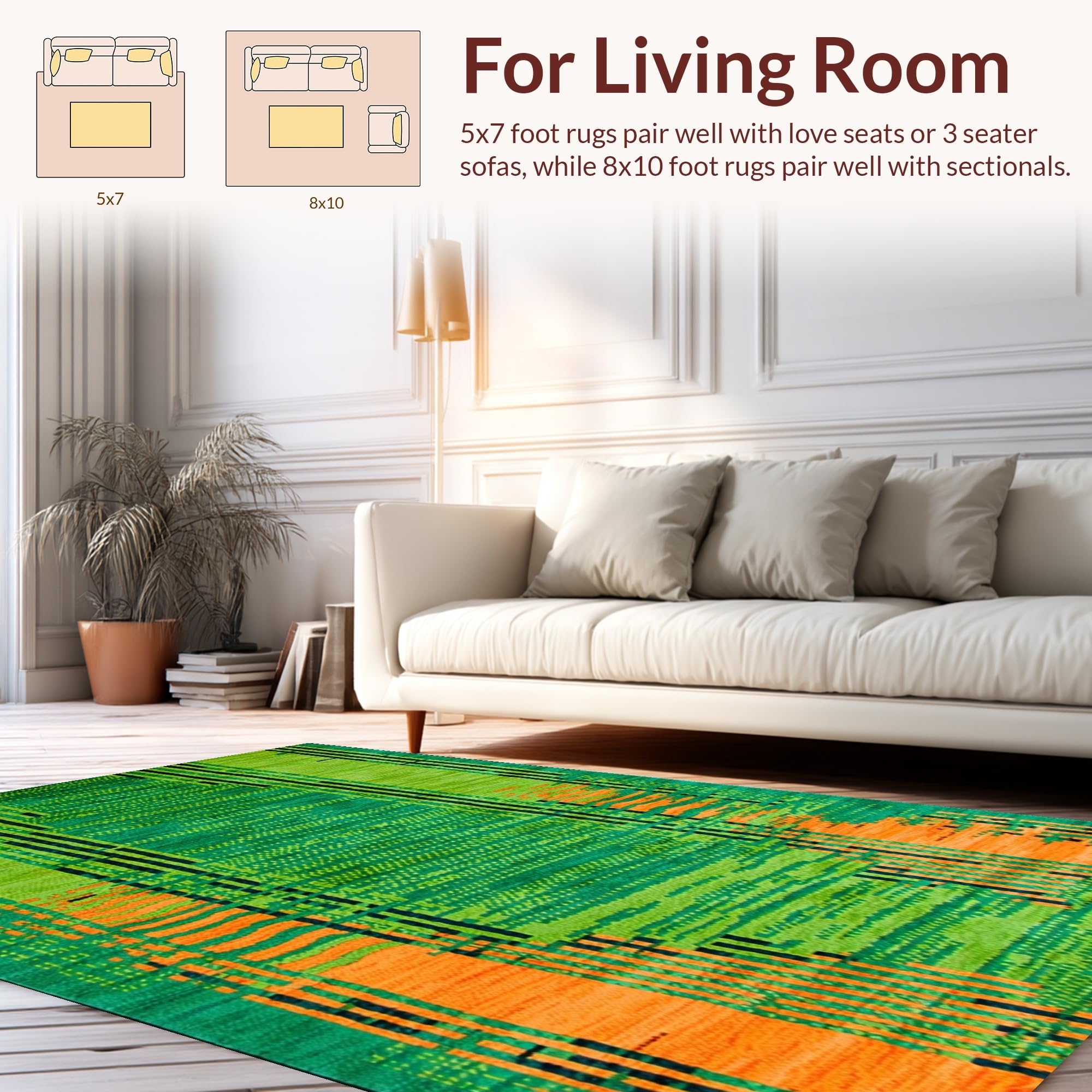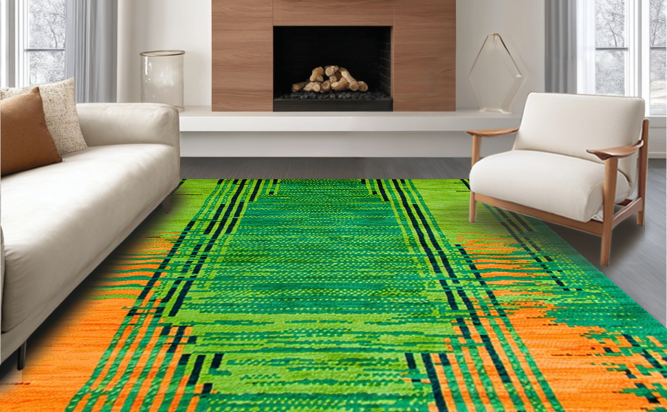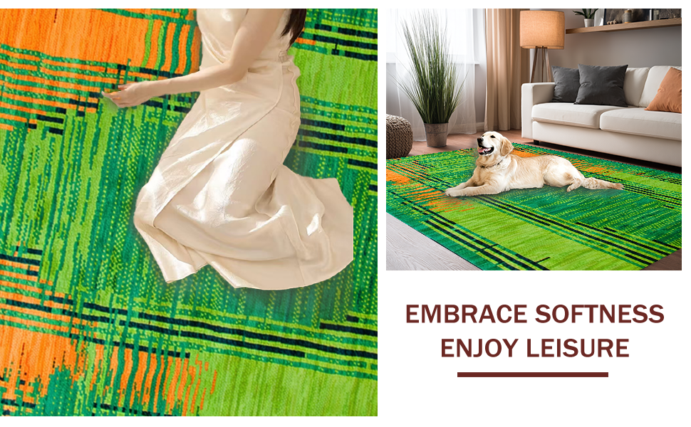Ultra Soft Area Rug, Non Slip, Stain Resistant, Washable Area Rugs for Living Room, Bedroom, Artistic Nature-Inspired Textures(Green) Overview: